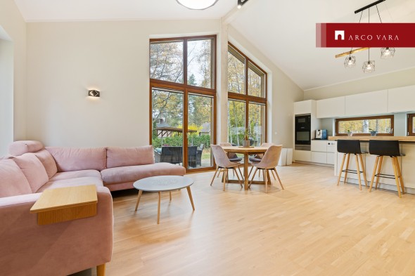 Neljatoalise avara paarismaja osa siseviimistlus on kvaliteetne ja helgetes toonides. Avatud köögiga elutoas ja magamistubades on parkett. Magamistoas on suur voodi ning pastelsetes toonides riidekapp. Suured aknad elu- ja magamistoas täidavad toa rohke päevavalgusega ja teevad kodu isikupäraseks. Unikaalsust lisab veel avatud köögi lae kõrgus, milleks on 4.3 meetrit. Avatud köögiga elutoas on olemas kvaliteetne köögimööbel Häckerilt, liikuv köögisaar ja kolm pehmet pukktooli, söögilaud ning neli tooli selle ümber. Köögitehnika hulka kuulub: nõudepesumasin, integreeritud külmkapp koos sügavkülmikuga, integreeritud mikrolaineahi, keraamiline Bora Professional pliit ning ahi. Lisavarustusena on nõudesoojendaja, vaakumpakendaja ja valamus toidujäätmete purustaja. Elutoast on võimalus pääseda terrassile hommikukohvi nautima. Elutoa seinal asuv televiisor on seinale paigaldatud nutika kinnitusega Vogels MotionMount.