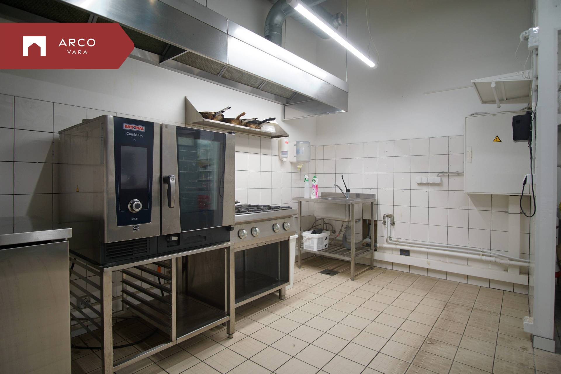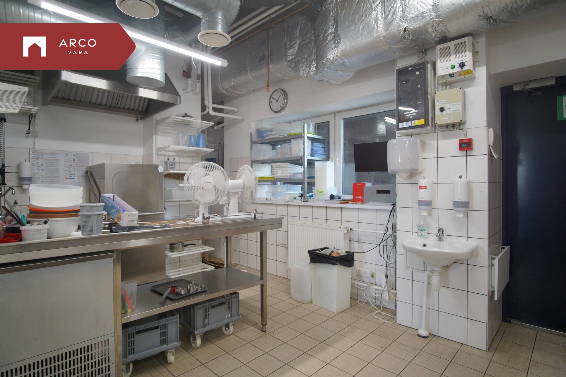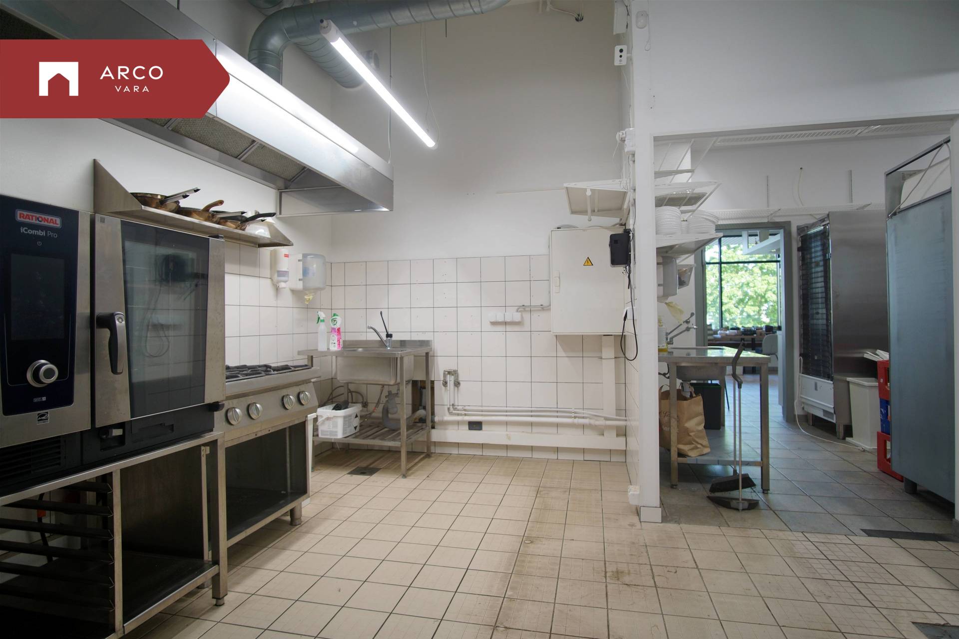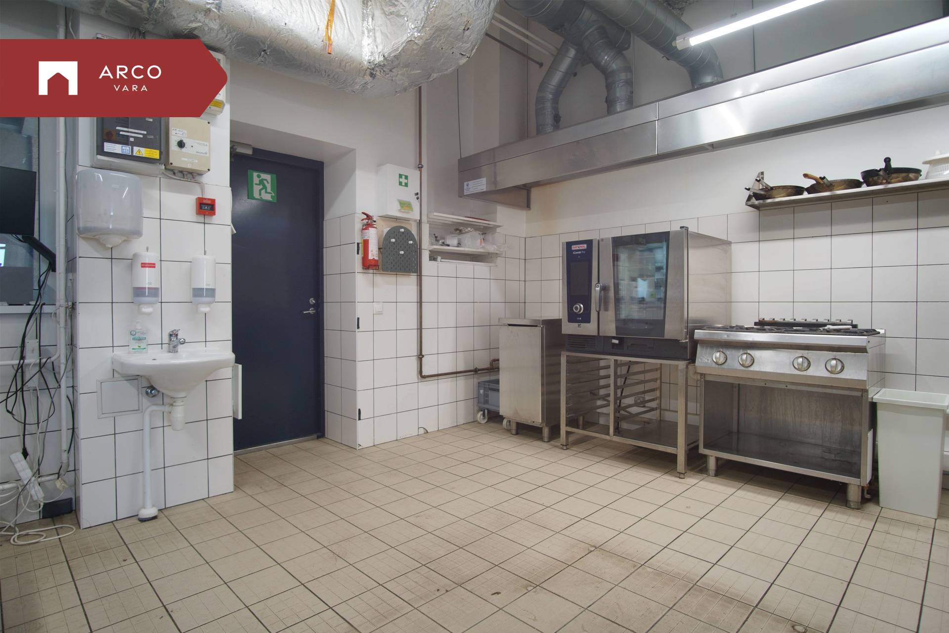 The premise is located on the first floor of a commercial building and has been built according to the requirements of a catering space:
