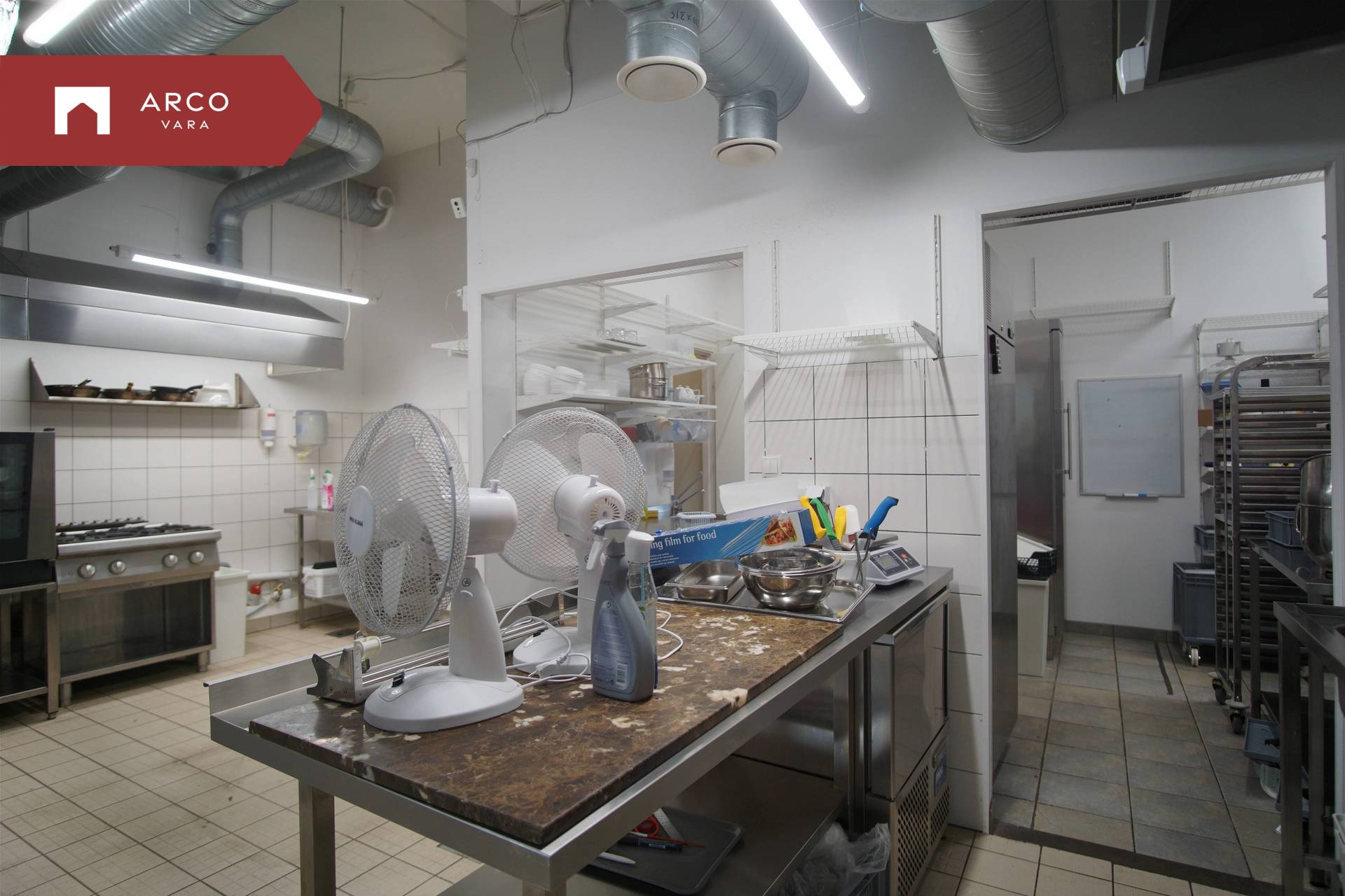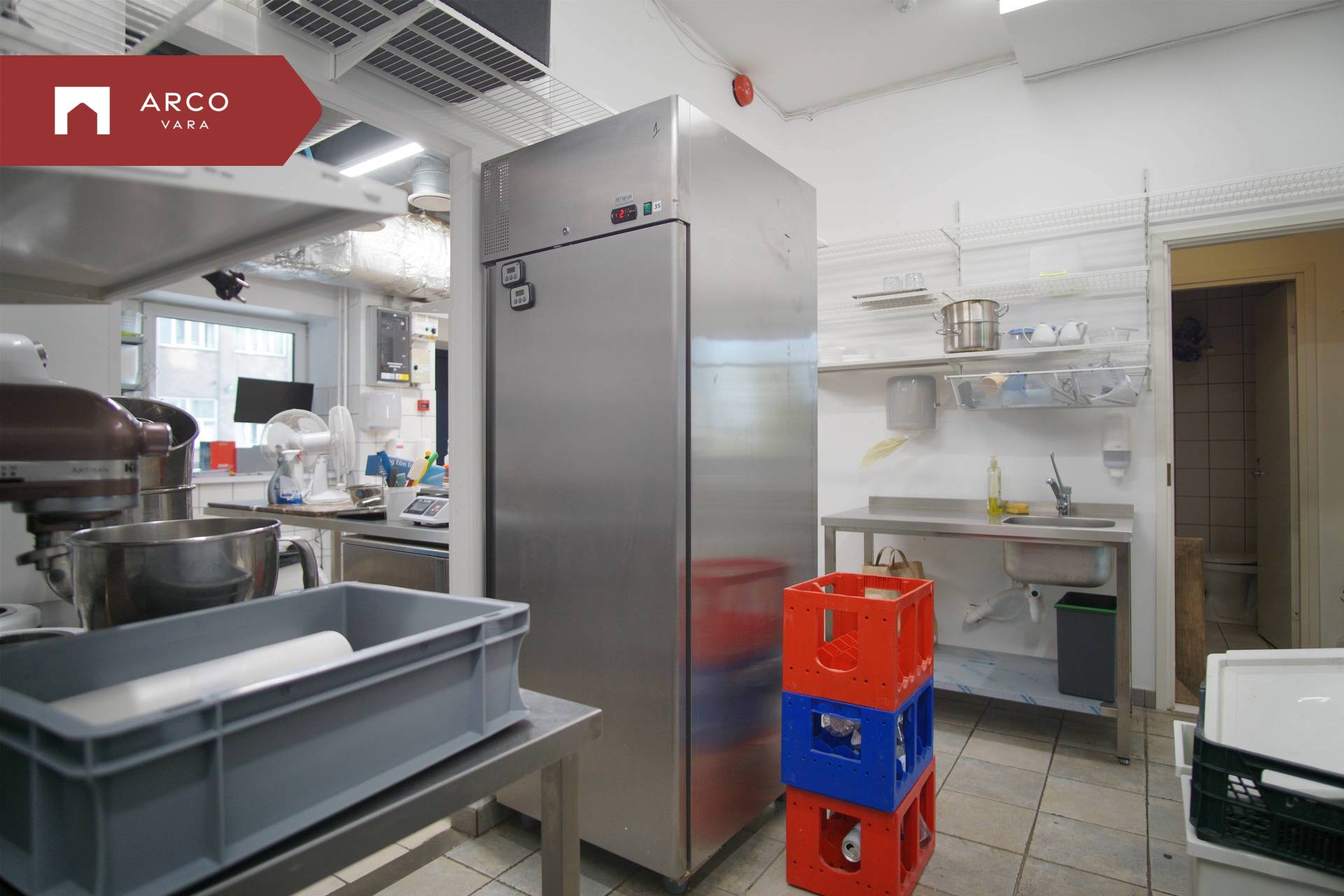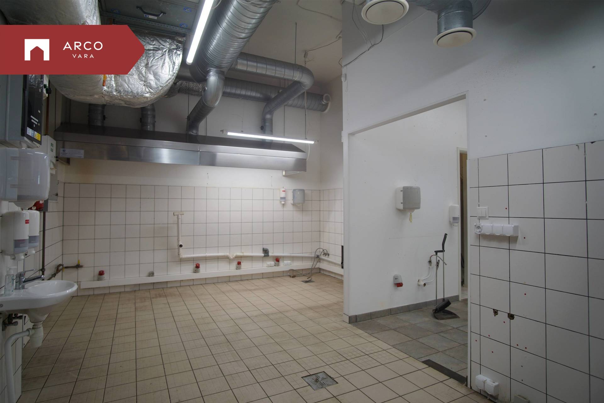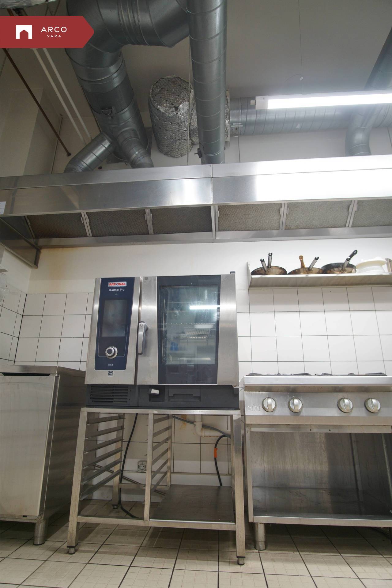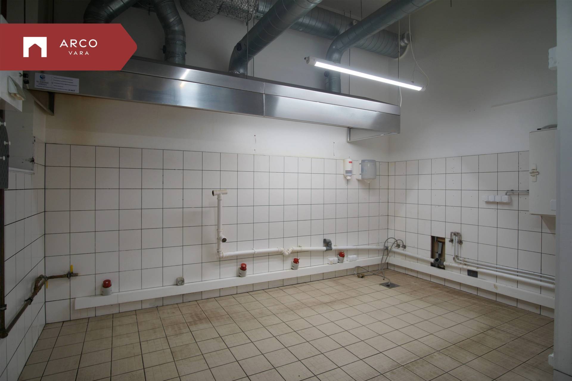 The premise is located on the first floor of a commercial building and has been built according to the requirements of a catering space: