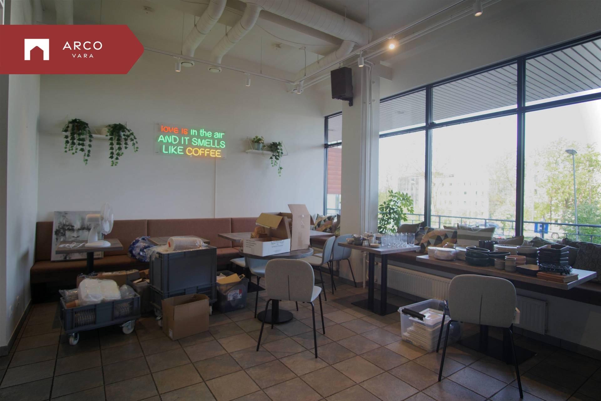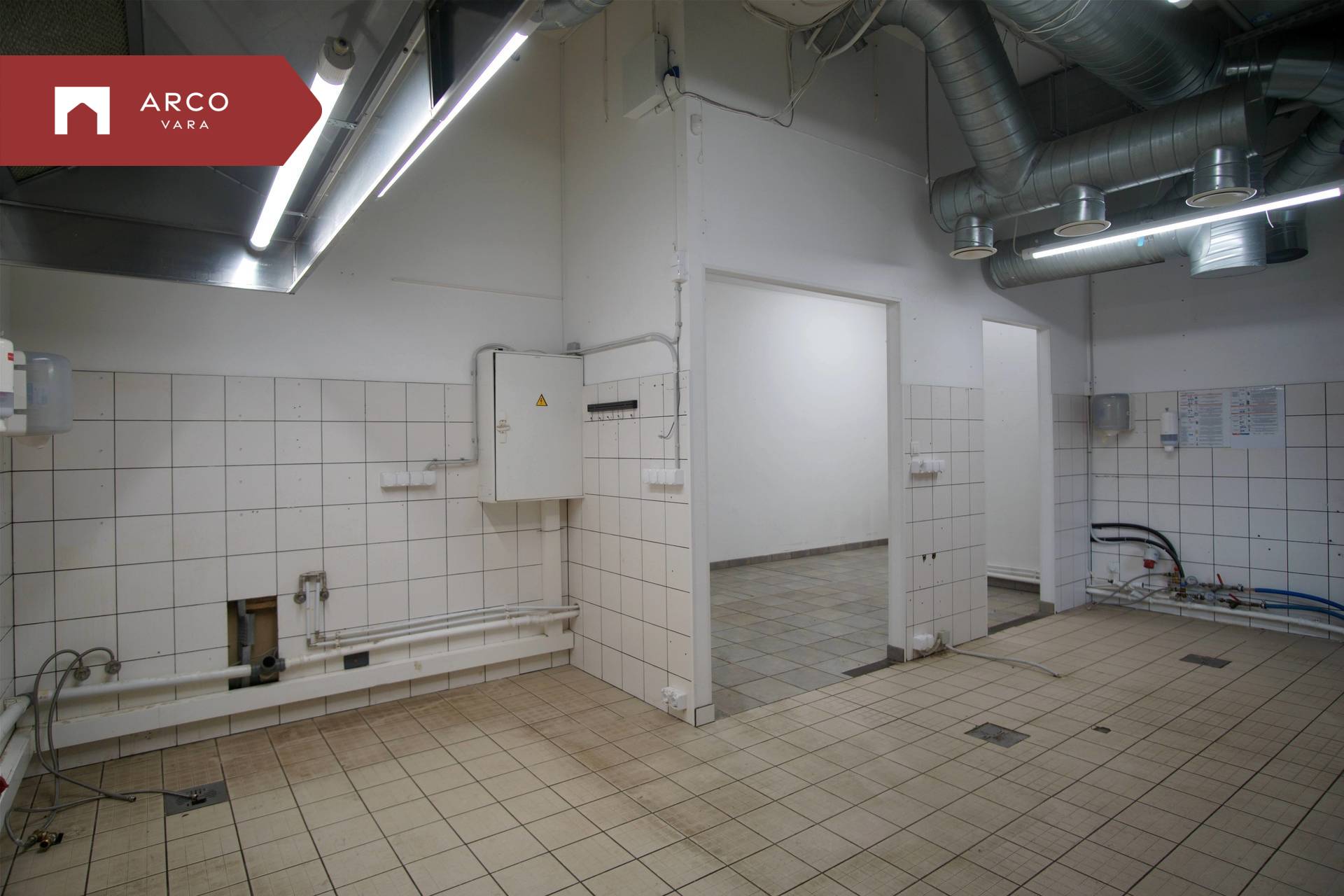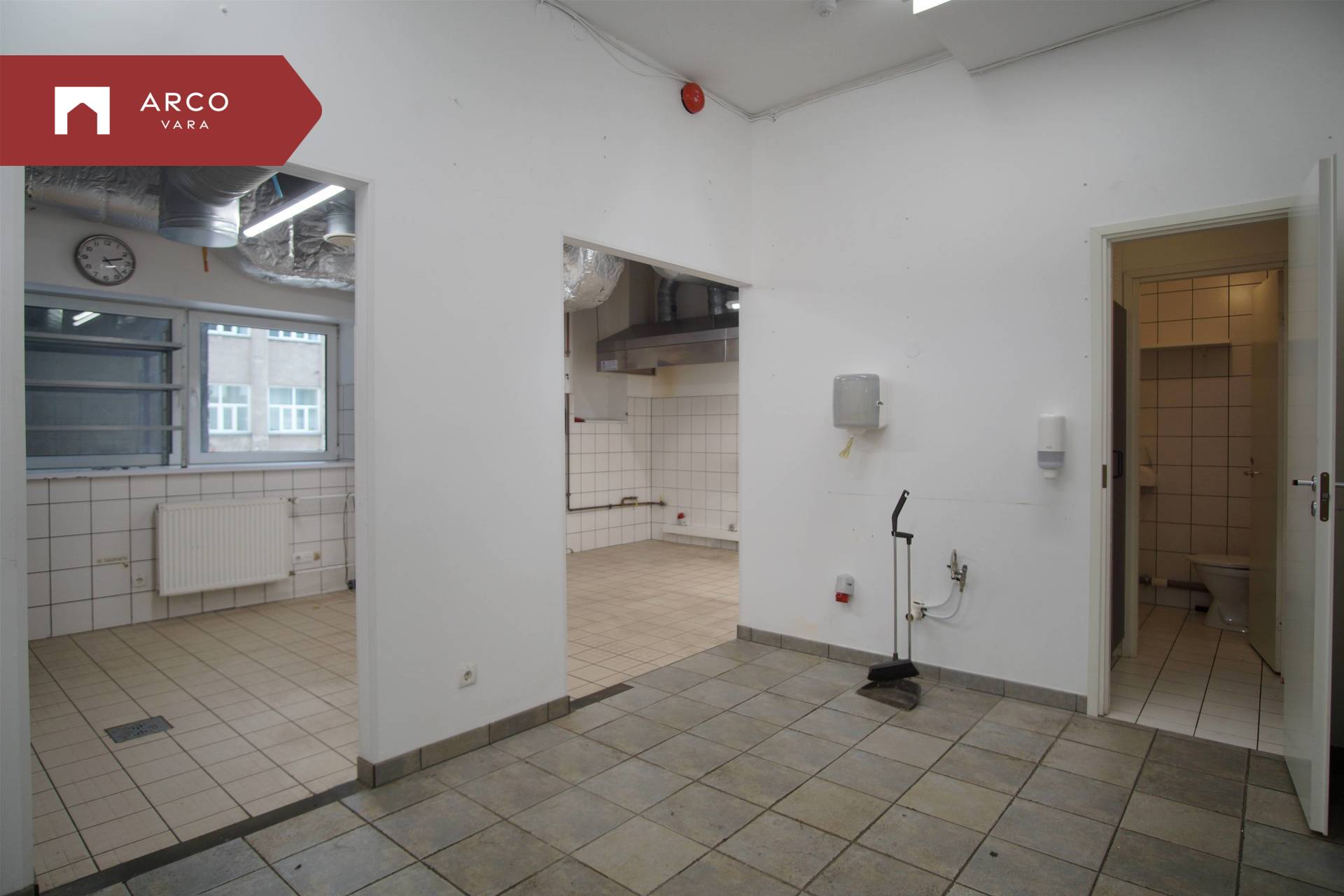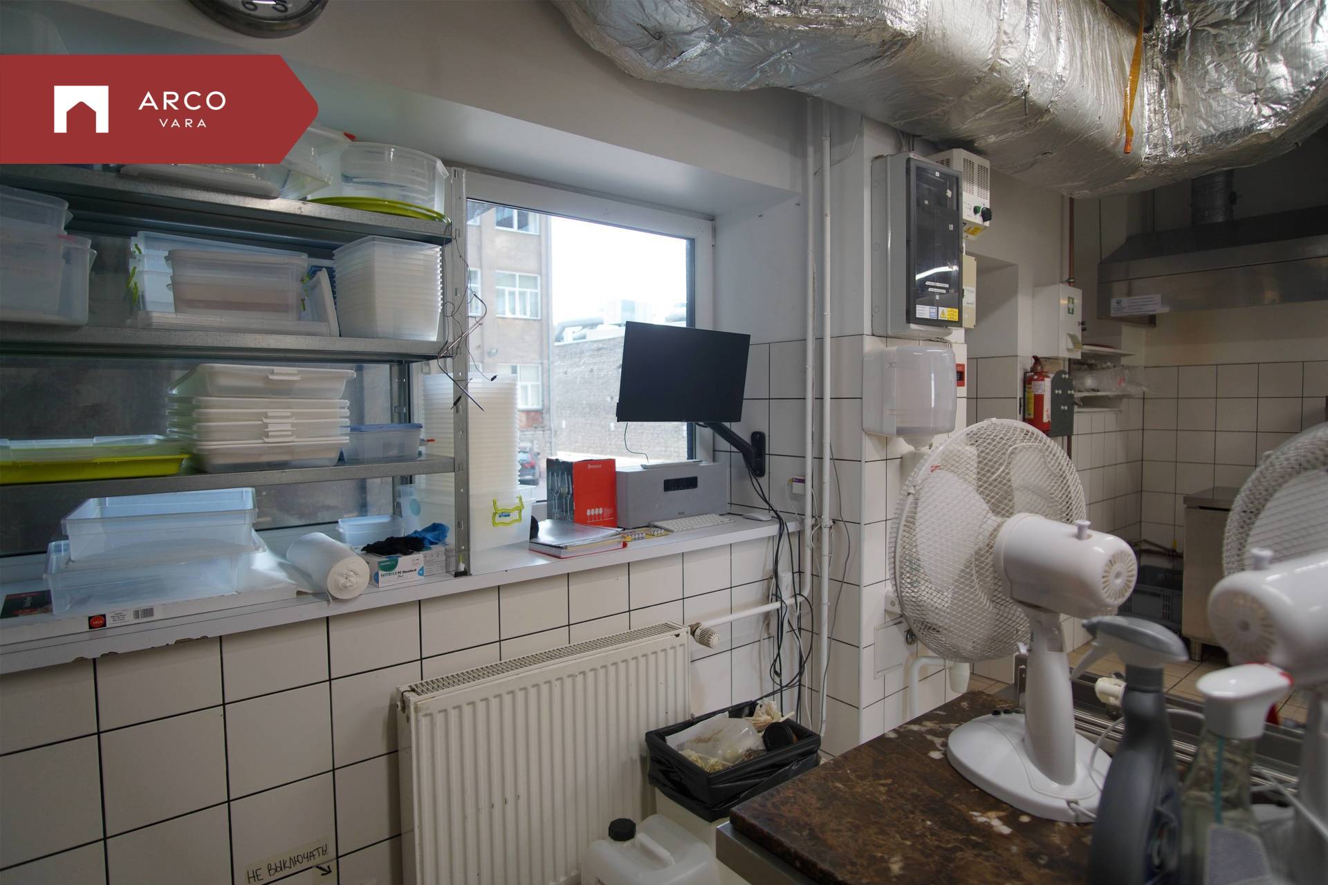 The premise is located on the first floor of a commercial building and has been built according to the requirements of a catering space: