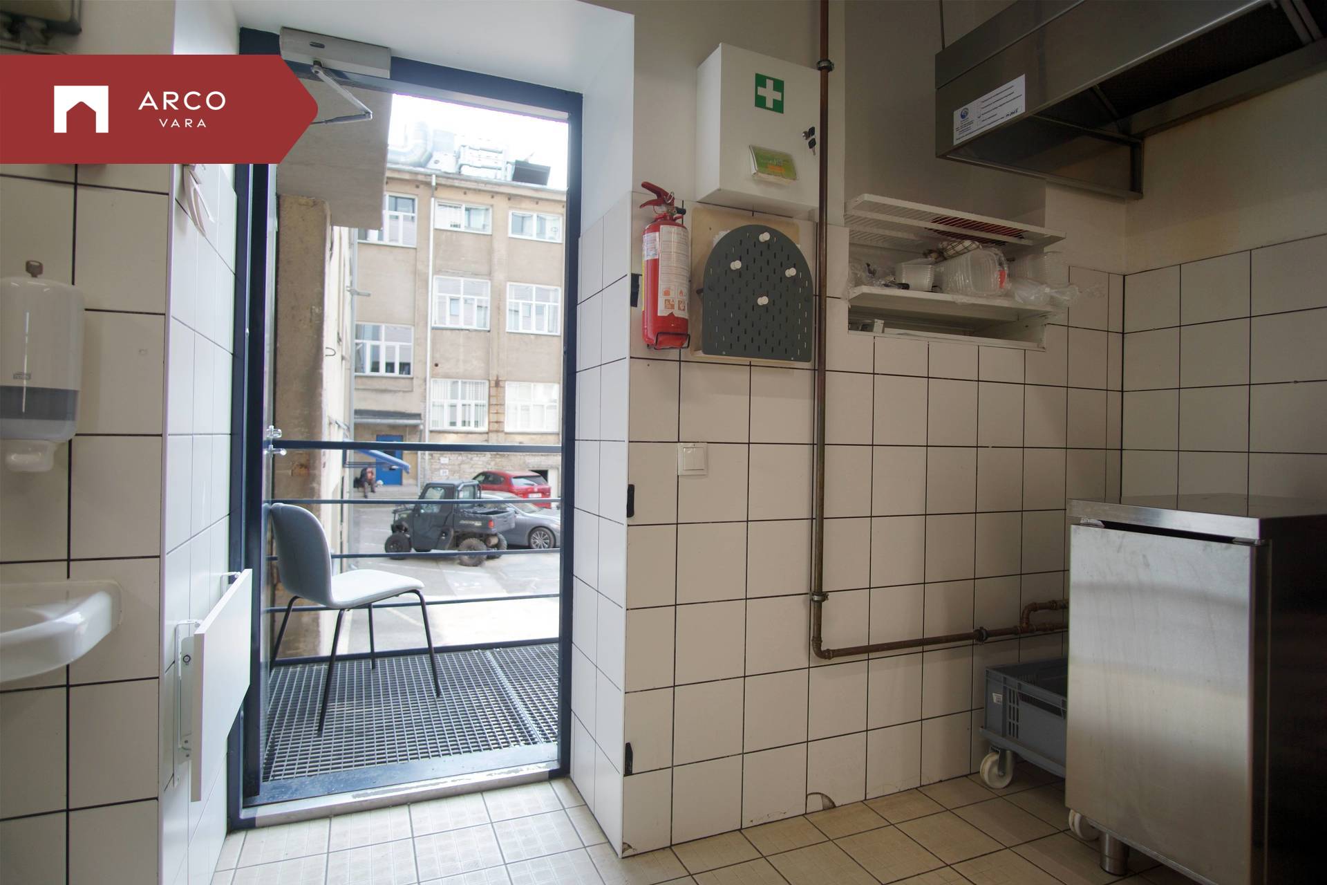 The premise comes with the possibility of parking and unloading raw materials in the yard of the building behind the barrier.