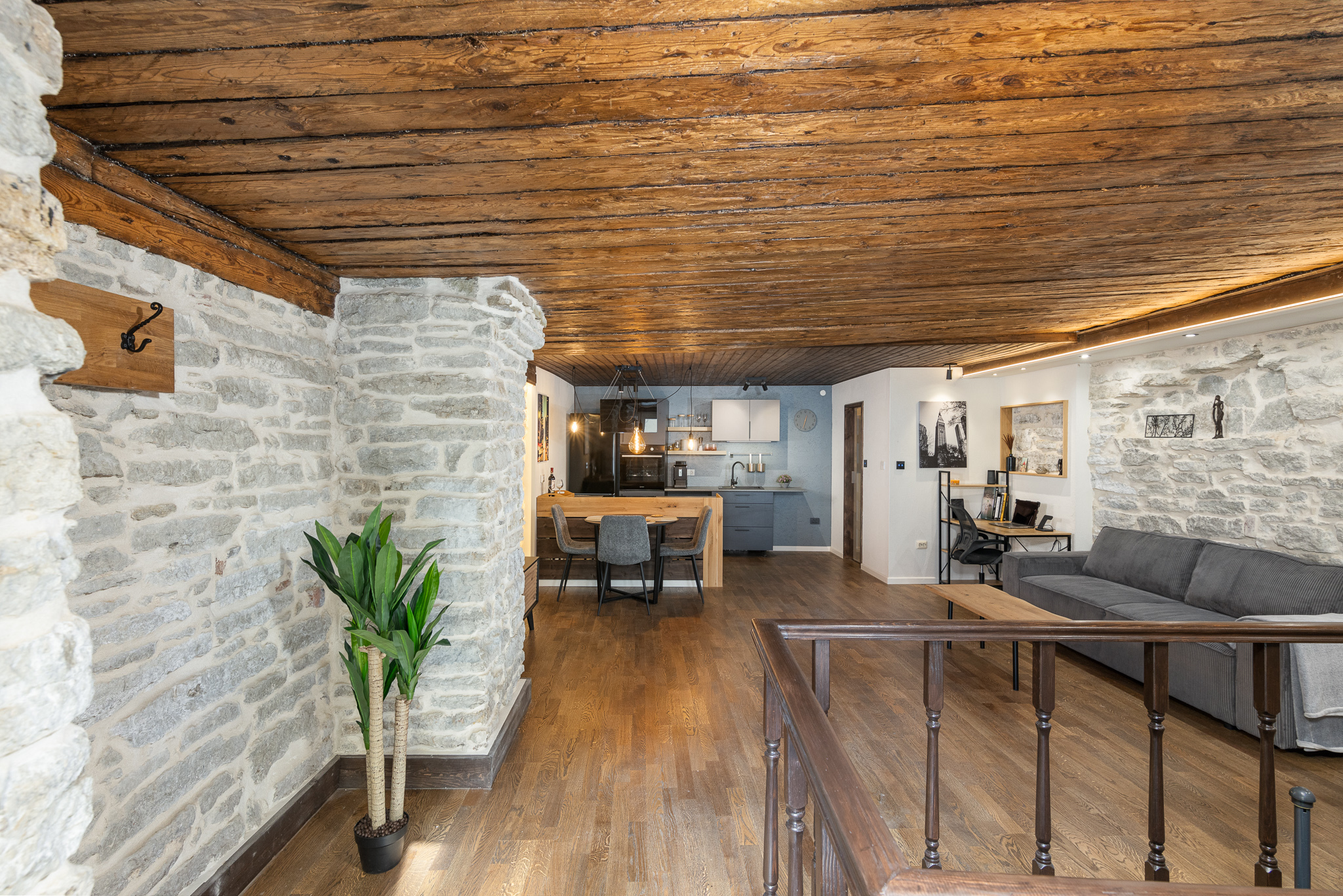 Aknaruutudega esiuks ning mitmekülgne sisevalgustus tagavad isegi maaalusele ruumile hea valgustatuse ja ajalooline kivisein koos vaikse sisehooviga müravaba ning hubase elukeskkonna.