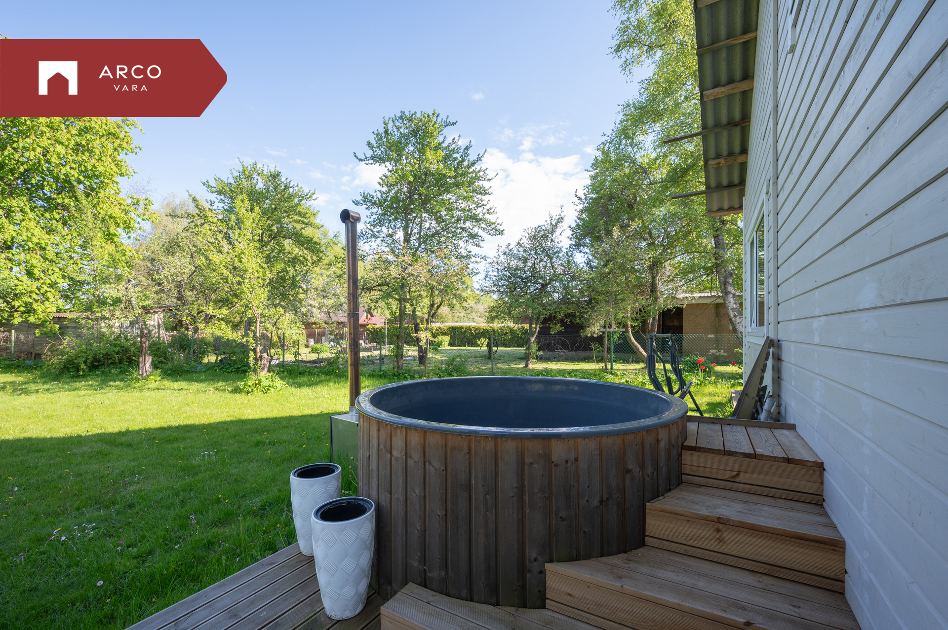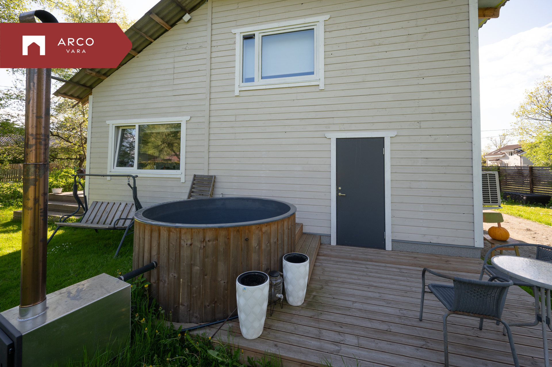 - terrass (~10m2), millel on tünnisaun (puuküttega).