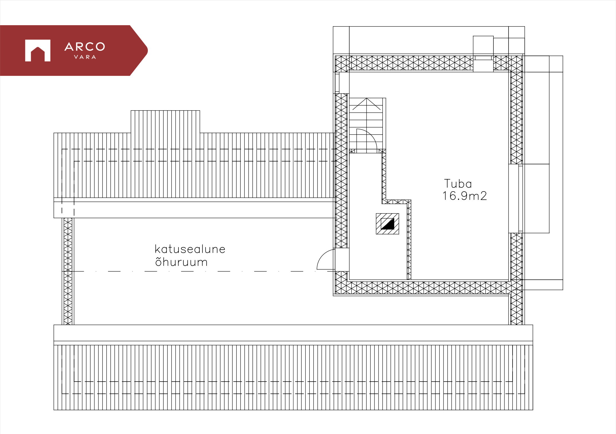 Pääs katusealusesse on läänefassaadil olevast luugist.