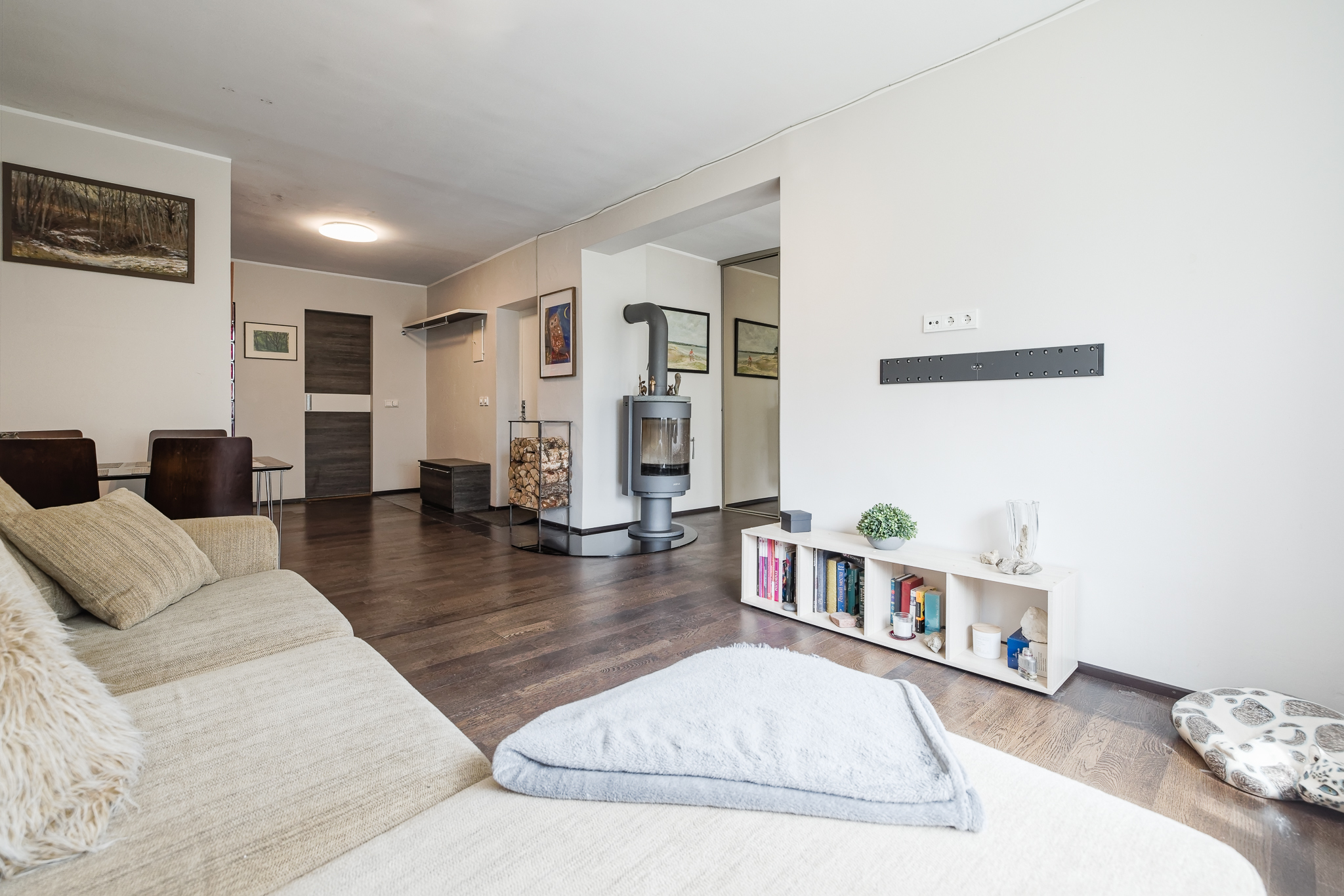 Korteris on töökorras kamin, mis pakub mõnusat soojust ja hubasust jahedatel õhtutel.