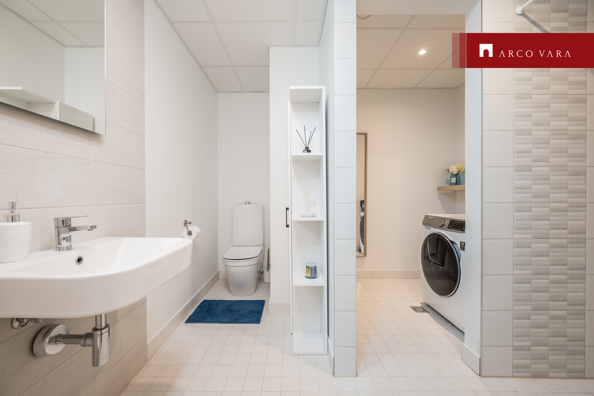 - shower room (4.7 m2) with a utility corner (2.5 m2), where there is room for both the washing machine and dryer tower as well as for all other household items;