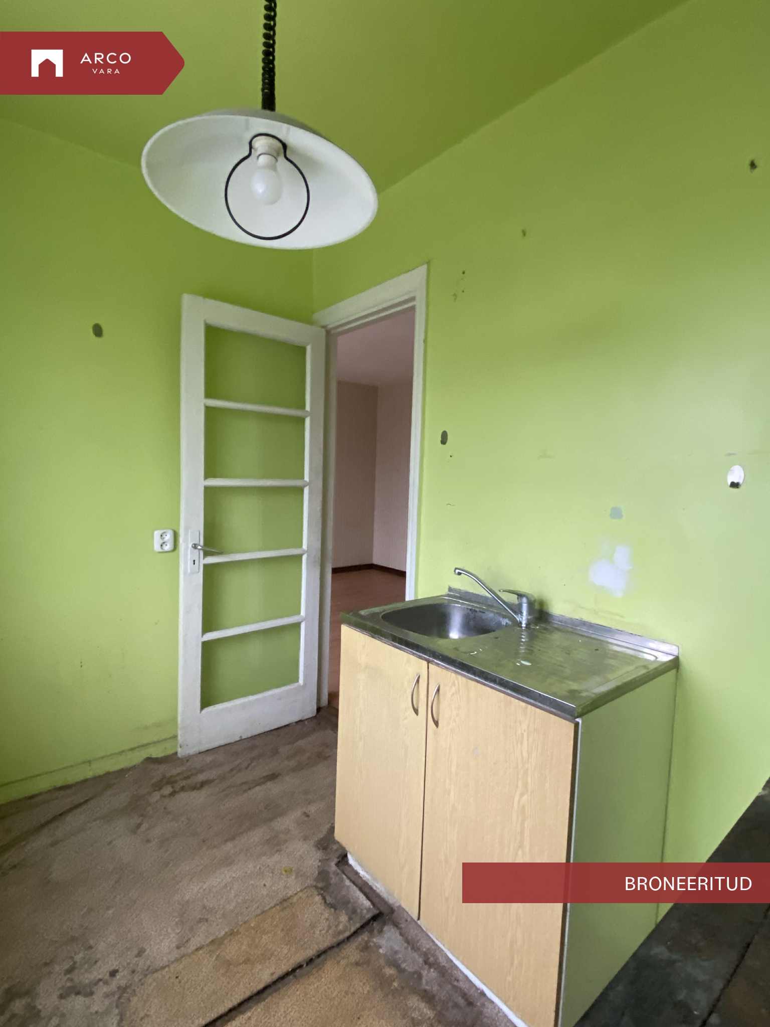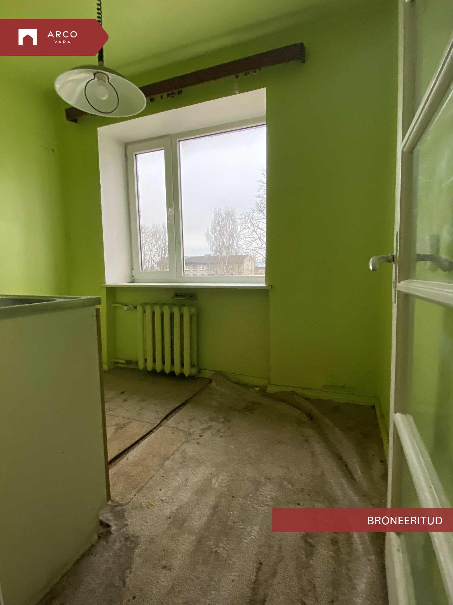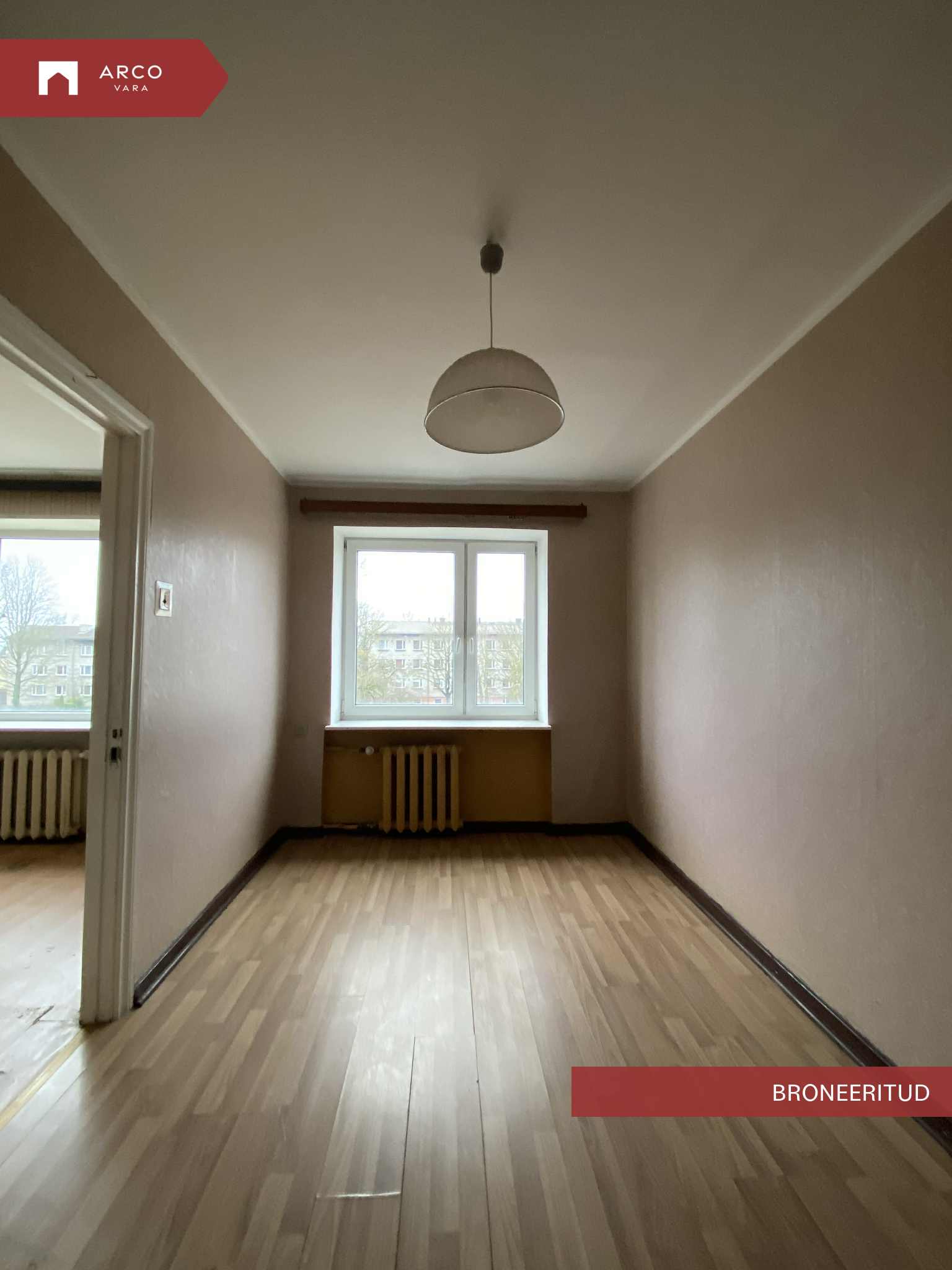 60 ndatel ehitatud hrustšovka tüüpi korteris on 2 tuba, väike köök, kus sees veel algupärane puupliit, mille töövalmidus on selgitamata ja seetõttu soovituslikult lammutada. Esik, WC ja dushiruum koos. Omaniku kasutada on ka keldriboks.