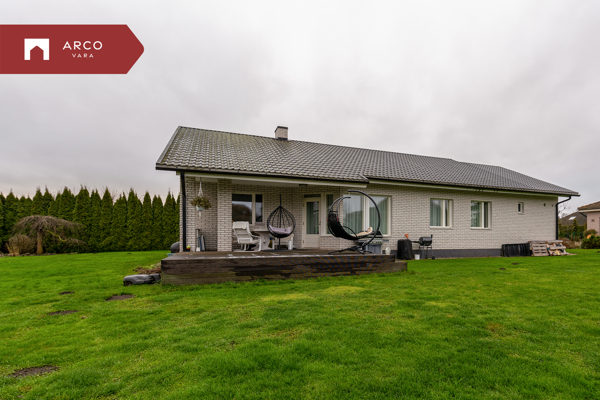 Ühekorruseline elamu on praktilise ja funktsionaalse planeeringuga. Kodu südameks on avatud köögiga elutuba, kust pääseb otse terrassile ja hooldatud aeda.