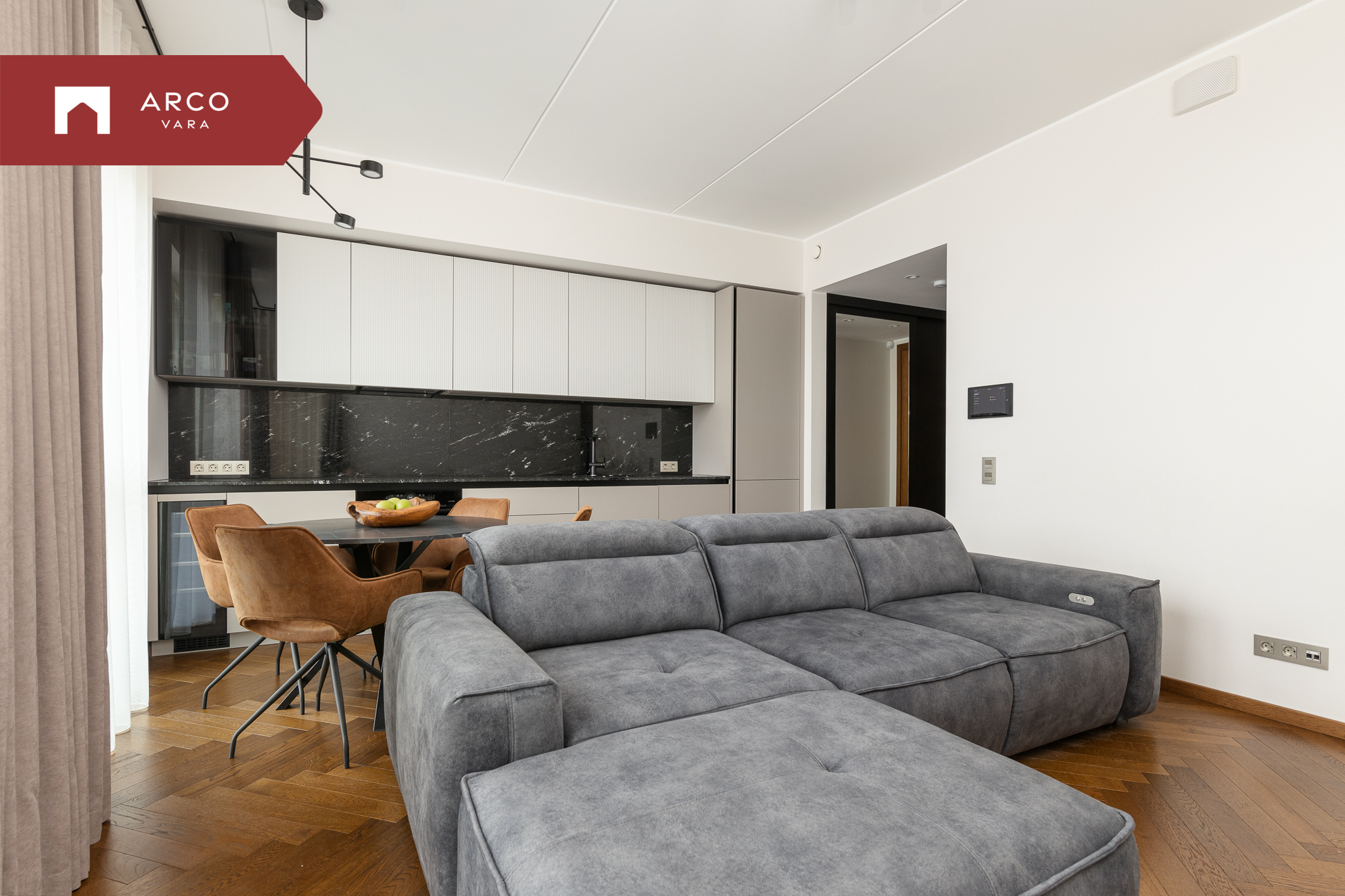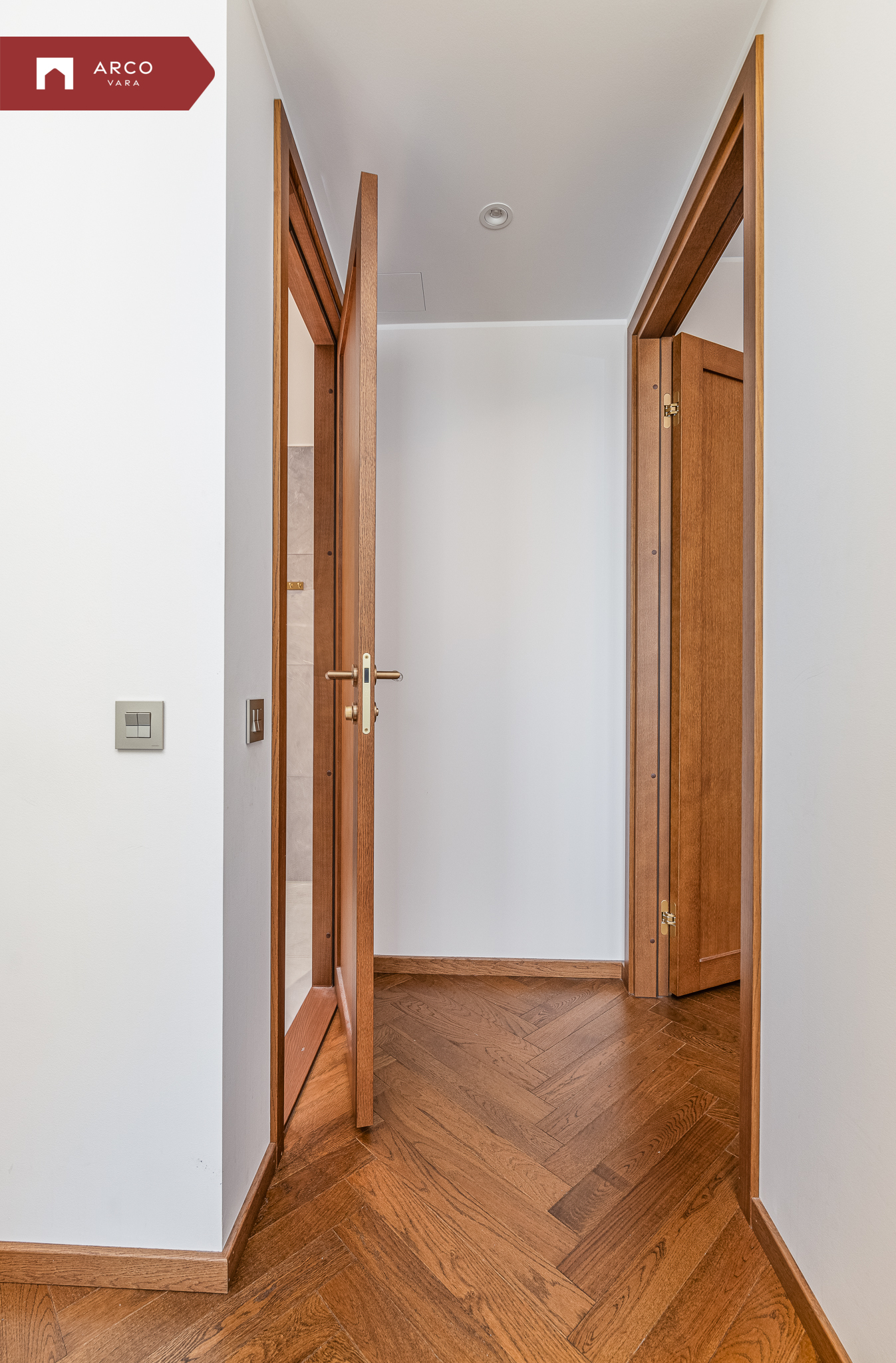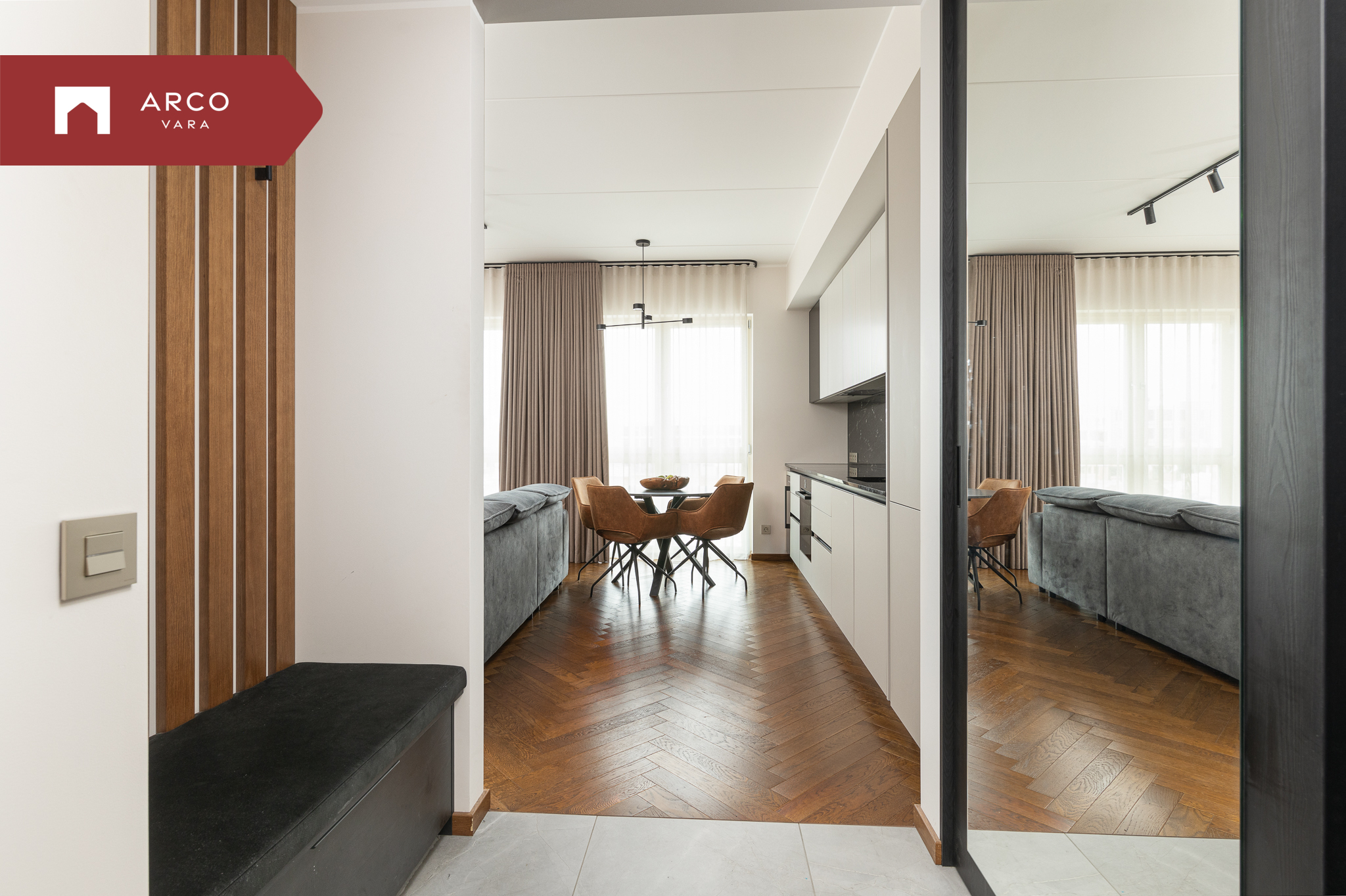 Korteris on kasutatud eksklusiivset siseviimistluspaketti “Kalasaba”, mis ühendab luksuse ja ajatu disaini. See viimistlus sobib suurepäraselt nii klassikalisse kui ka modernsesse interjööri, tuues igasse ruumi elegantsi ja soojust. Siseuksed on naturaalsest tammespoonist, Cognac-tooni profiilsed uksed, mis lisavad ruumile iseloomu ja soojust.