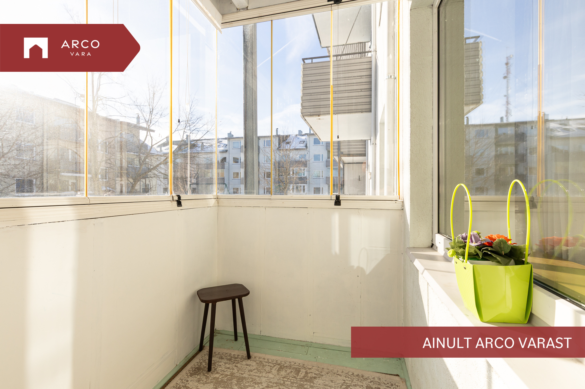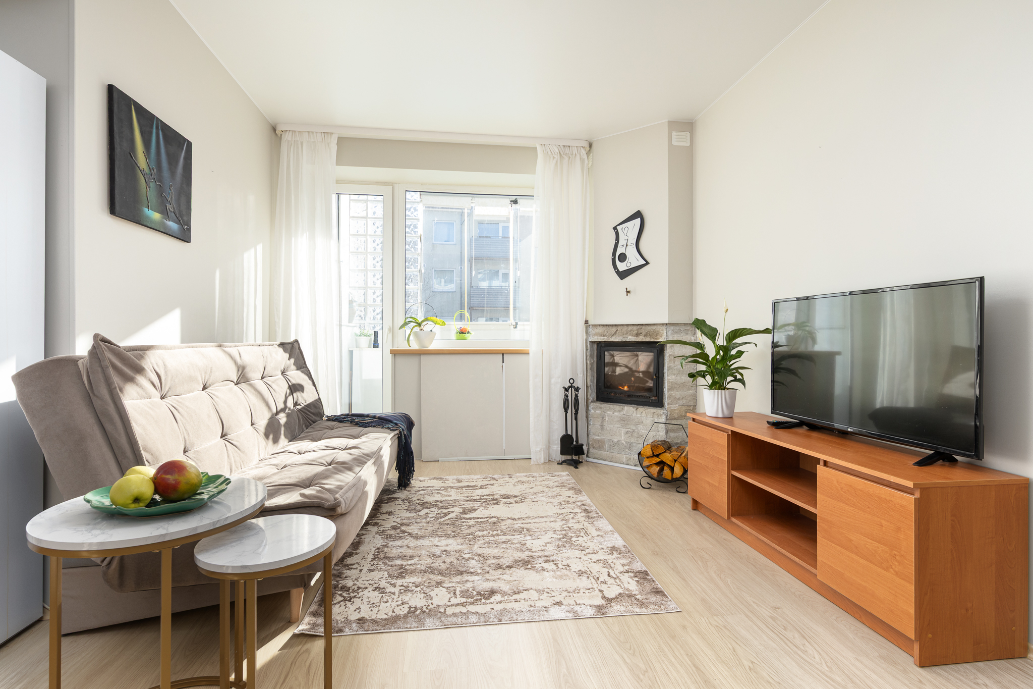 Korteri südameks on avar elutuba avatud köögiga. Elutoast pääseb klaasitud rõdule – ideaalne paik hommikukohviks päikesekiirtes või vaikseks õhtuseks hetkes olemiseks.