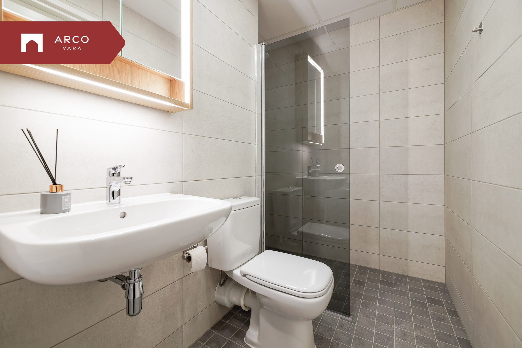 Vannituba on kaasaegne ja funktsionaalne.