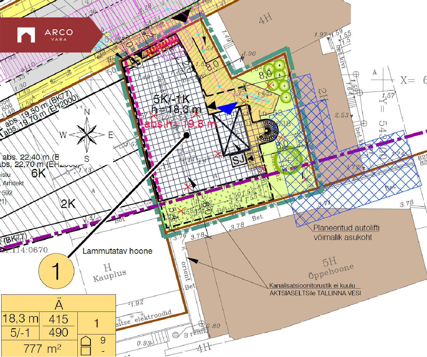 suletud brutopind maapealne 1800m², maa-alune 490m². Kokku 2290m²