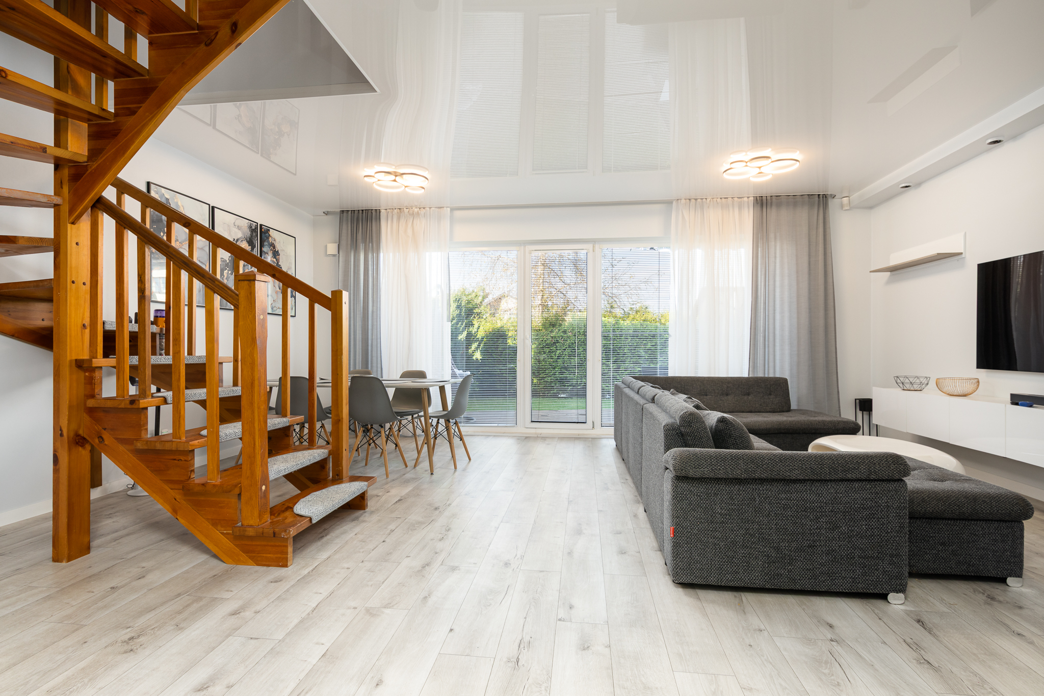 Esimesel korrusel tervitab sind esik garderoobiga, hubane elutuba koos avatud köögiga ning pääs terrassile ja privaatsesse hoovi – ideaalne paik perega aja veetmiseks, hommikukohviks või suveõhtute nautimiseks.