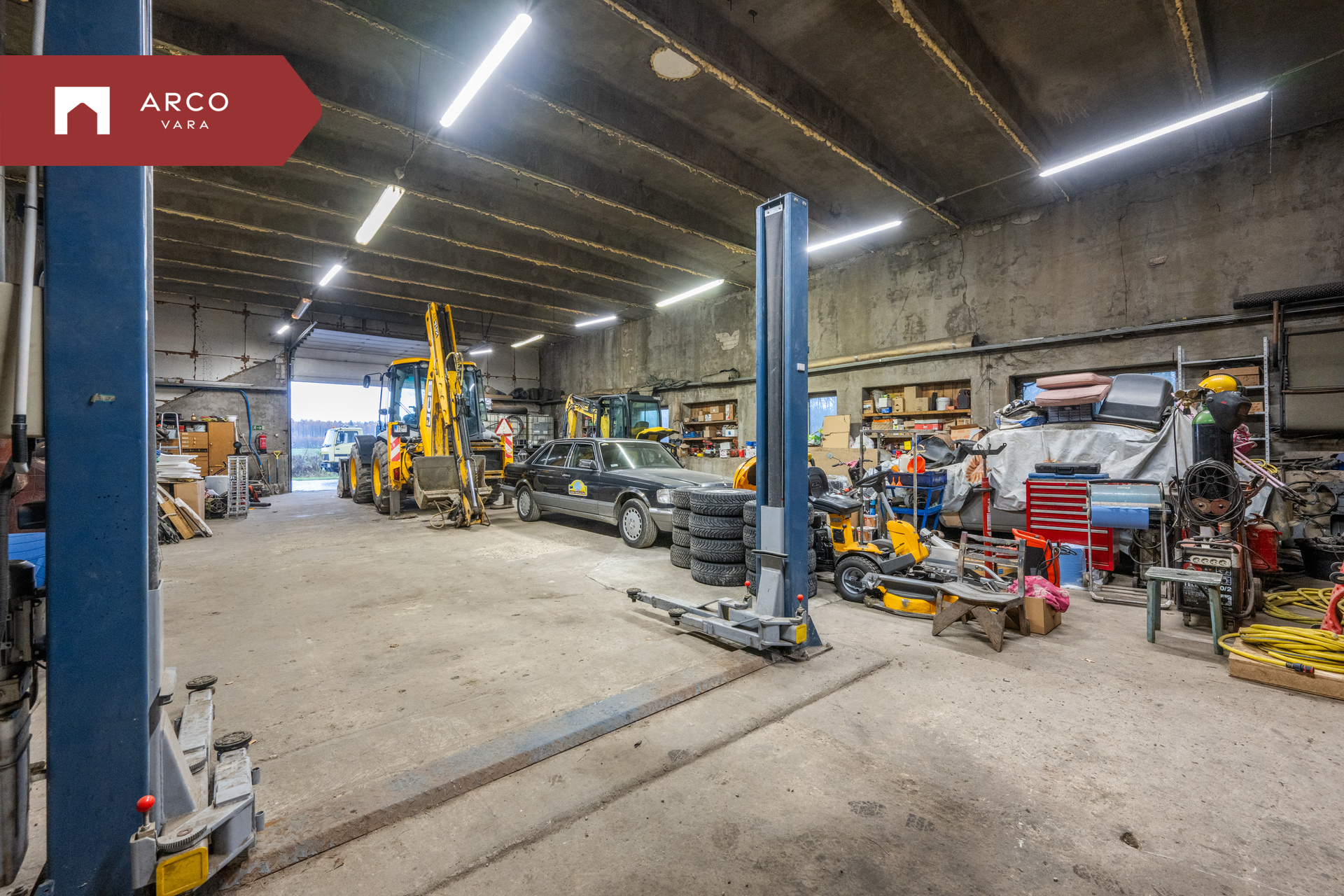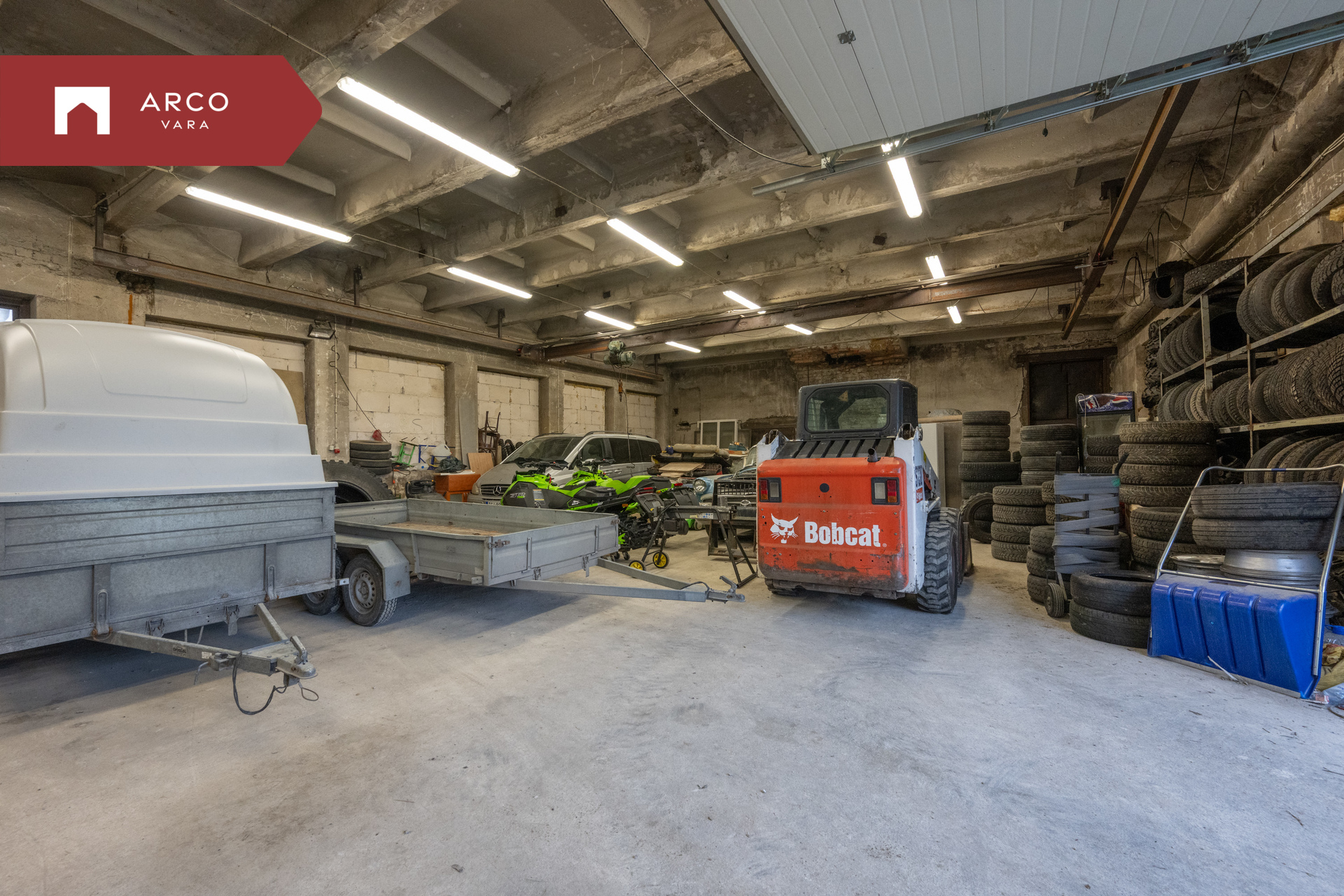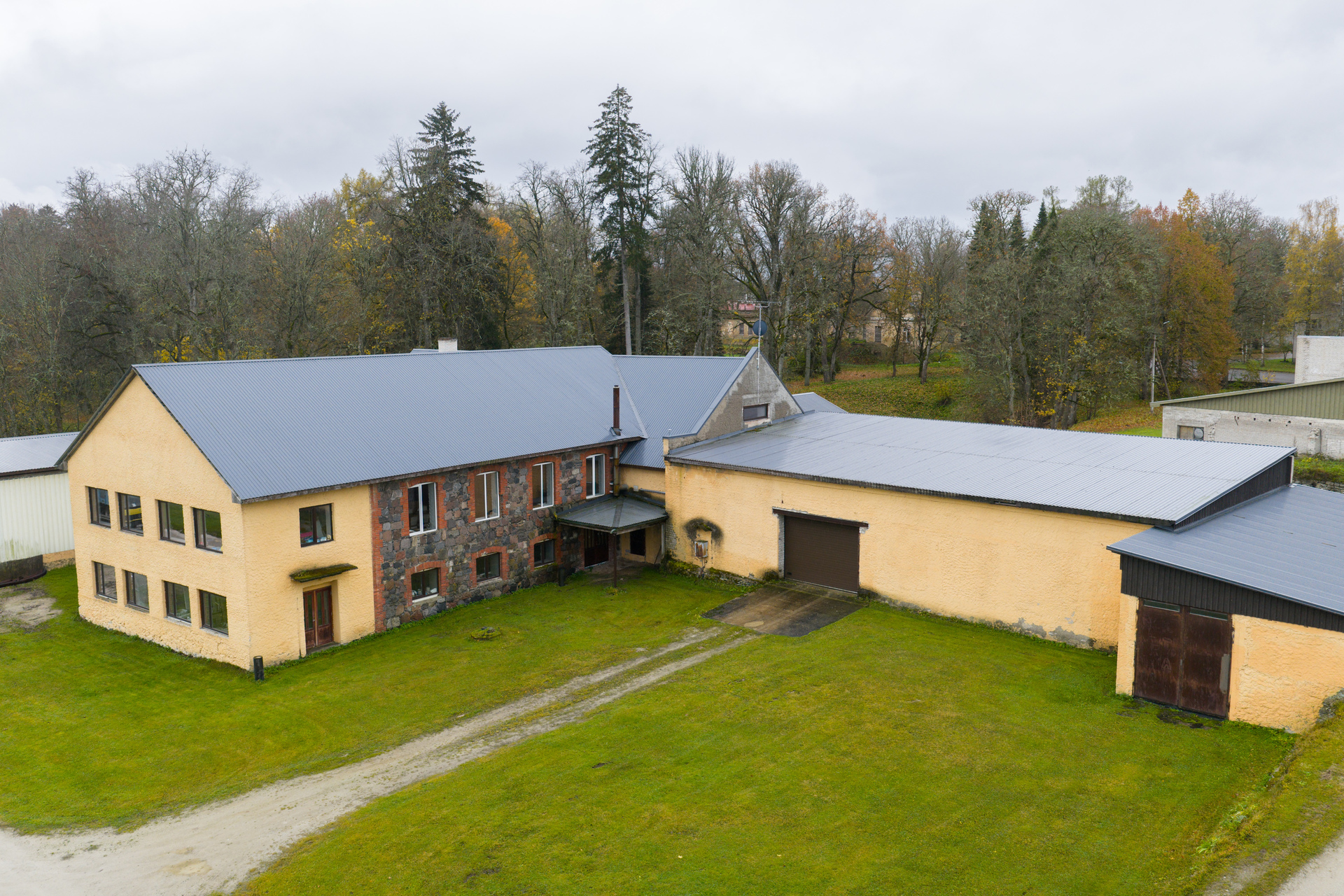 Hoone juurde kuuluvad kaks garaaži – üks suurem 238,8 m² ja teine väiksem 84,7 m².