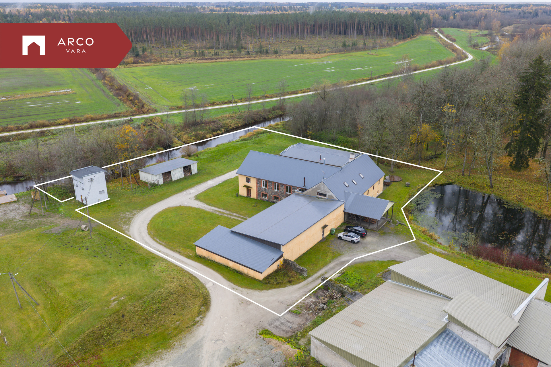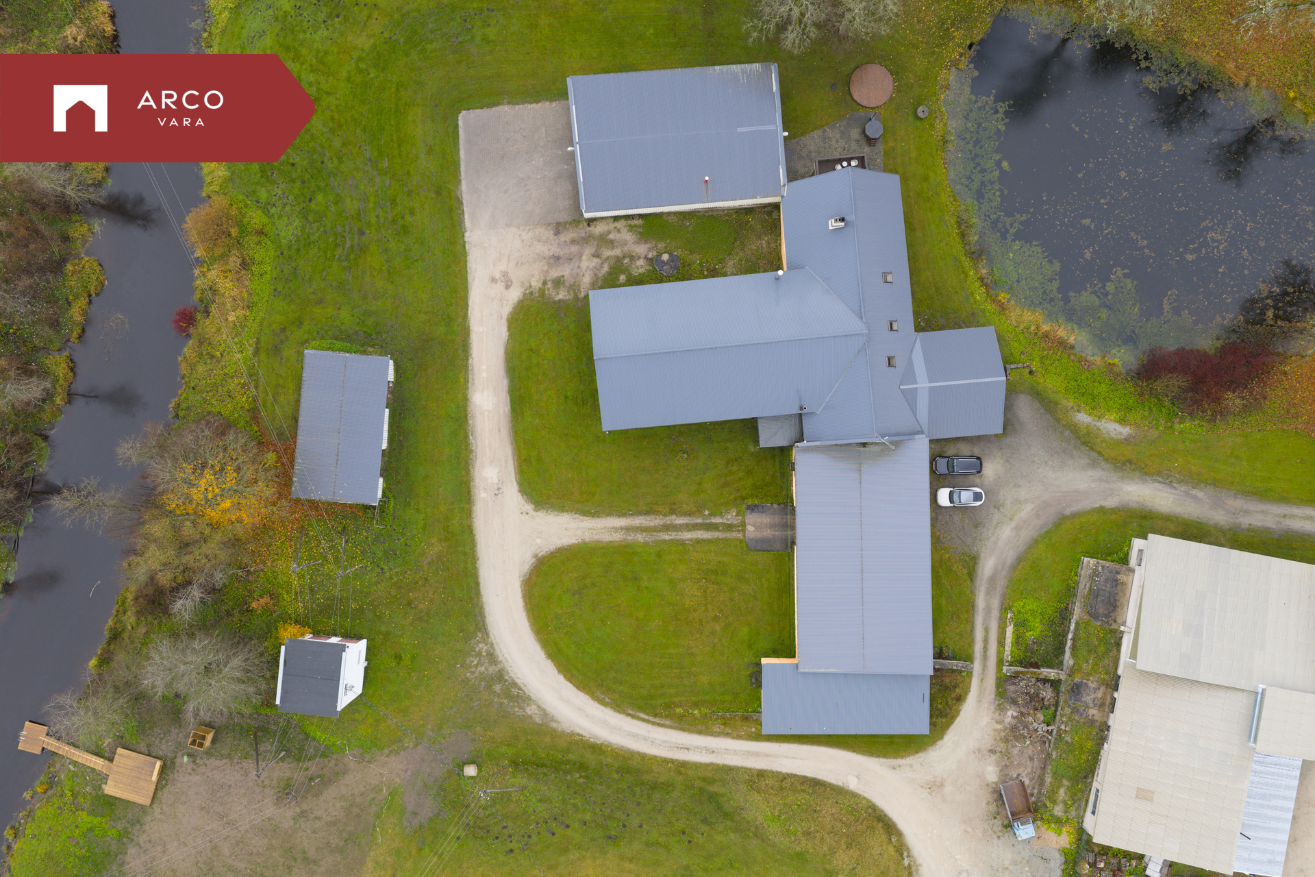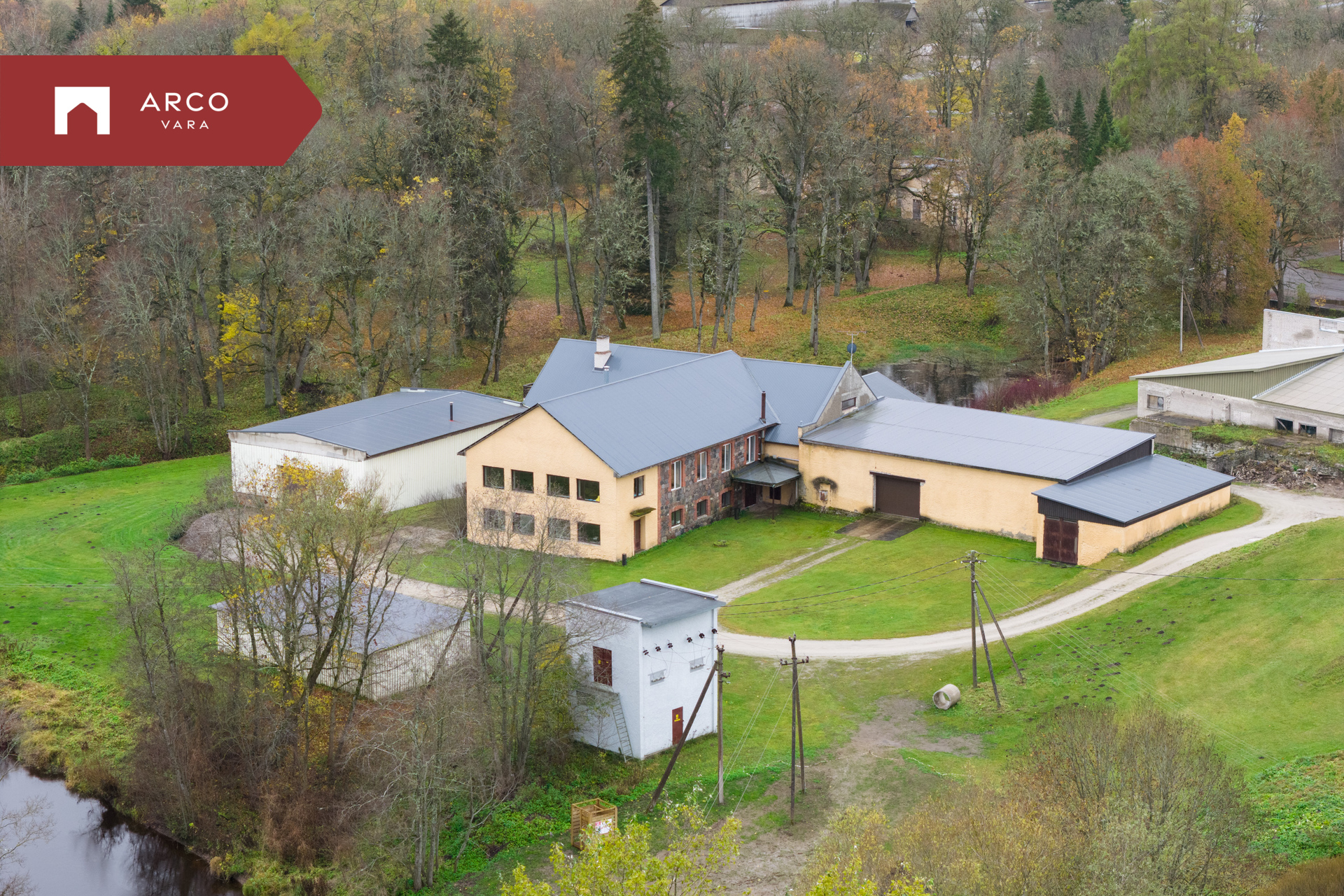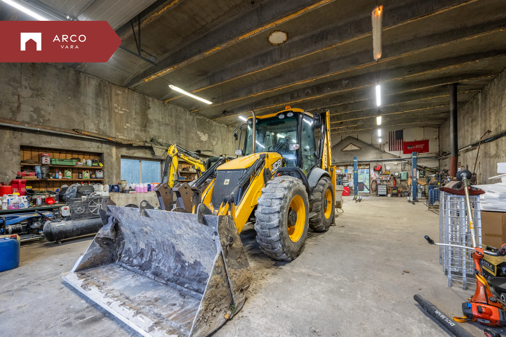 Hoone juurde kuuluvad kaks garaaži – üks suurem 238,8 m² ja teine väiksem 84,7 m².