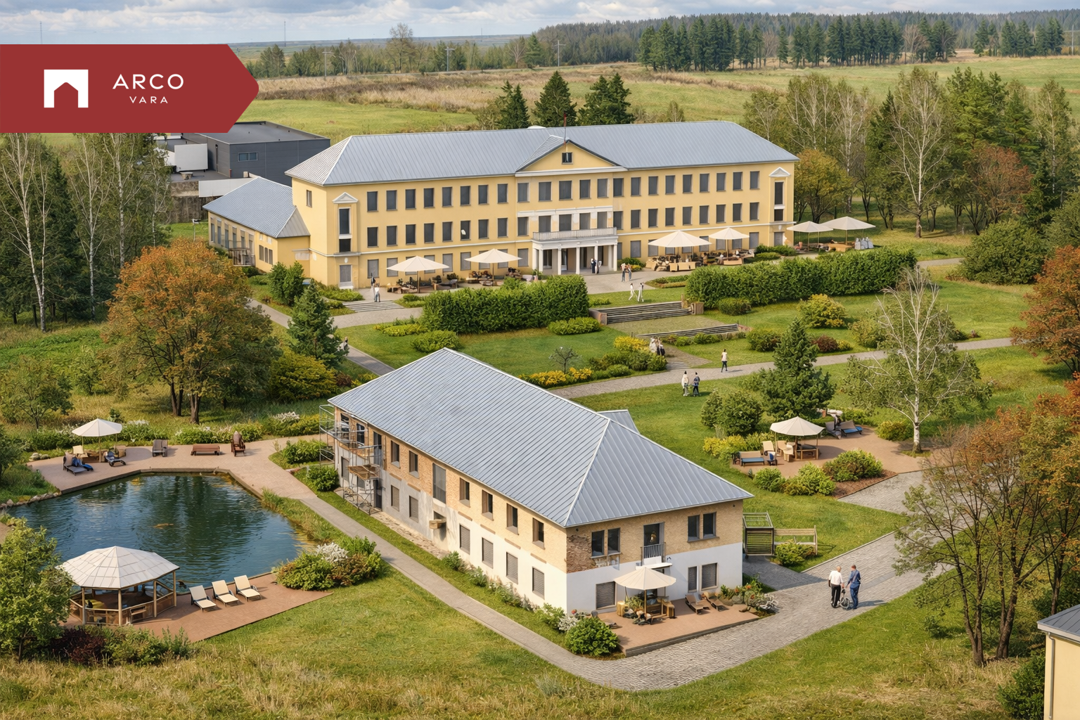 Müügile on tulnud mahukas 114 753 m² suurune kinnistu, millel asub neli hoonet ning eraldiseisev pelletkatlamaja. Tegemist on mitmekülgsete võimalustega kinnisvarakompleksiga, mis sobib ideaalselt hooldekodu, tervise- või taastusravikeskuse, hotelli või muu sotsiaal- ja majutusfunktsiooniga arenduse rajamiseks.