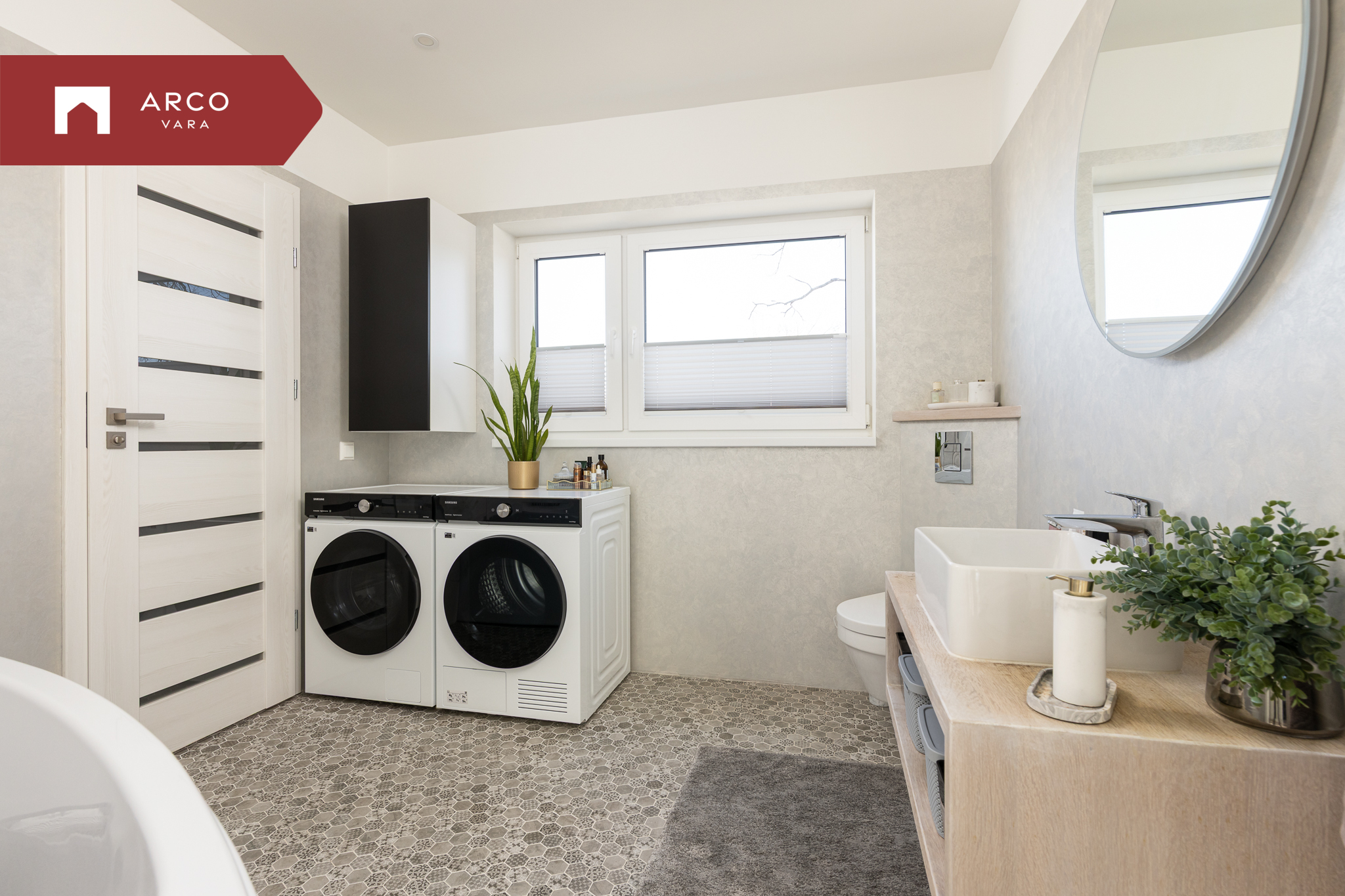 Esimesel korrusel paiknevad veel saun, pesuruum, garderoob, WC ja panipaik, teisel korrusel asuvad kolm magamistuba, mis annavad igale pereliikmele oma privaatse ruumi. Lisaks on ülakorrusel vannituba ja garderoob.