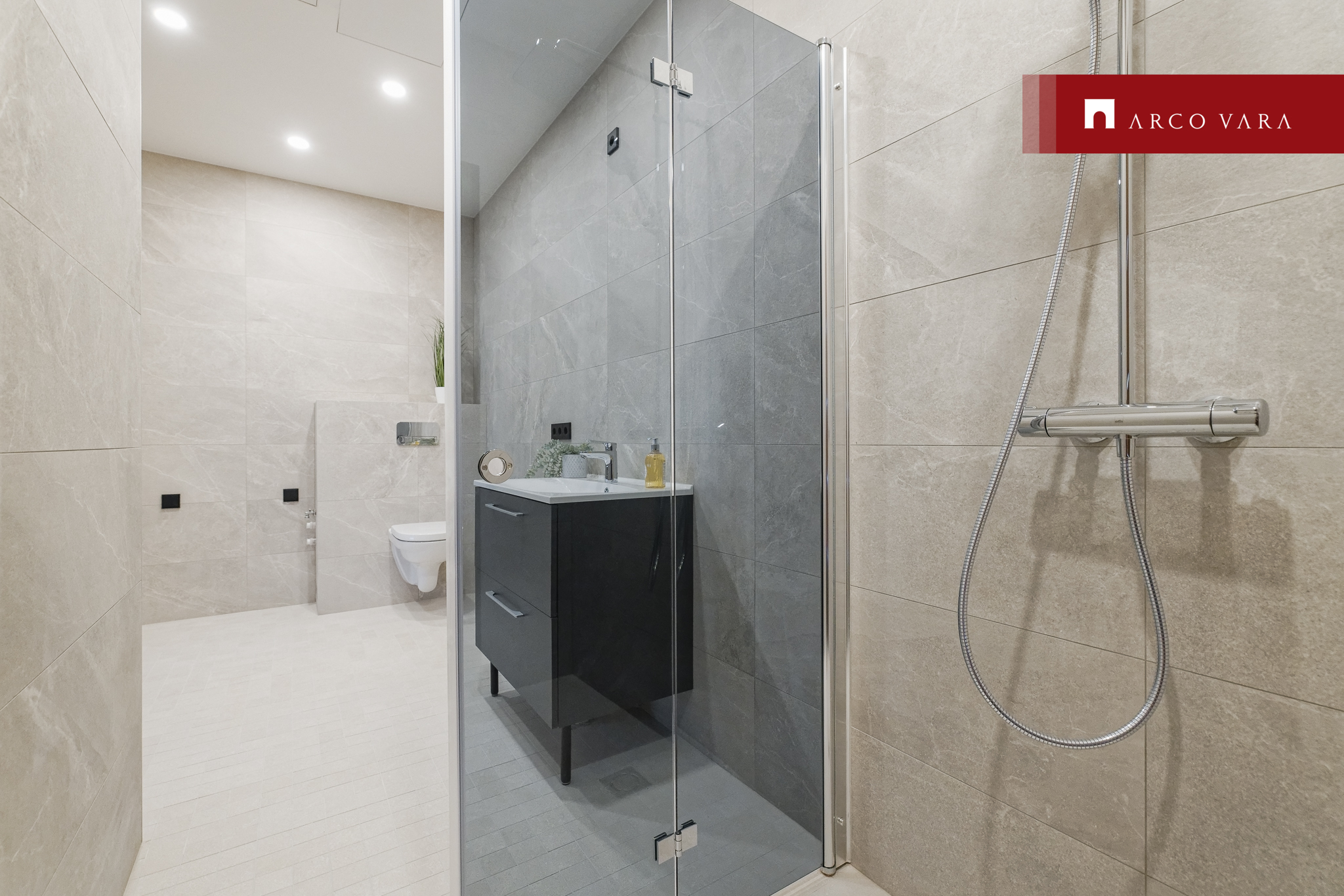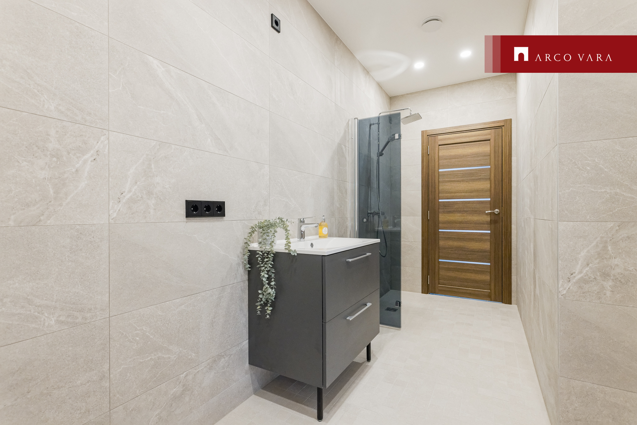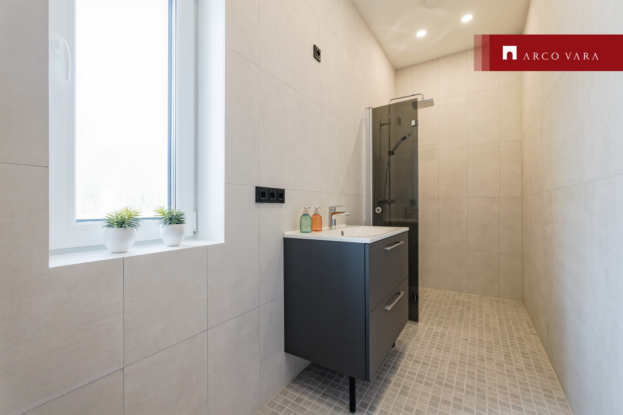 San-ruumides on kasutatud neutraalsete toonidega keraamilisi plaate.