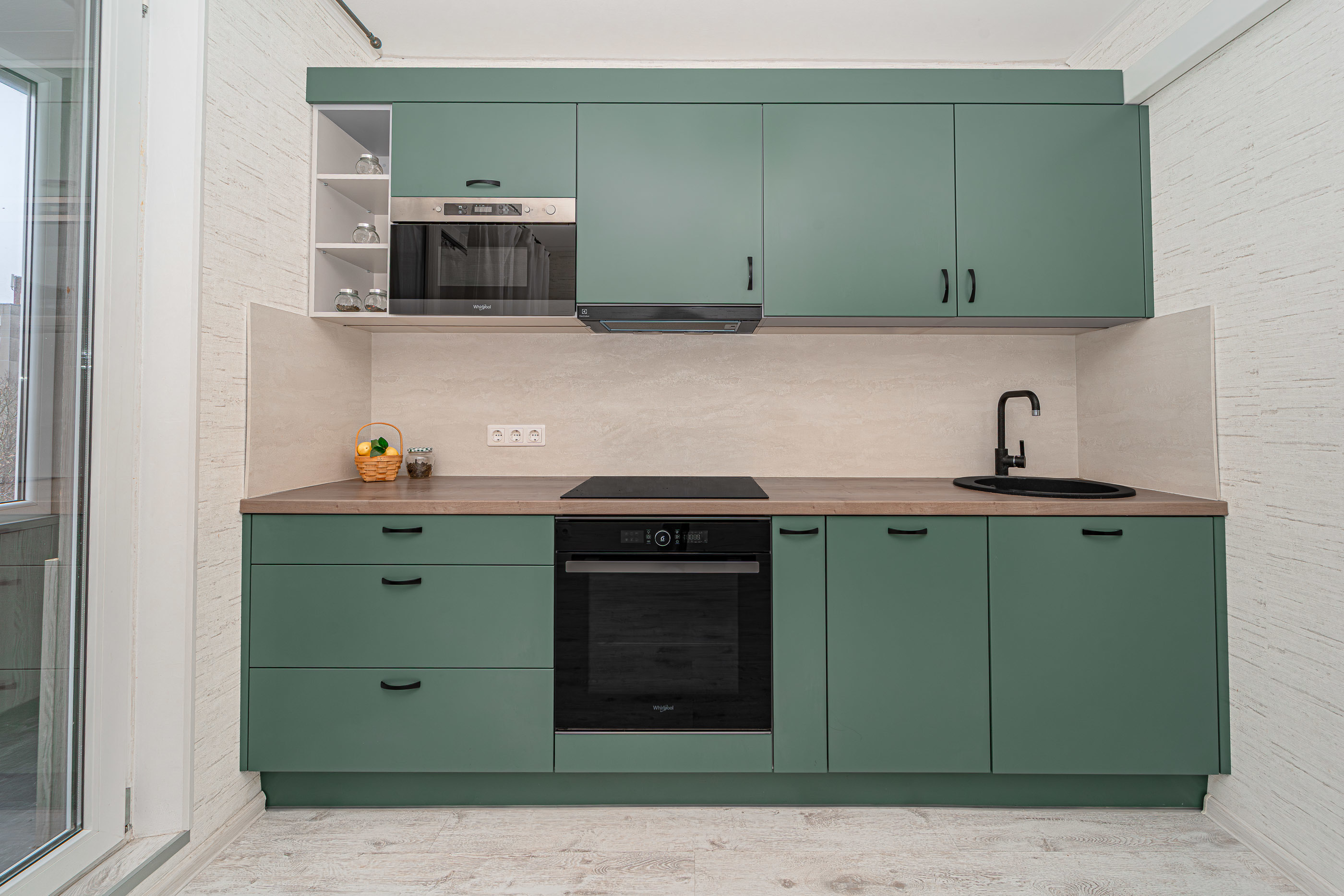 Köögis on funktsionaalne köögimööbel koos sisseehitatud tehnikaga: elektripliit, ahi, õhupuhasti, nõudepesumasin, mikrolaineahi ja külmkapp. Vannitoas on sanitaartehnika ja vannitoamööbel. Magamistuba ja elutuba on samuti täielikult möbleeritud, korter on kohe sissekolimiseks valmis ja võimaldab mugavat elu.