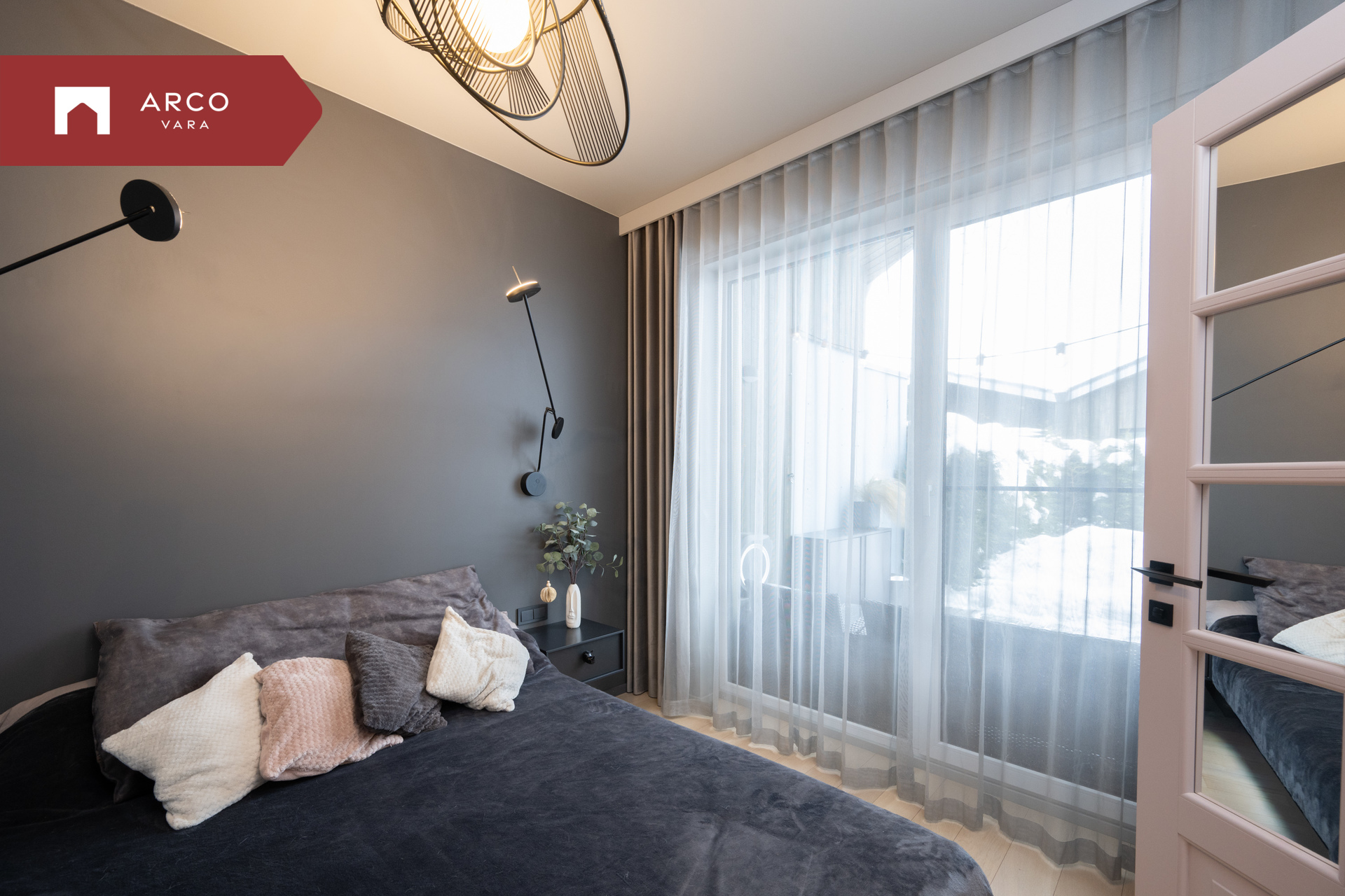 Master bedroom, kuhu sissekäik on eraldi roosad peeglitega uksed