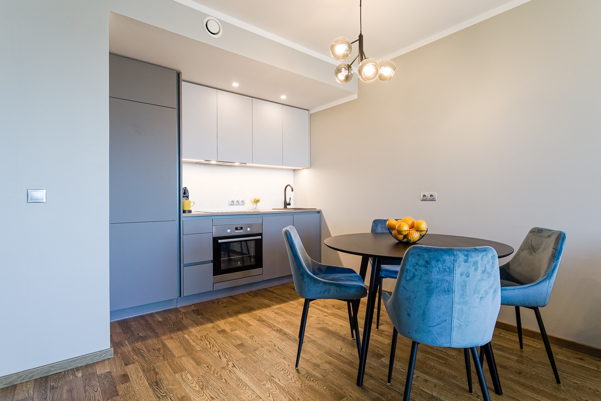 Korterisse paigaldatud uus köögimööbel koos uue tehnikaga (integreeritud külmkapp, pliit, praeahi, nõudepesumasin ja õhupuhasti), vanntoamööbel, pesumasin, garderoob, täielikult möbleeritud. Kogu mööbel on uus ja kvaliteetne.