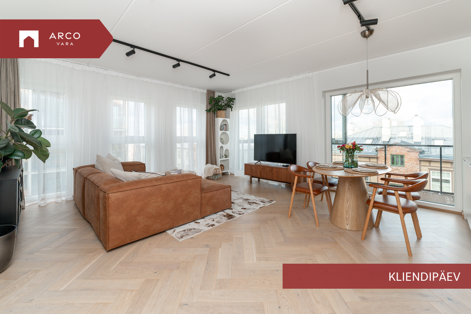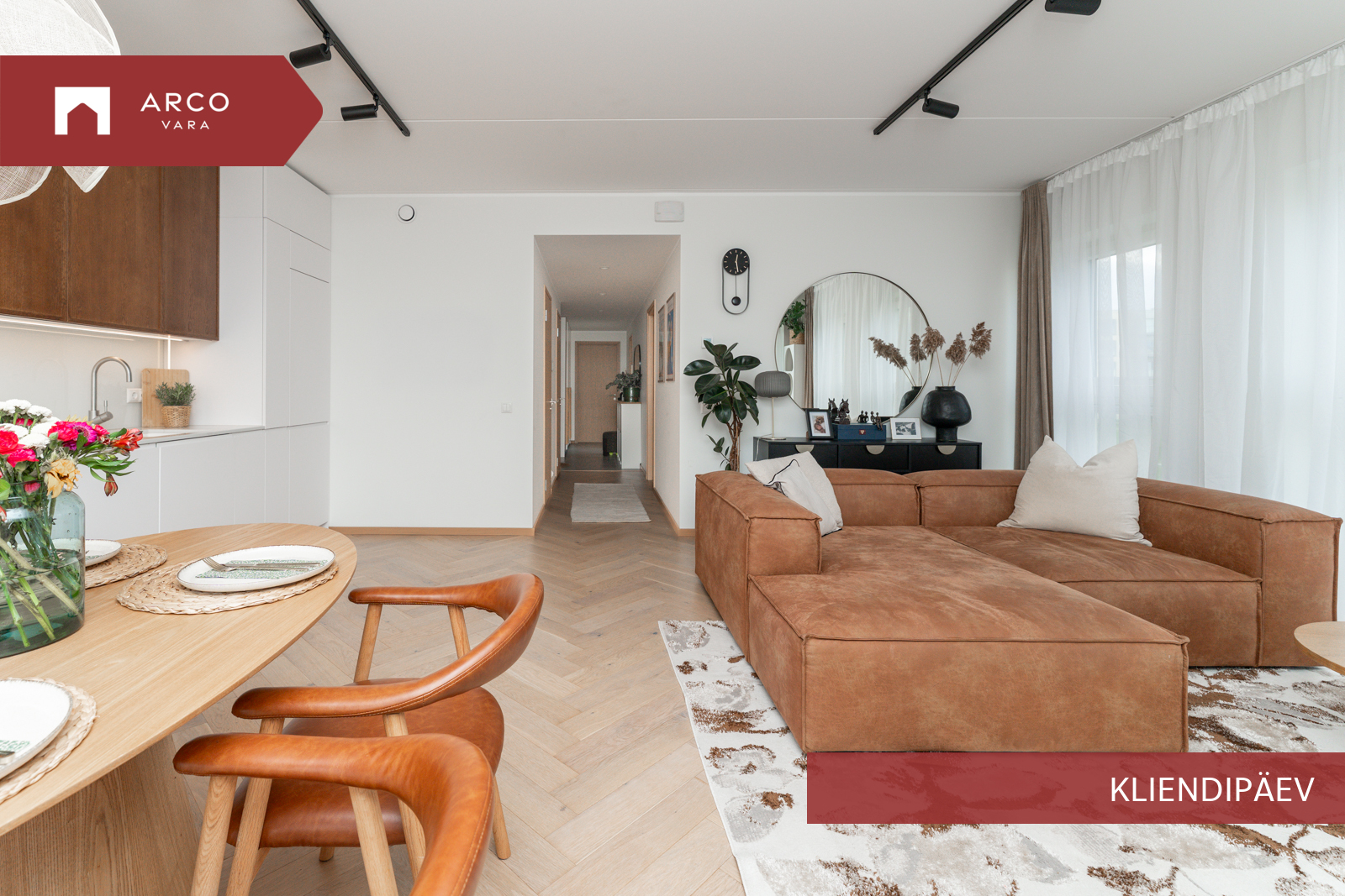Avar elutuba koos avatud köögiga on kodu keskpunkt, kuhu õhtupäike loob hubase meeleolu. Köögis on eritellimusel Arensi köögimööbel koos Electroluxi integreeritud tehnikaga ning Villeroy & Bochi elegantne köögivalamu lisab interjöörile luksulikku puudutust. Elutoast pääseb kahele rõdule: ühele avatud ning teisele klaasitud rõdule, mille klaasid saab täielikult avada.