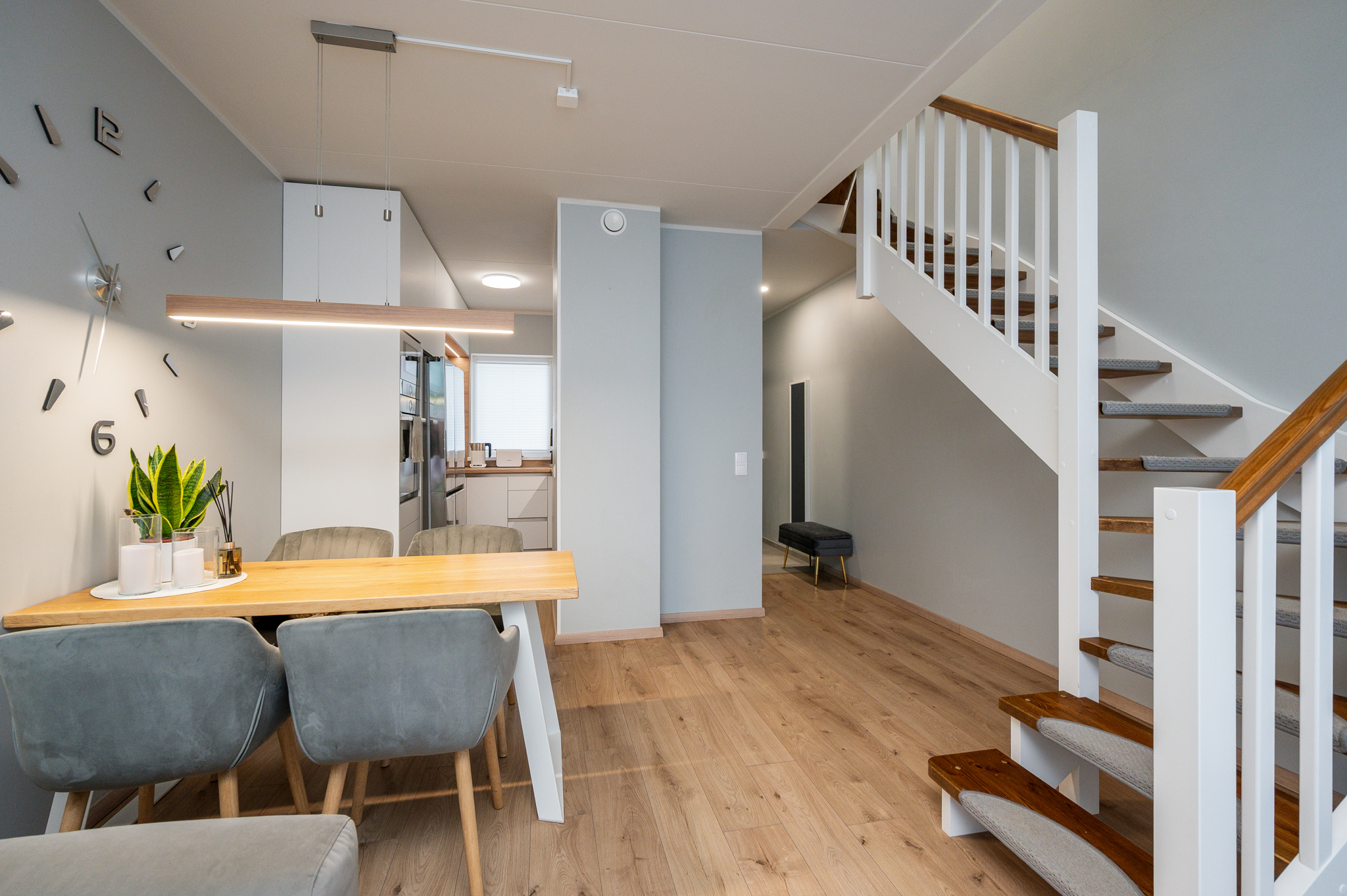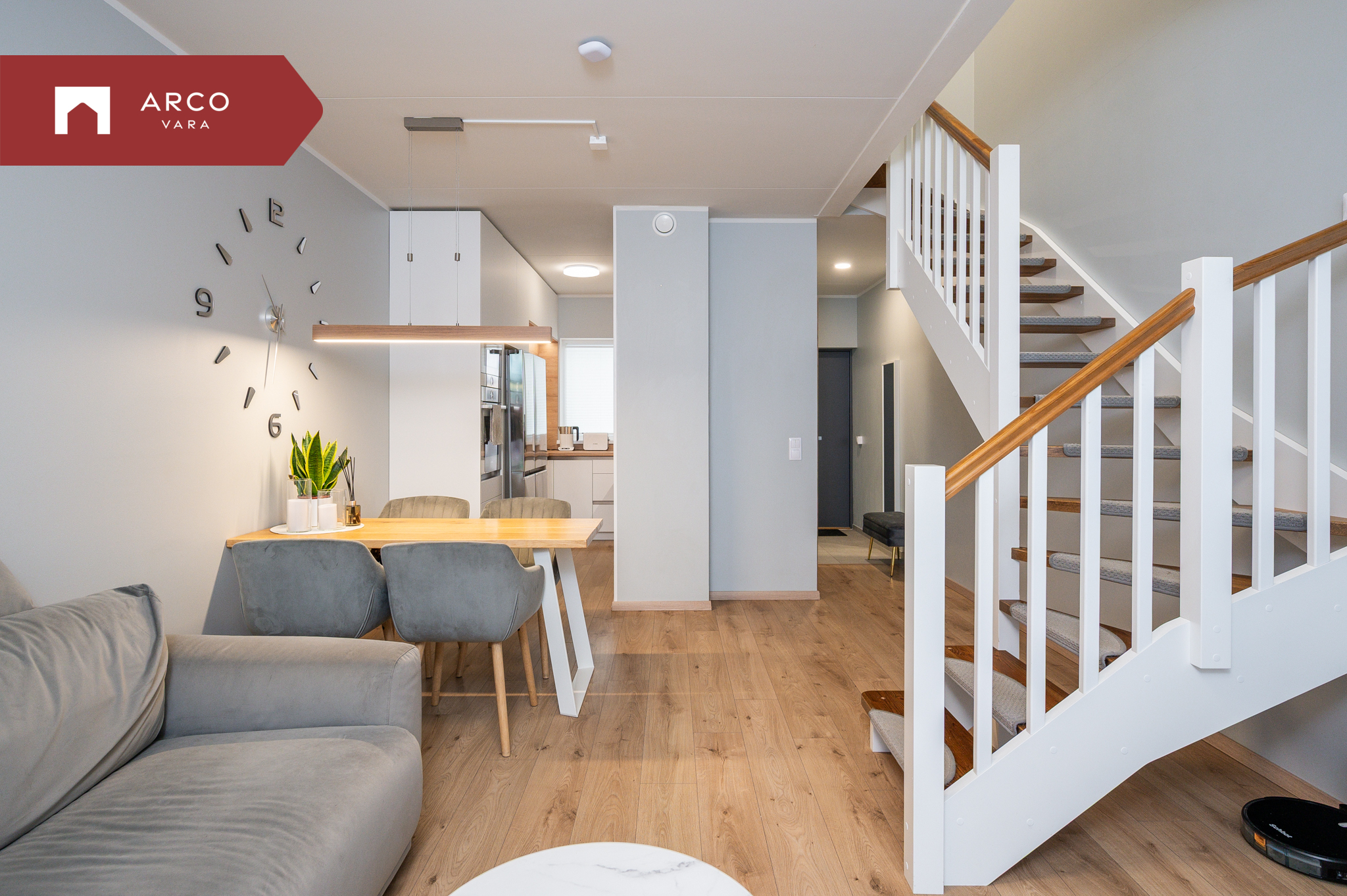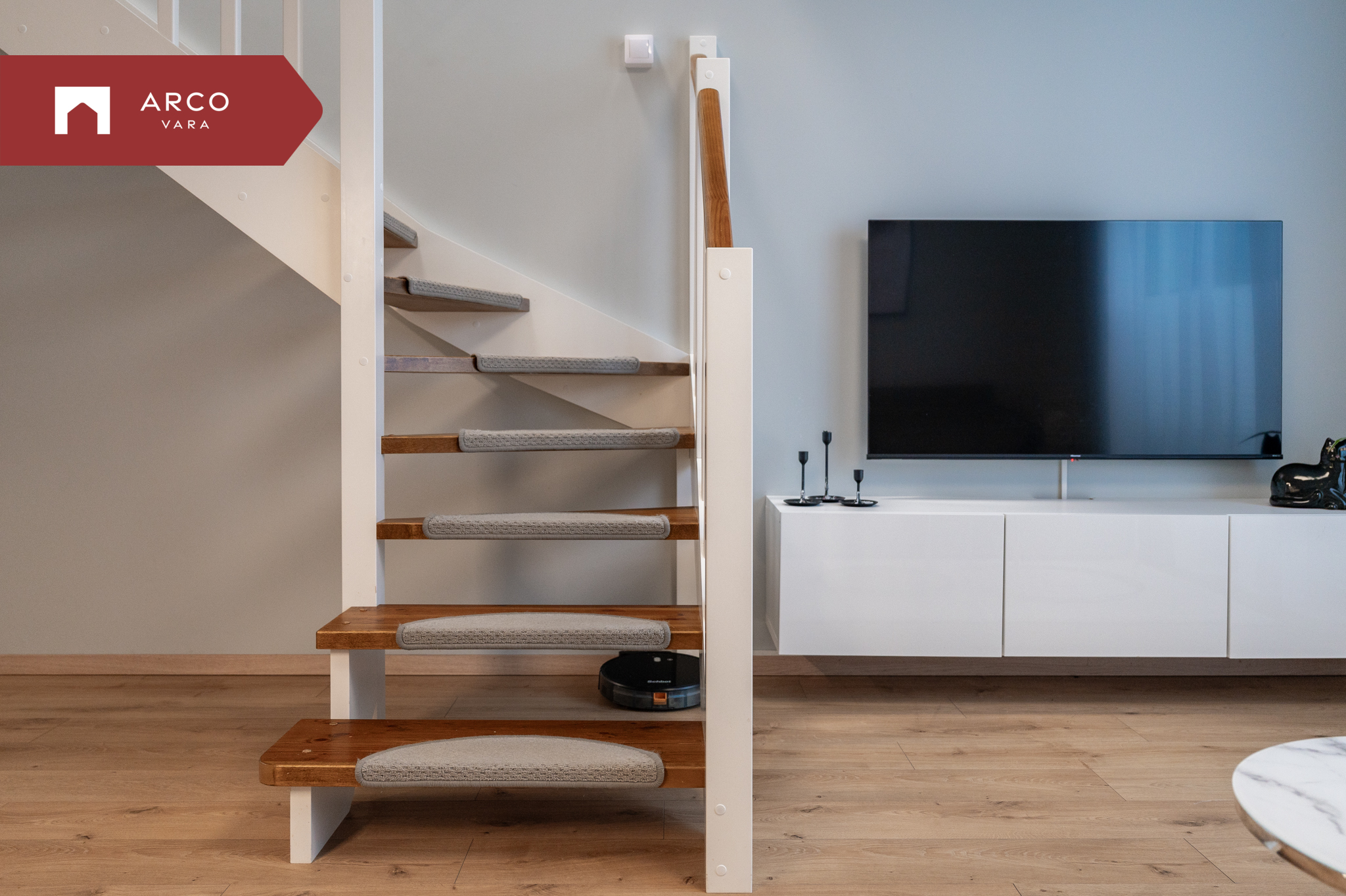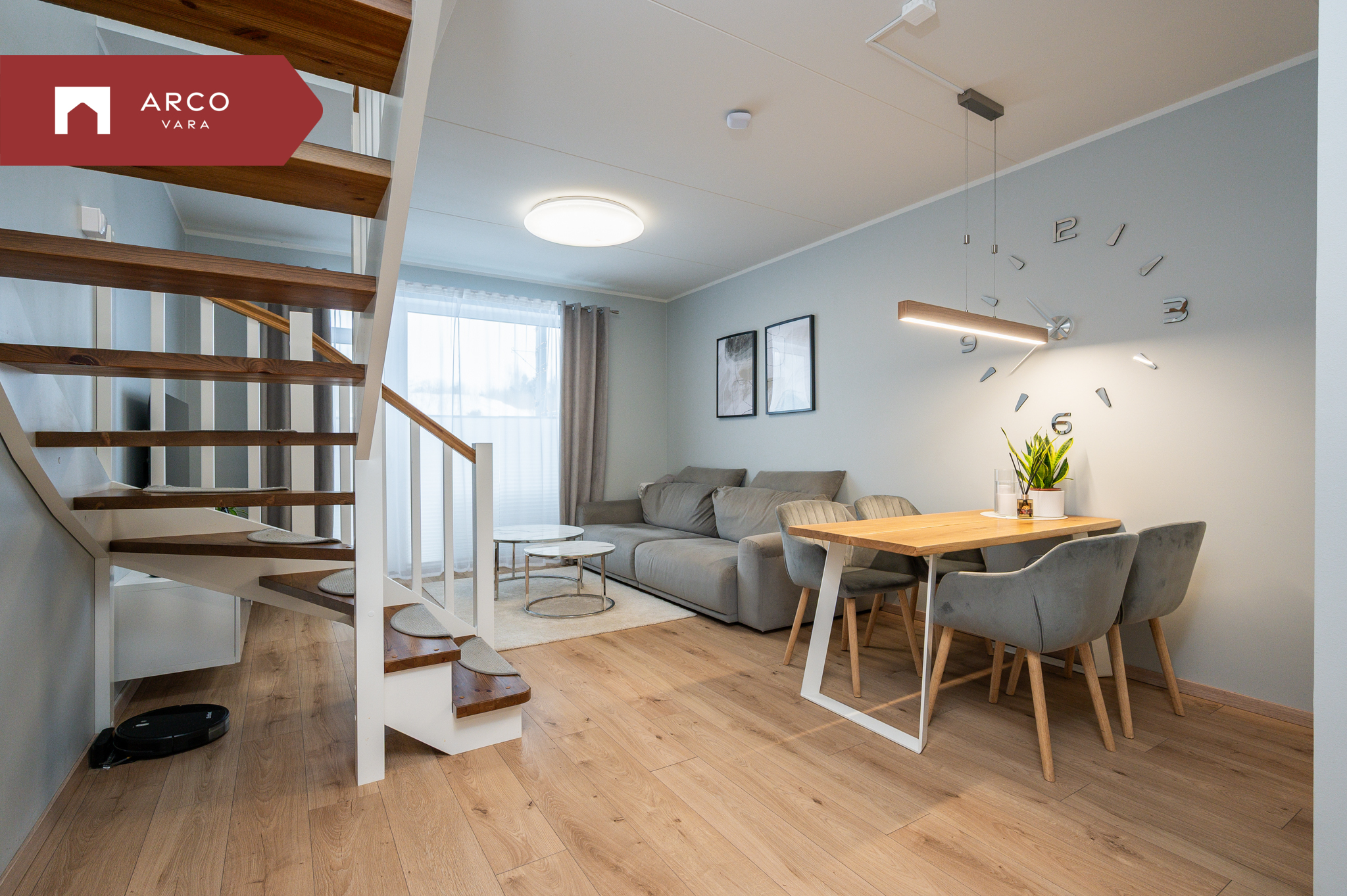 Kodune ja läbimõeldud planeering paikneb kahel korrusel. Suletud netopind on 65,5 m², millele lisandub 12,8 m² suurune päikesepoolne väliterrass.