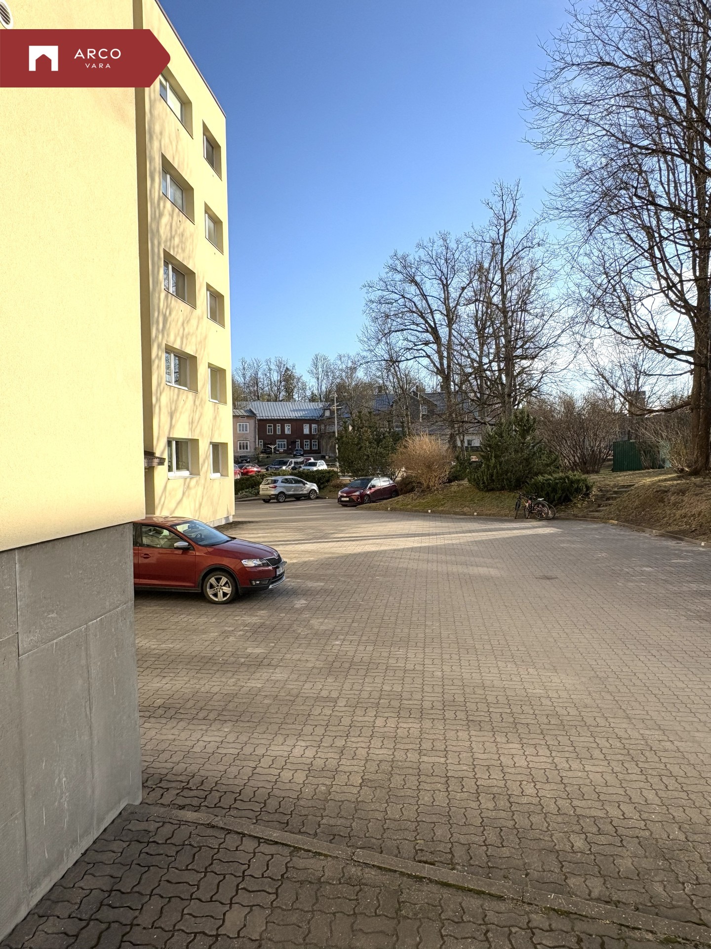 Korter asub maja viiendal korrusel, pakkudes privaatsust ja kauneid vaateid.