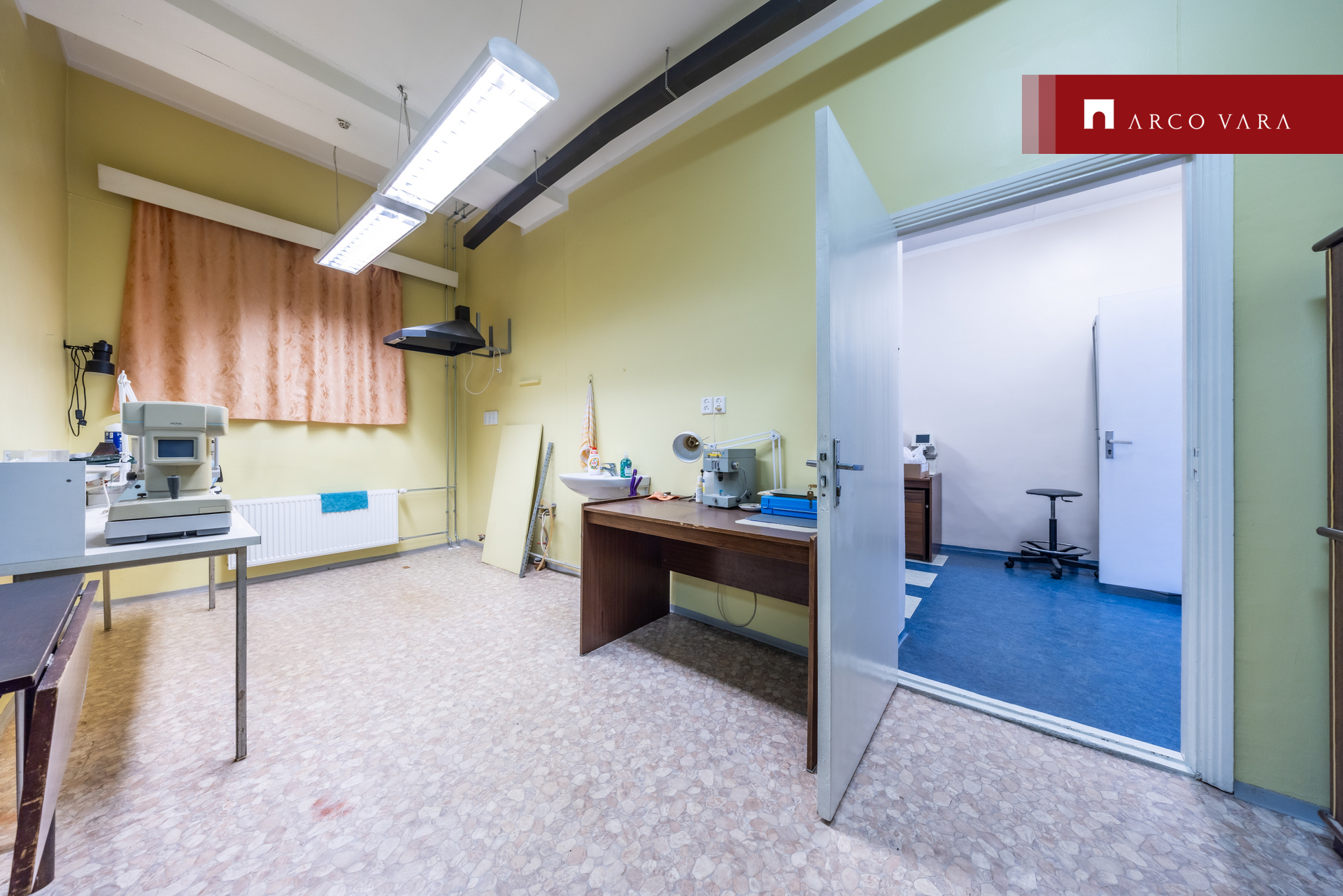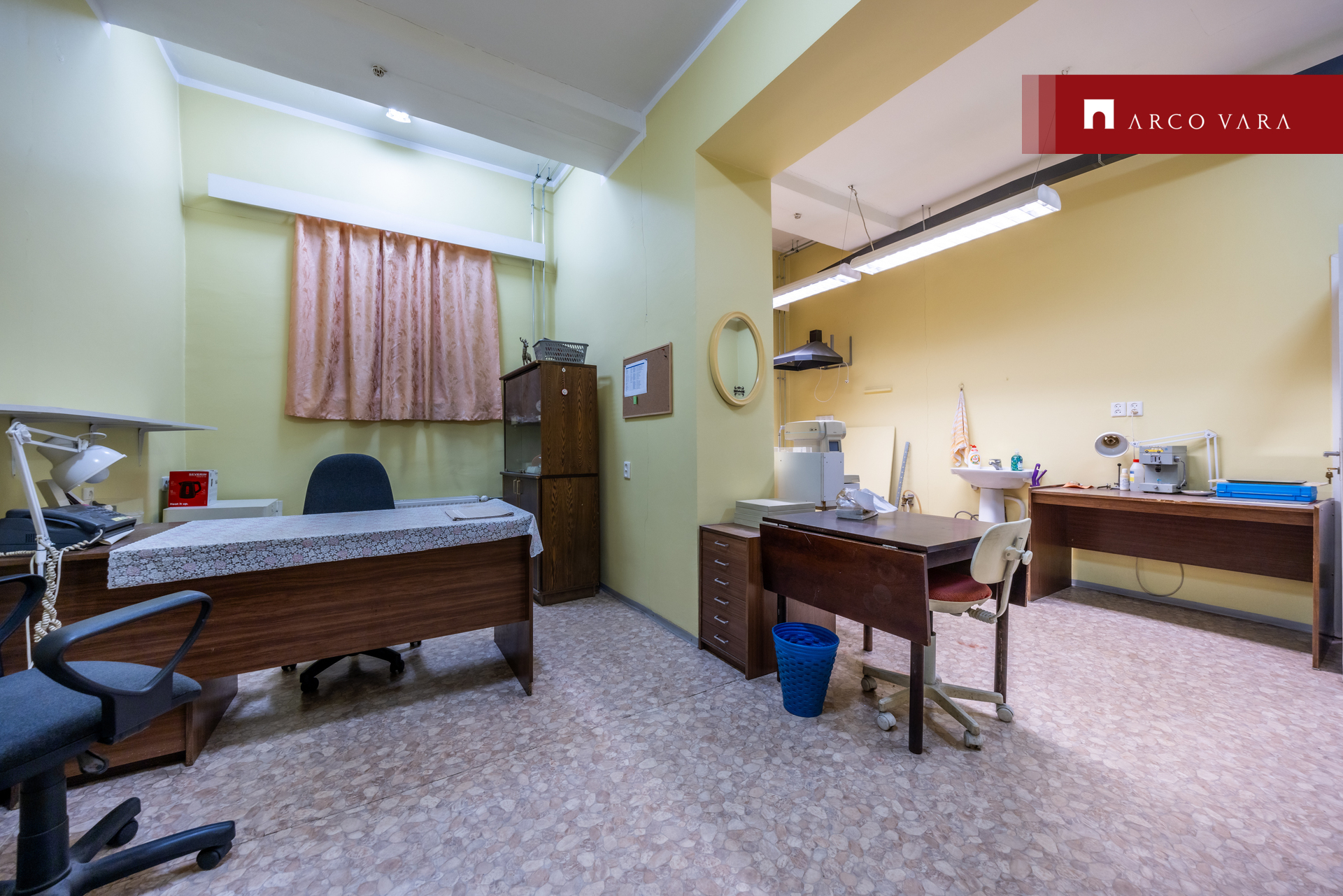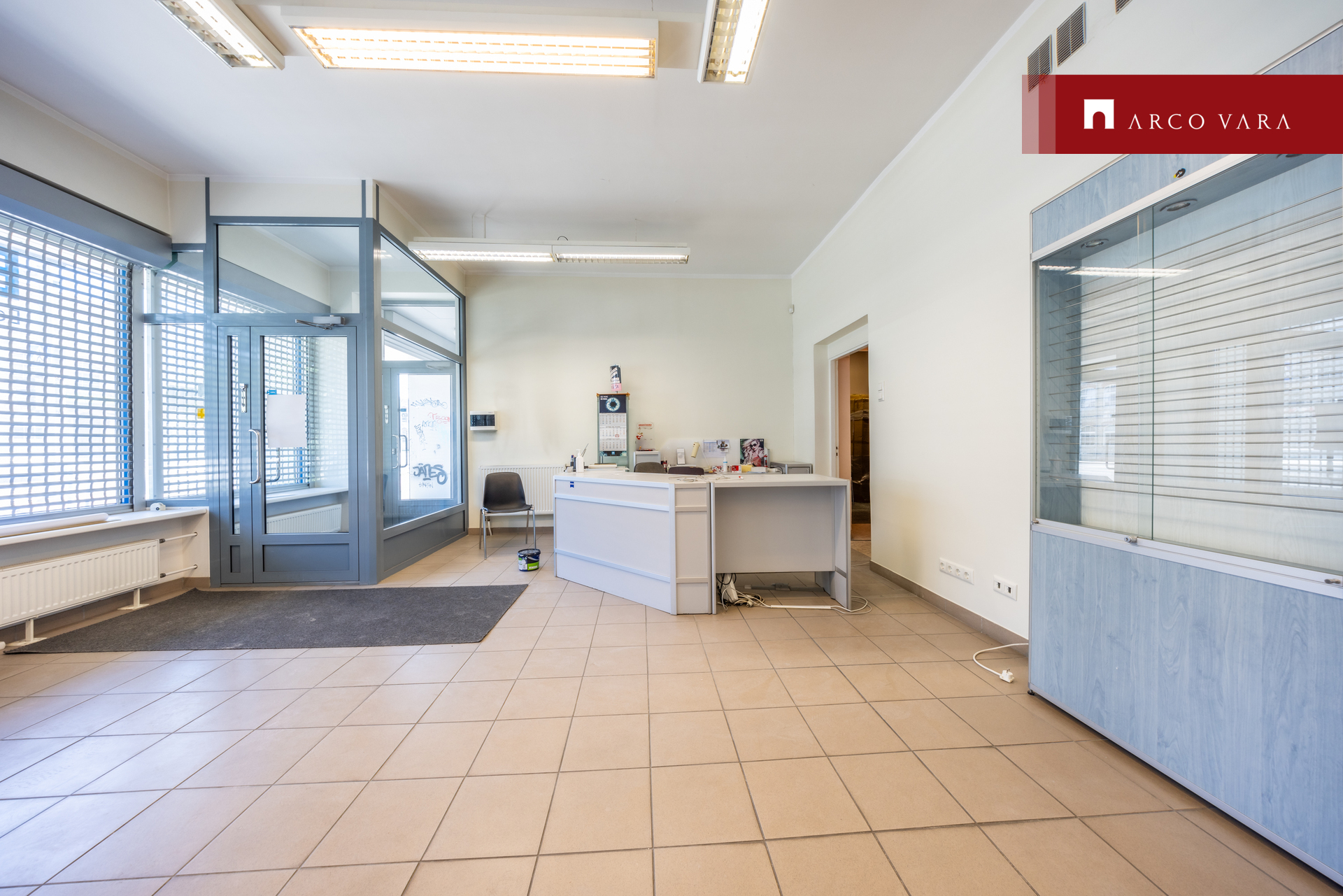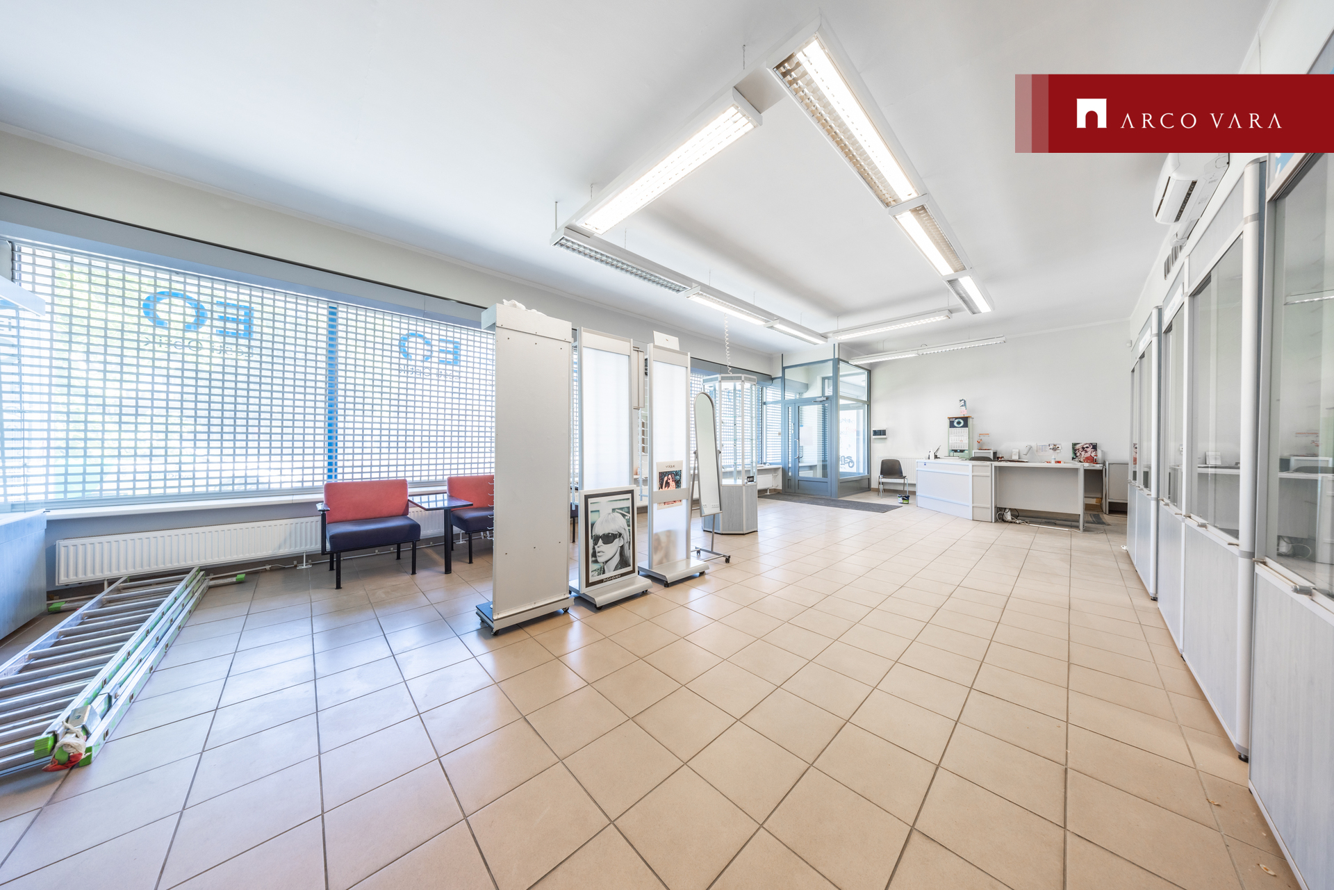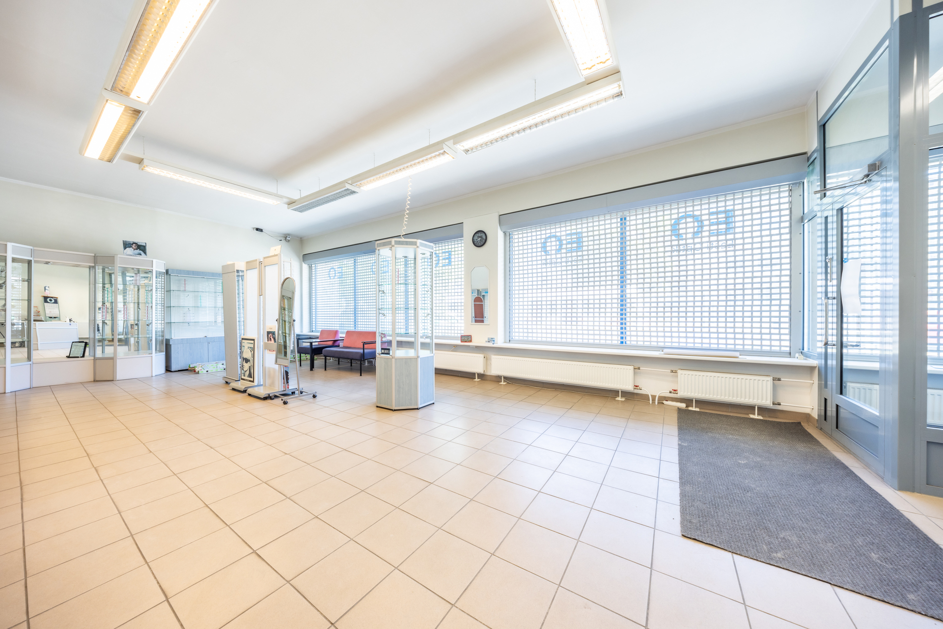 Suurte vitriinakendega esimesel korrusel asub kaubanduspind, kontori- ja teenindusruumid.