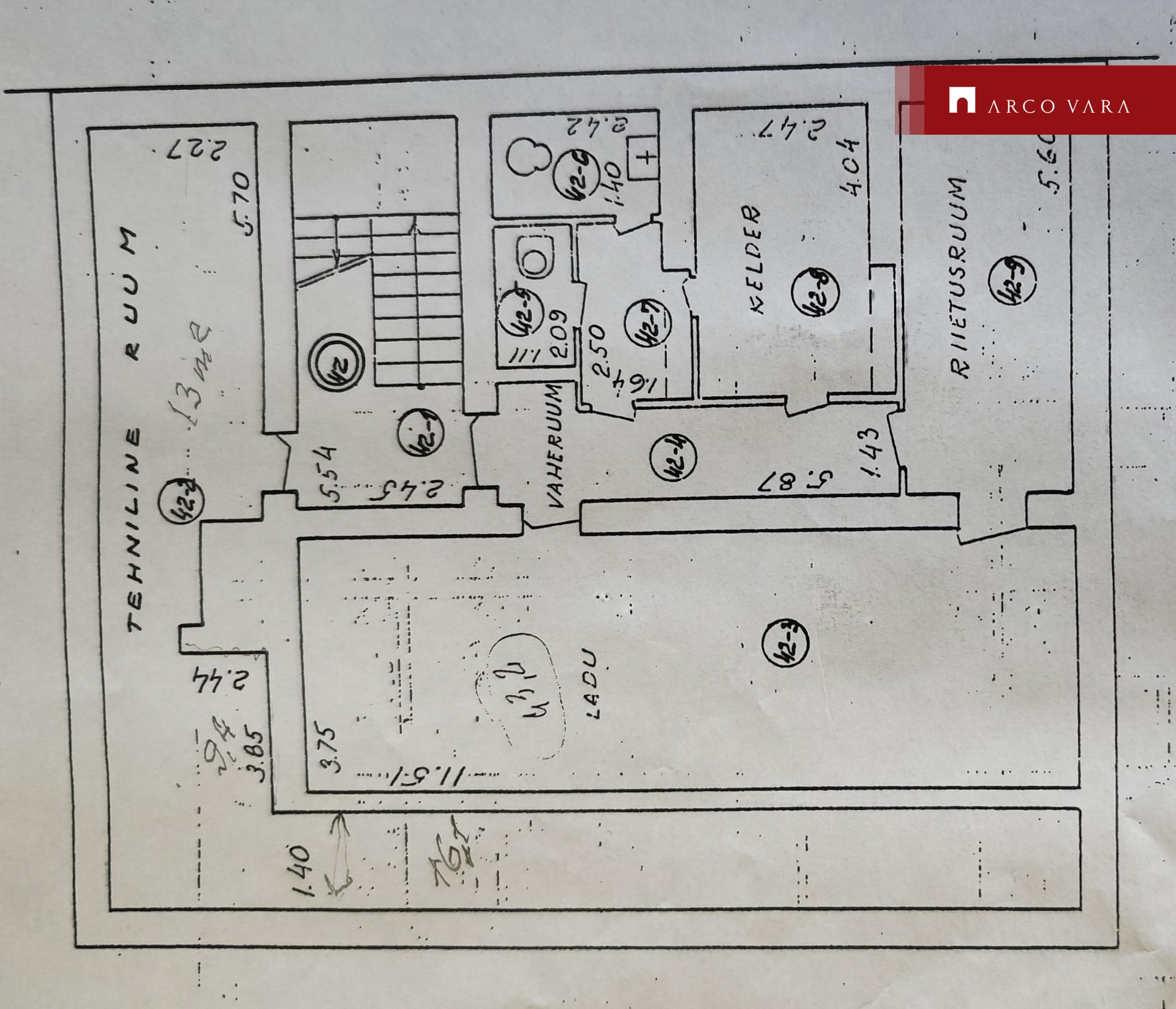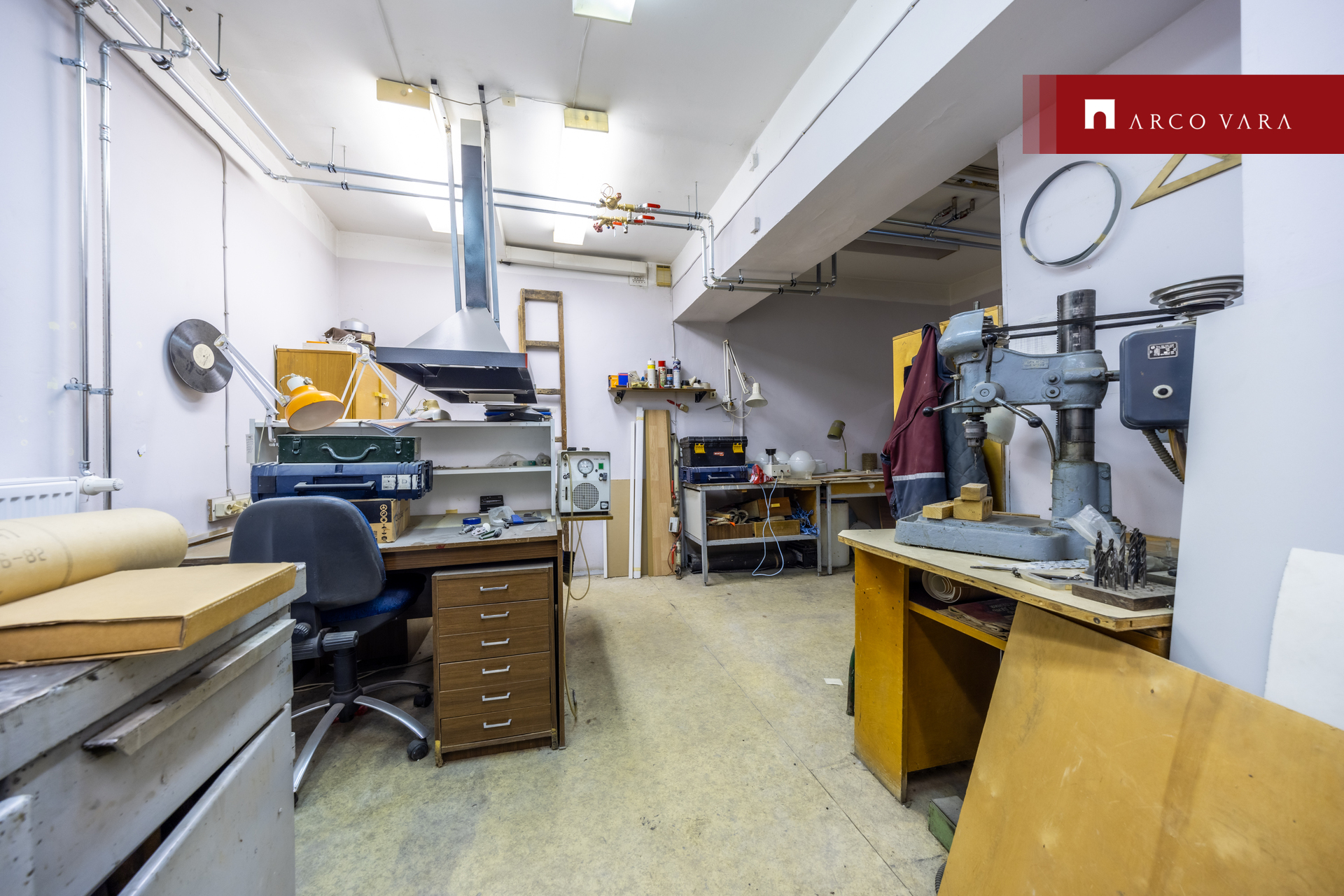 Keldrikorrusel ladu, töö- ja riietusruumid.