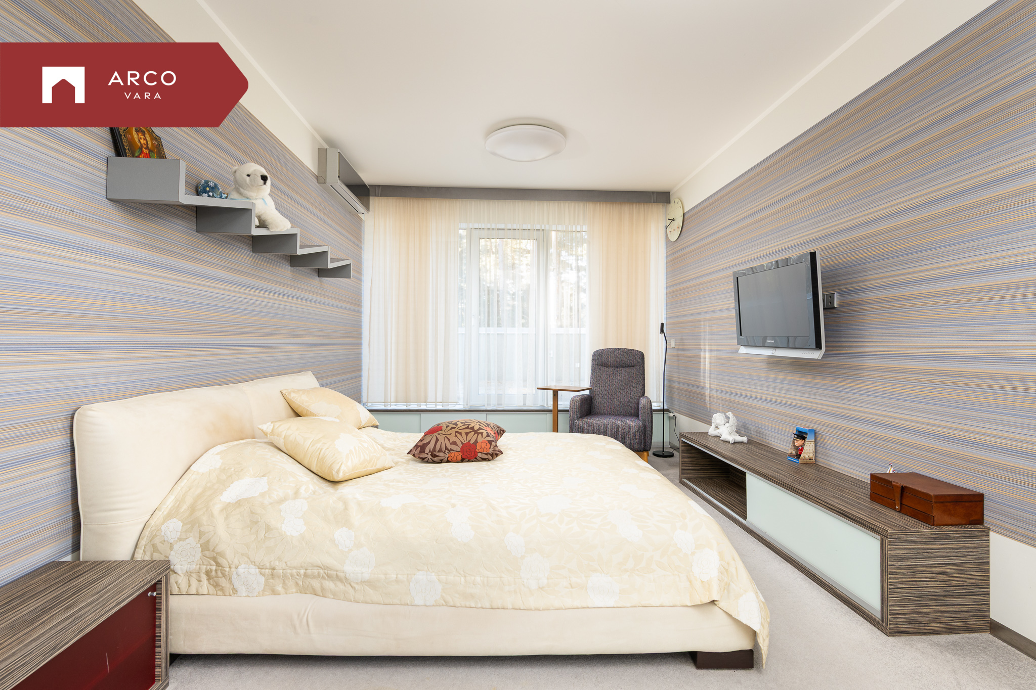 Три спальни, гардеробная, ванная комната с туалетом.