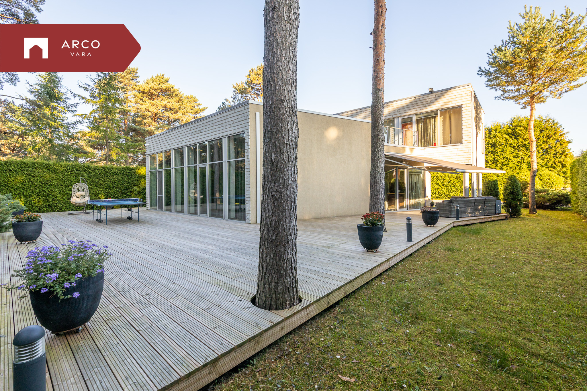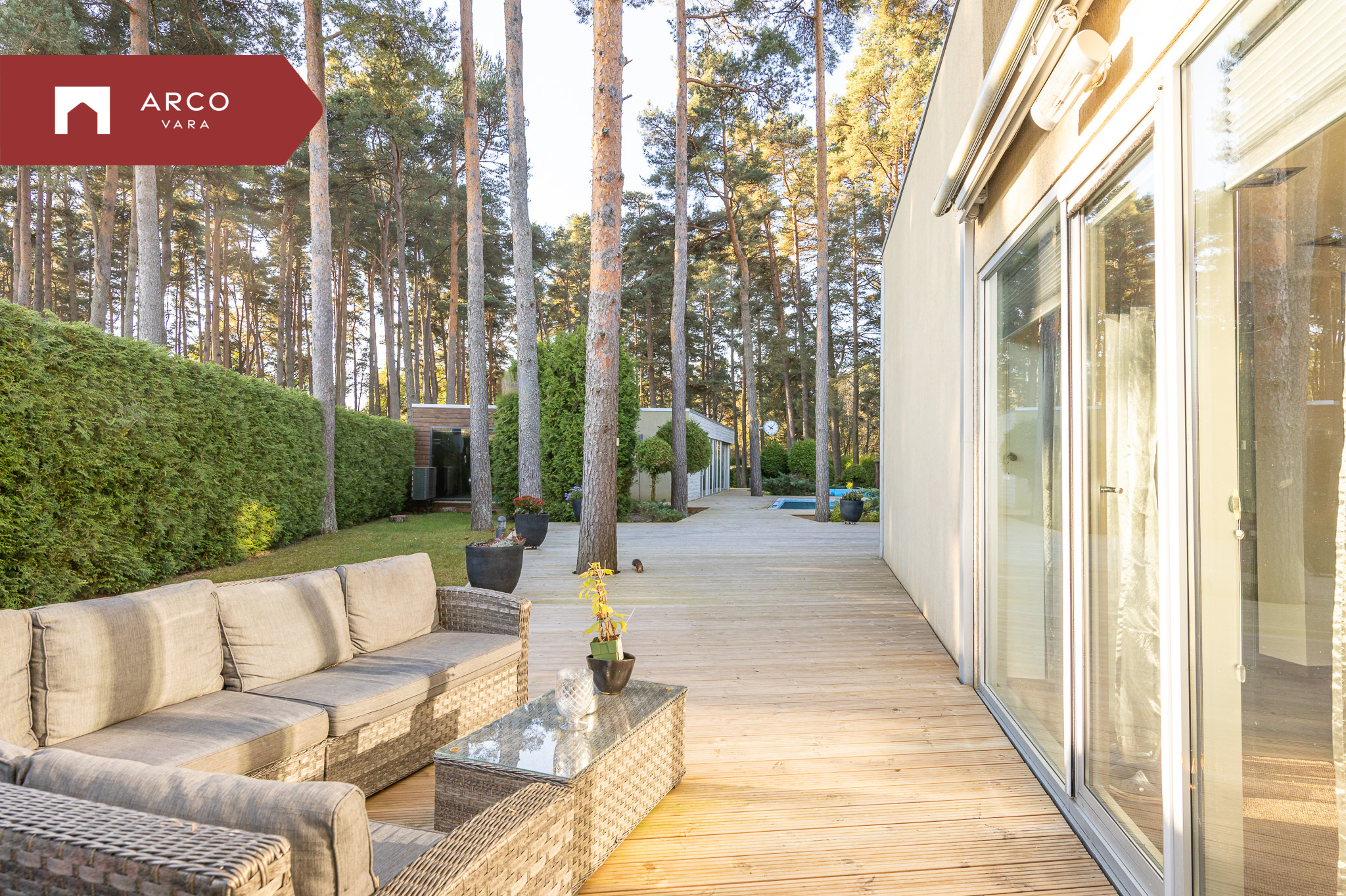 Благодаря зелёным насаждениям, высоким деревьям и соснам на участке обеспечена полная приватность и ощущение уединения.