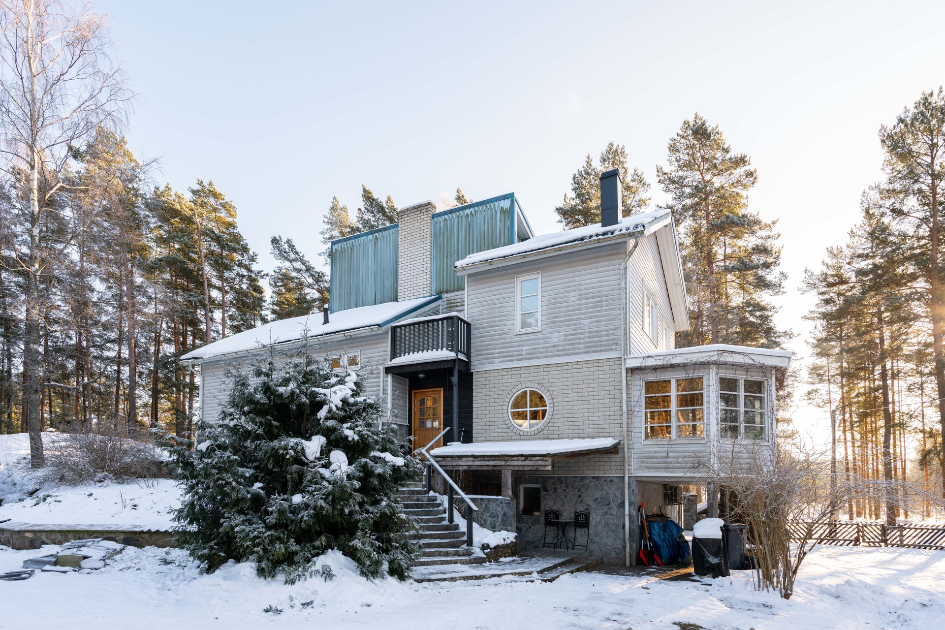 Kinnistul paiknev elamu lubab kohe sisse kolida, vajades tulevikus siit-sealt kohendamist ning kaasajastamist, võimaldades põnevat arhitektuuri veelgi esile tõsta. Eluruumid paiknevad neljal tasapinnal kahel maapealsel korrusel ning lisaks keldrikorrus tehno- ja abiruumidega. Magamistubasid kokku lausa neli, lisaks avar köök, hubane elutuba, mis külgneb romantilise verandaga ning muidugi ei puudu ühest õigest kodust korralik saunablokk puudega köetava leiliruumiga. Kodusooja loob katel, kaks Tulikivi kamin-pliit-ahju ning mugavusküttena on lisatud õhk-õhk-soojuspumbad. Praktiline kodu mändide kaisus, kus hommikuse linnulauluga virguda ja õhtuseid päikeseloojanguid nautida.