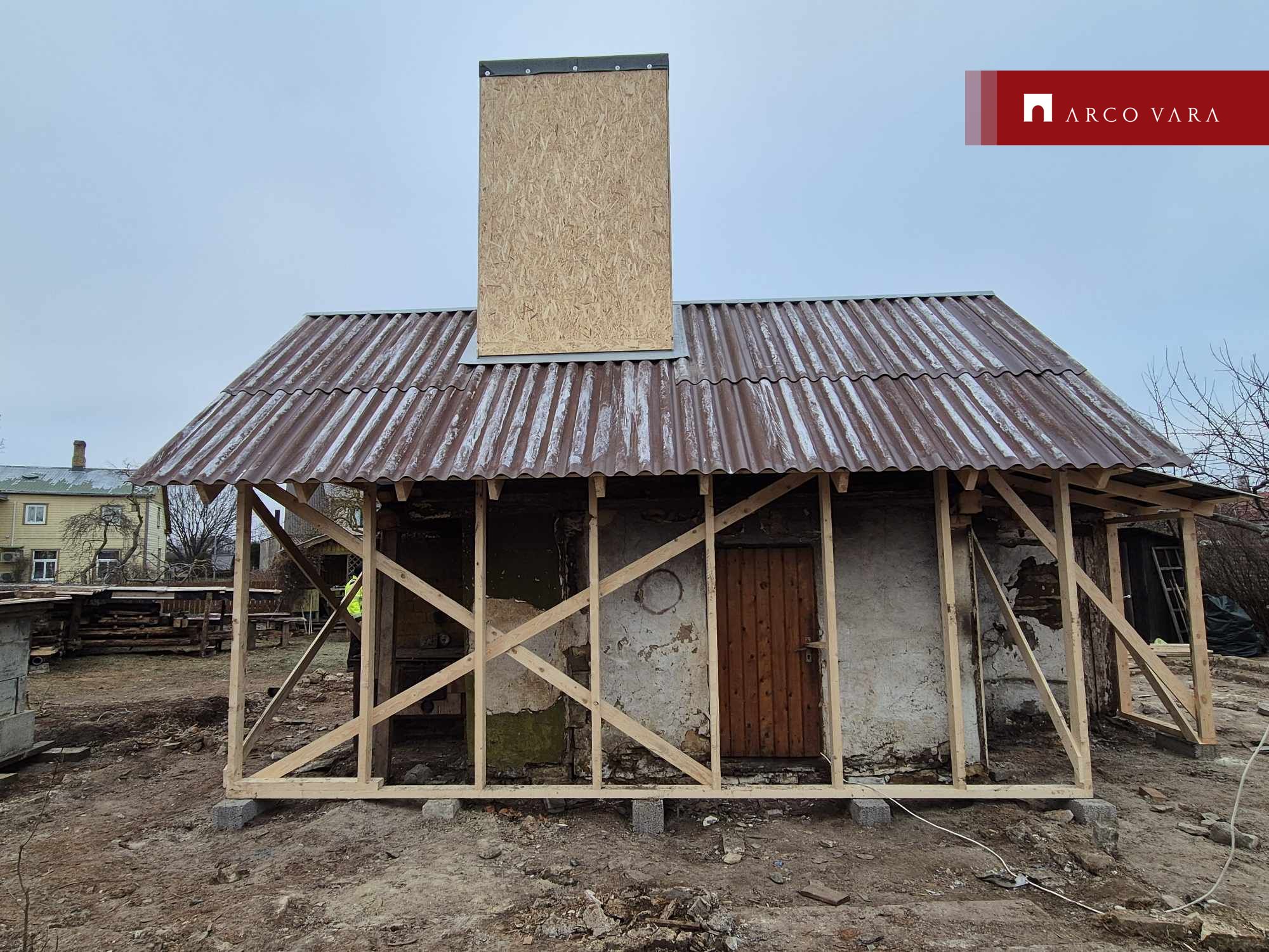 Esimeses etapis lasi praegune omanik hoone puitmaterjali demonteerida, staabeldada ja katustada ning roovialusega mantelkorstna katta ilmastiku kaitseks. Need tööd teostati selle aasta kevadel.