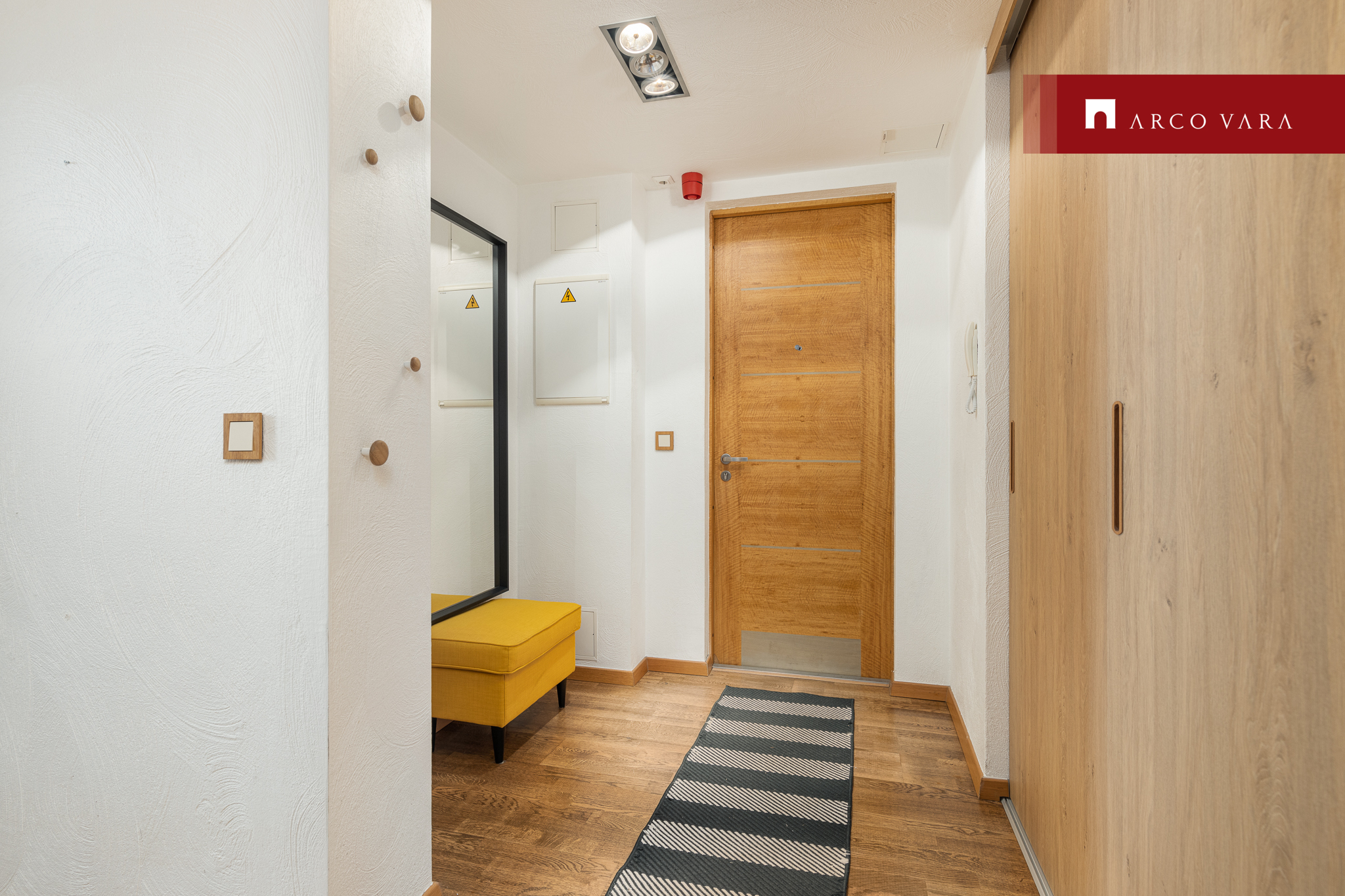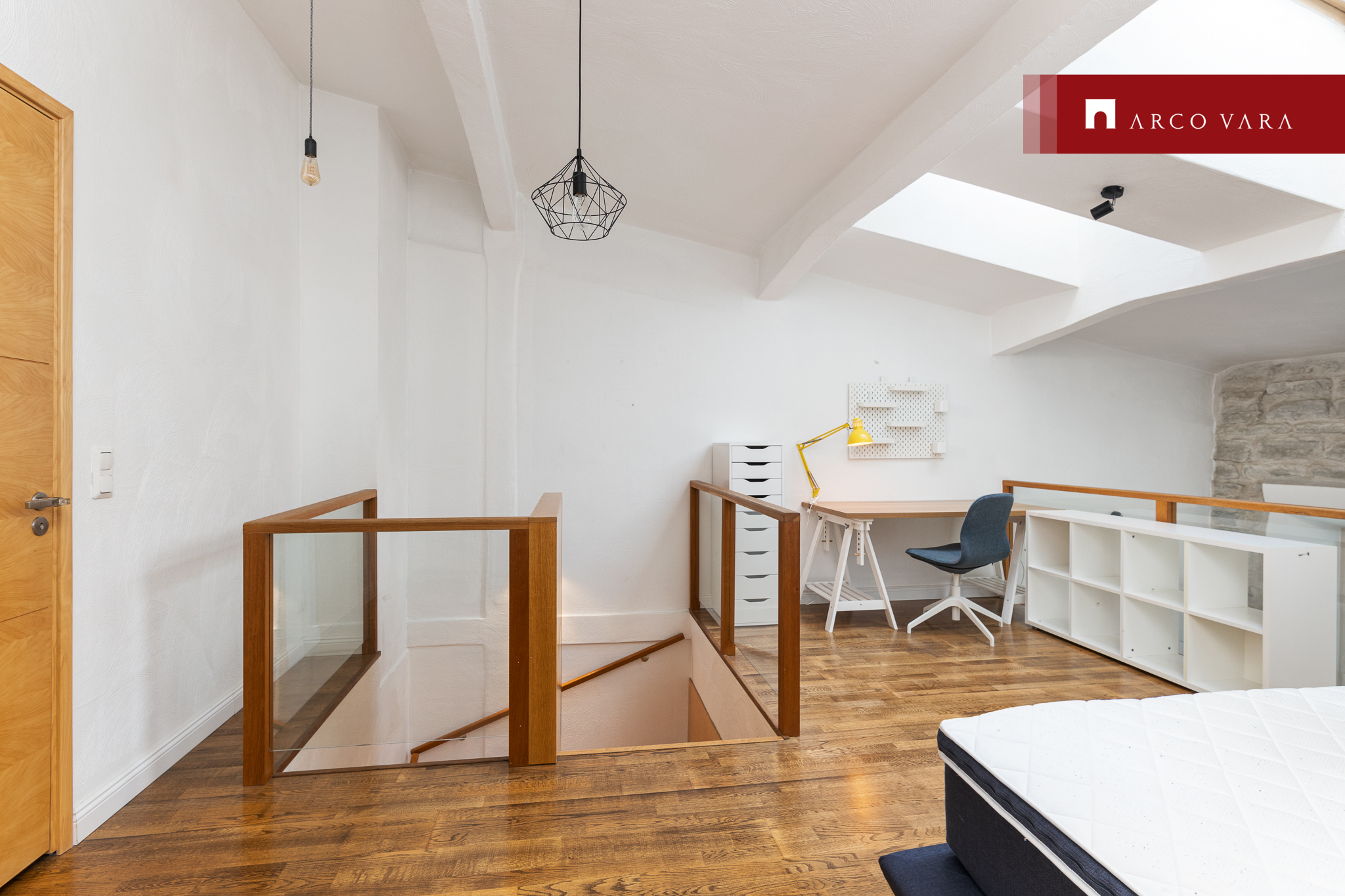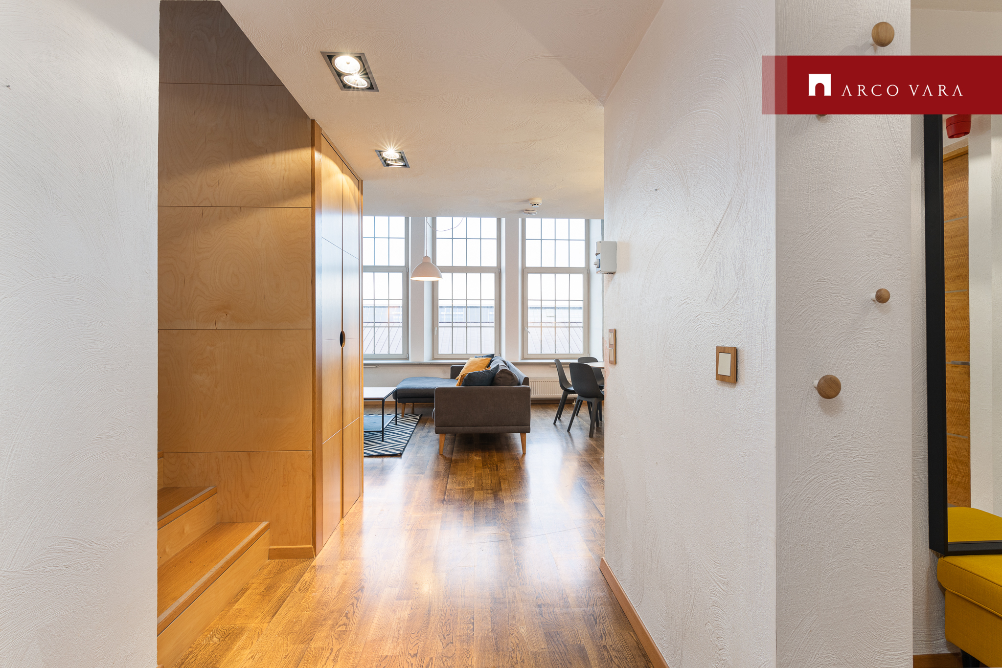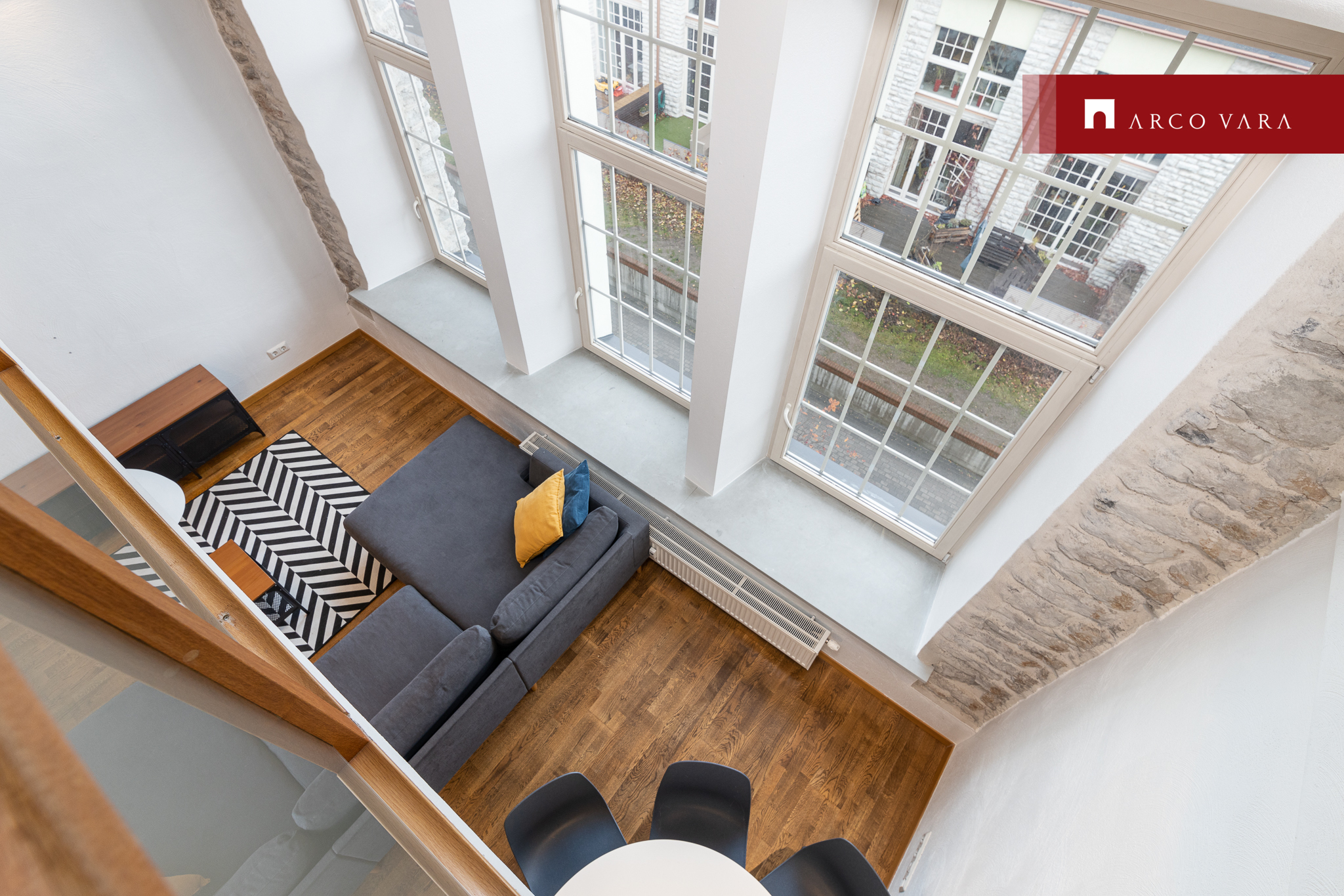 Korterisse sisenedes on esikus mahukas valgustusega garderoob, kus on ruumikad sahtlid. Esikus järi, seintel nagid ning suur peegel. Liikudes edasi avarasse avatud köögiga elutuppa, on köögist võimalik leida palju köögipinda ja hoiustamiseks suured kapid ja sahtlid. Köögitehnika hulka kuulub külmkapp koos sügavkülmikuga, nõudepesumasin, induktsioonpliit ning elektriahi. Avatud köögiga elutoas, esikus ja magamistoas on täispuidust parkett. Kõrged laed (kuni ca 5m), kõrged aknad (peeagu 3m) ja ülilaiad aknalauad lisavad elamisele hubasust ning omapära. Korteri teisele korrusele viiva trepi all on mahukas ja kinnine panipaik, kuhu on hea mahutada kõik, mis silma eest ära peab olema, aga samas kiiresti kätte vaja saada. Alumisel korrusel on suur WC ja teisel korrusel vannituba, kus on vann koos dušiga. Lisaks vannitoas olemas pesumasin-kuivati, valamukapp, riiulid ning nagid seintel. Hommikuteks, kui ei pea vara ärkama, on päikesevalguse tõkestamiseks magamistoas katuseakendel pimendavad rulood. Teisel korrusel vannitoa kõrval on ka mahukas sahtlikapi ja sisseehitatud mööblisüsteemiga walk-in garderoob. Samal korrusel asub ka mõnus kontorinurk, ideaalne kodust töötamiseks.