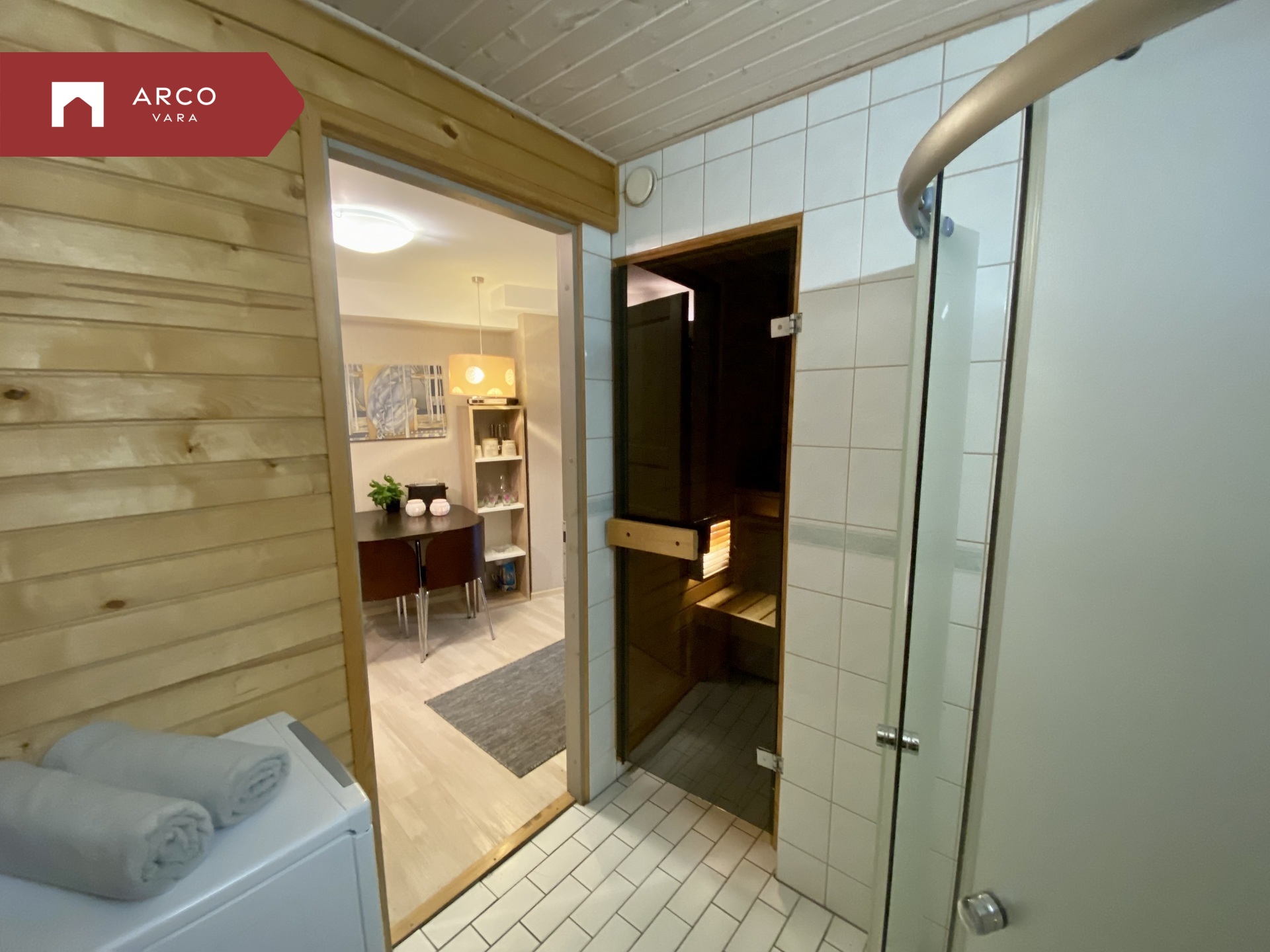 - Entrance from the courtyard through the passage: kitchen, living room, bedroom and bathroom with sauna