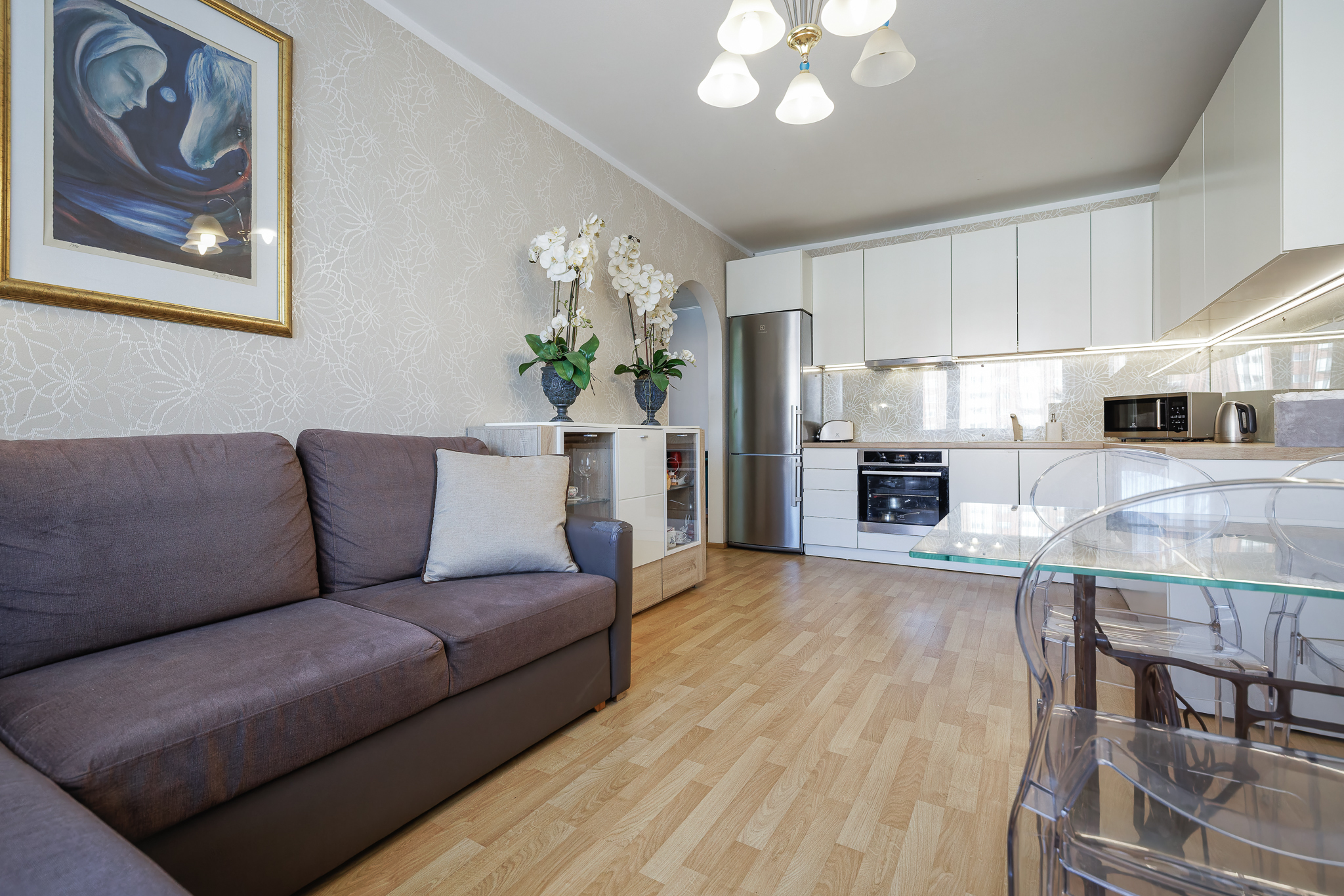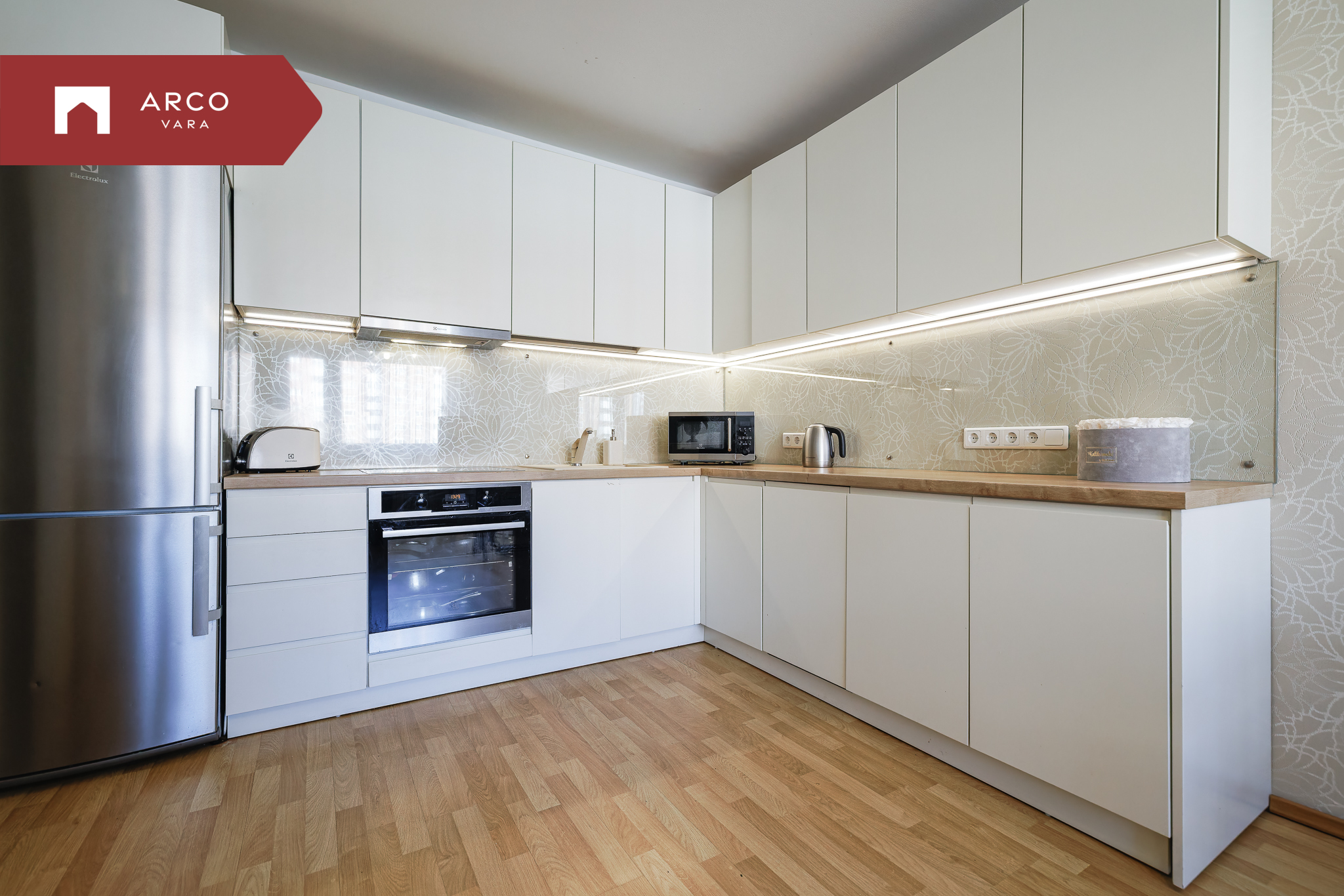 Korterisse jääb kogu piltidel nähtav ning köögimööbel koos tehnikaga.