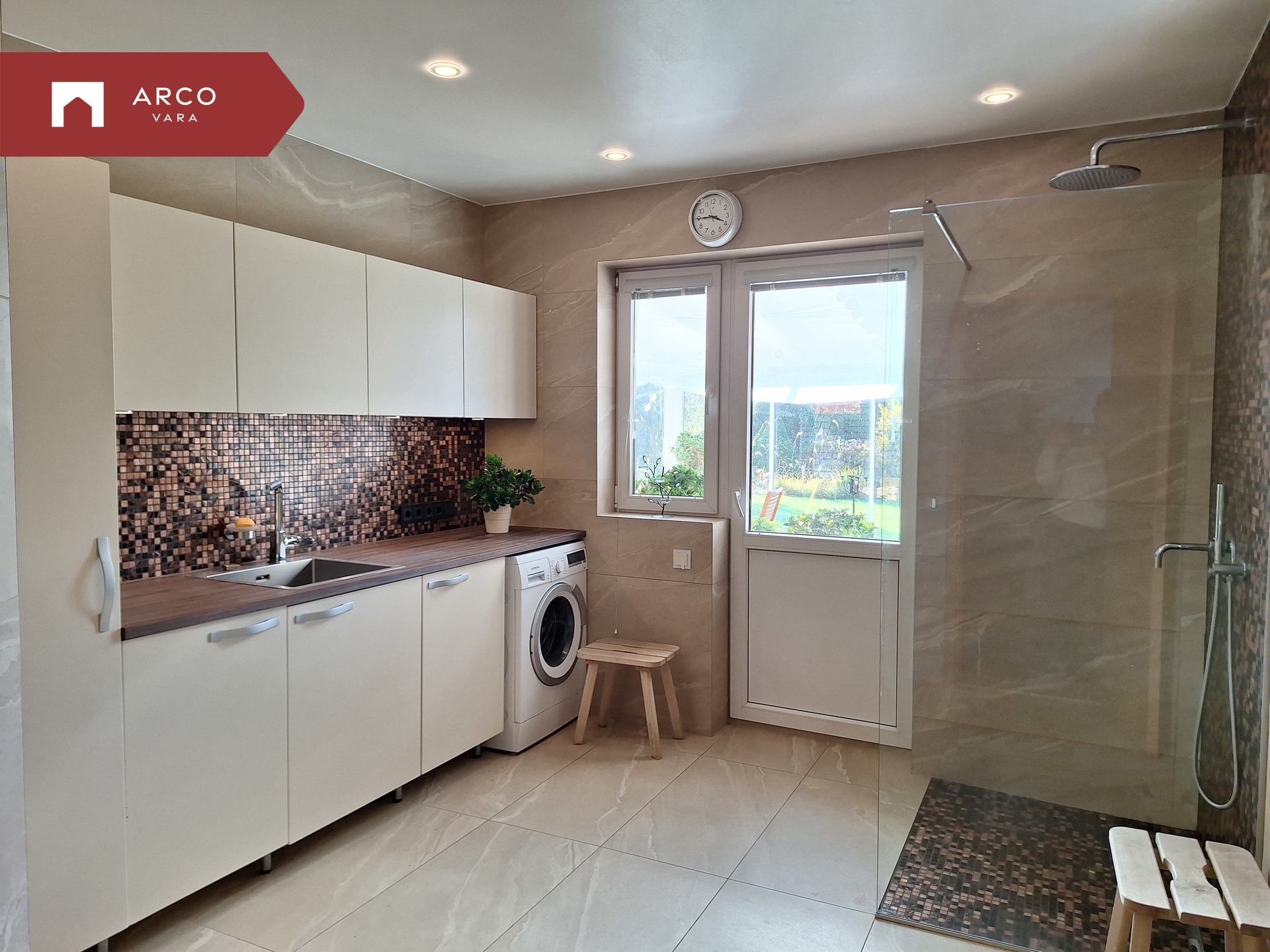 The property is connected to a central water system shared by the local community well. Two water meters separate domestic and outdoor water use. Rainwater is directed into the village drainage system, keeping the yard dry all year round.