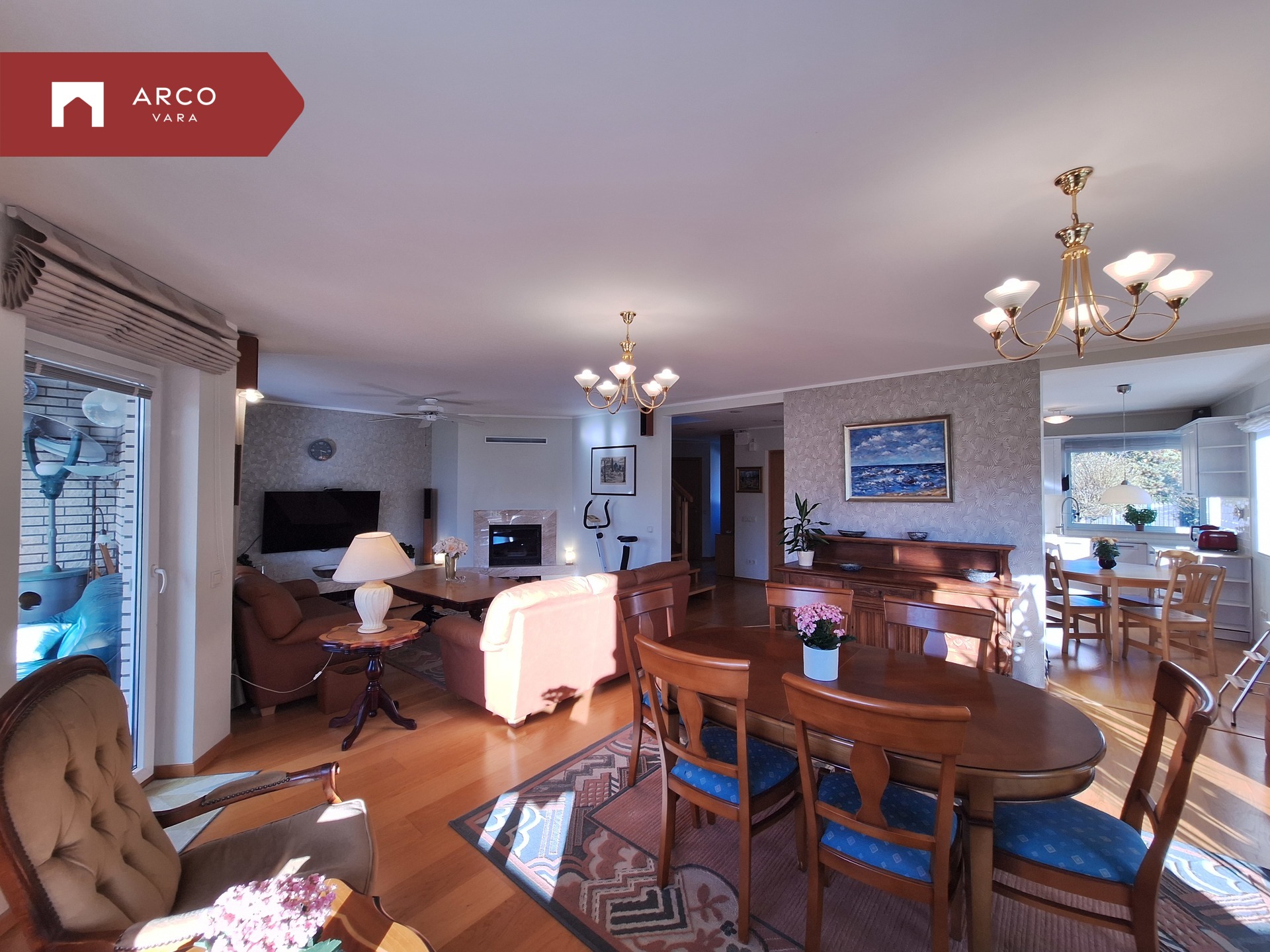 Semi-open kitchen connected to the 38.5 m² living room with fireplace