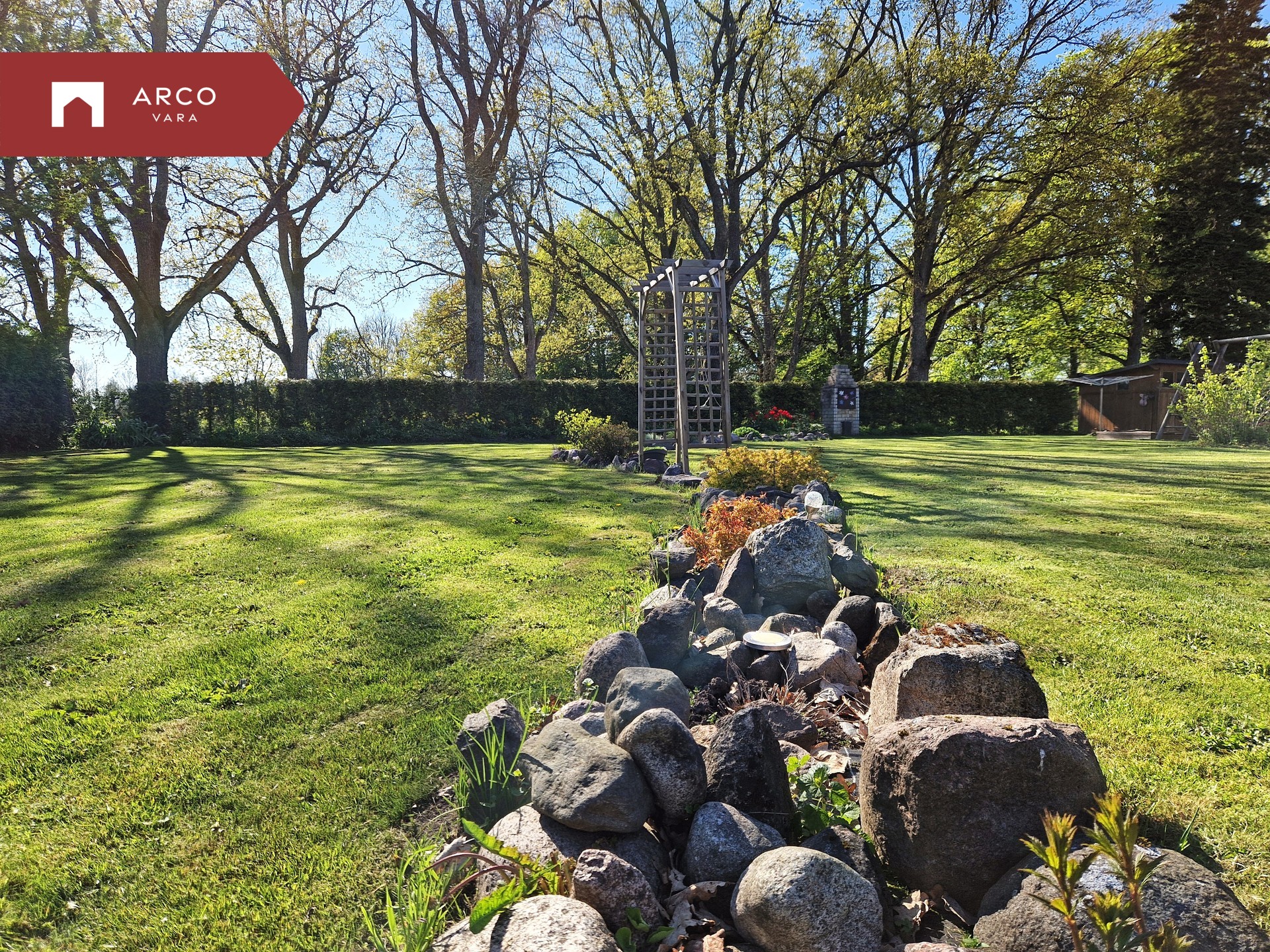 Aed on suur ja hooldatud, kus kasvavad mitmed viljapuud (õunapuud, kirsid, ploomid jm), olemas on ka kasvuhooned aiandushuvilistele.