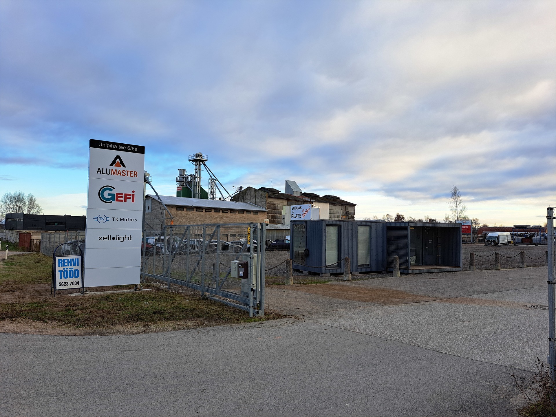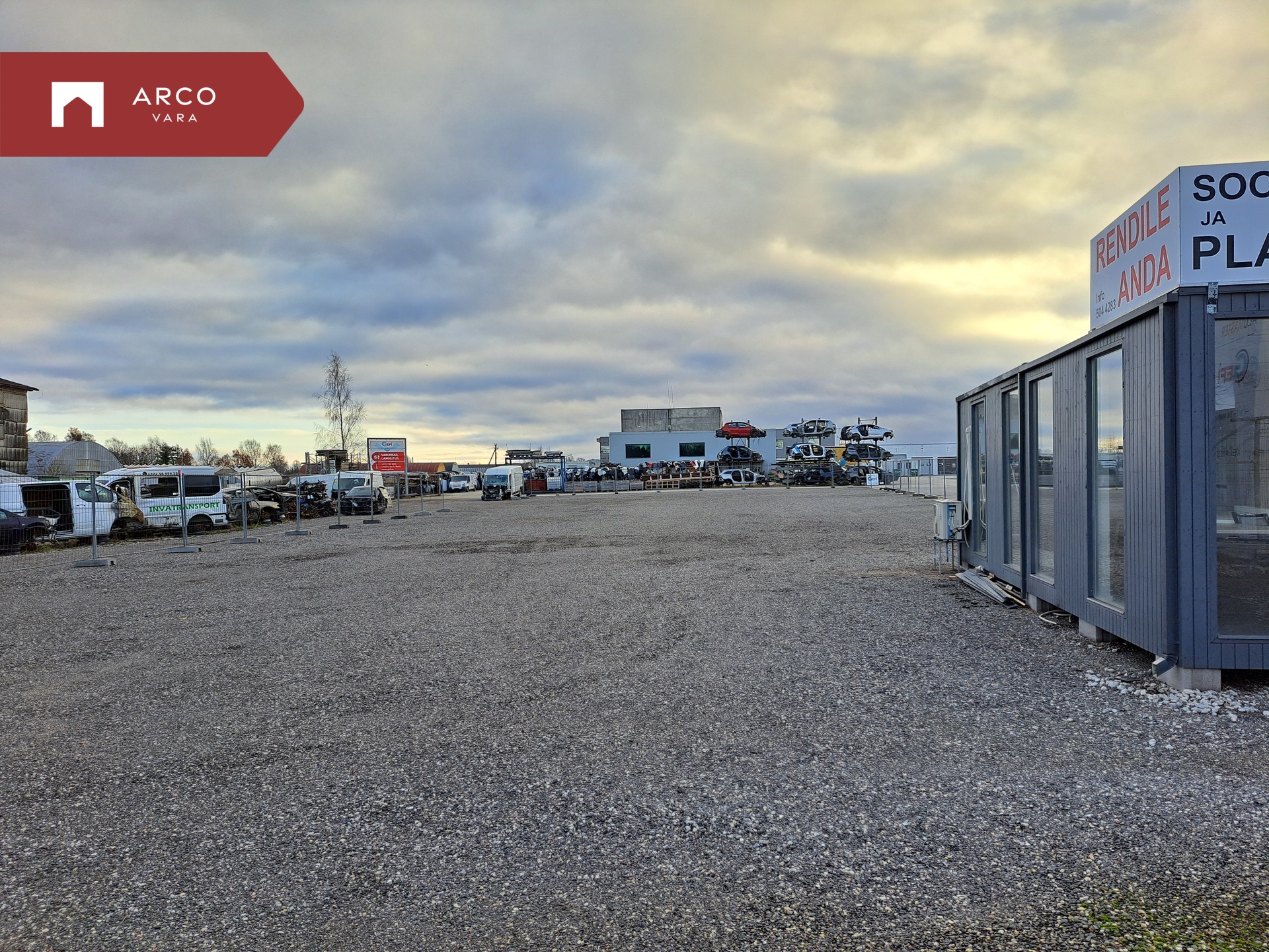 Üürile anda ca 2000 m² suurune aiaga piiratud plats, millest 1/3 on asfaldiga kaetud ja 2/3 korraliku freesasfaldiga kattega. Juurdepääs on väga hea ning territoorium on öösiti suletud. Platsil on elektriühendusega soojak, mida saab kasutada vastavalt vajadusena kas kontorina või klientide vastu võtmiseks. Ala sobib mitmesugusteks eesmärkideks nagu ladustamiseks, sõidukite/konteinerite paigutamiseks jpm. Üürihinnale lisandub käibemaks.
