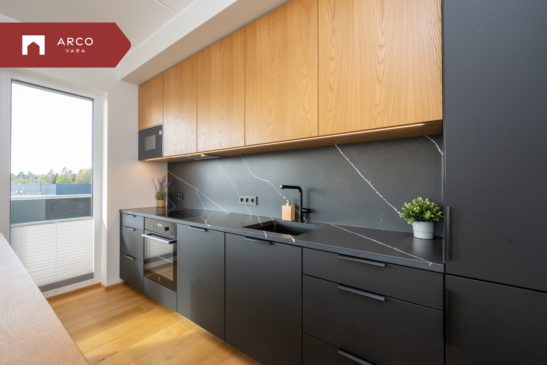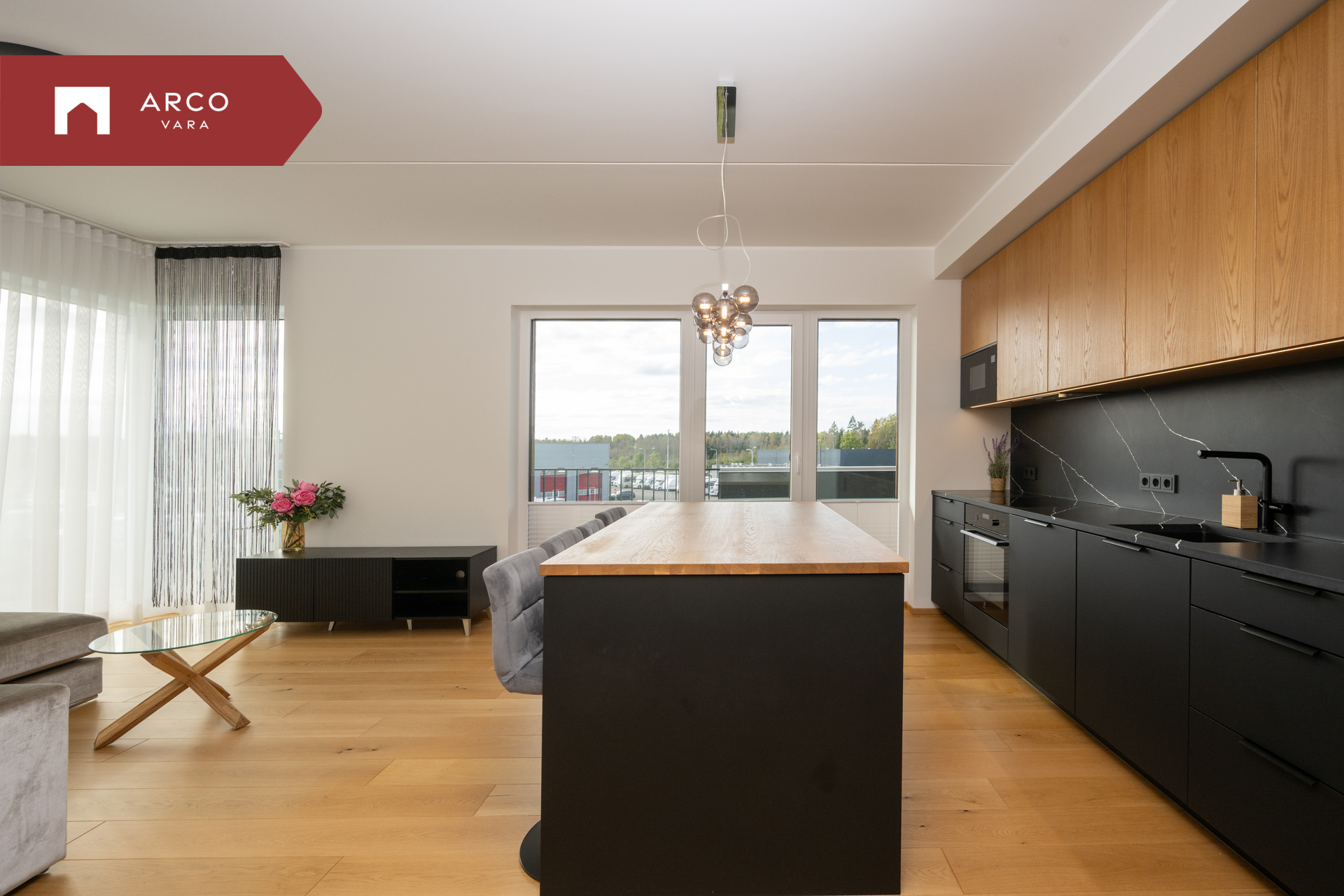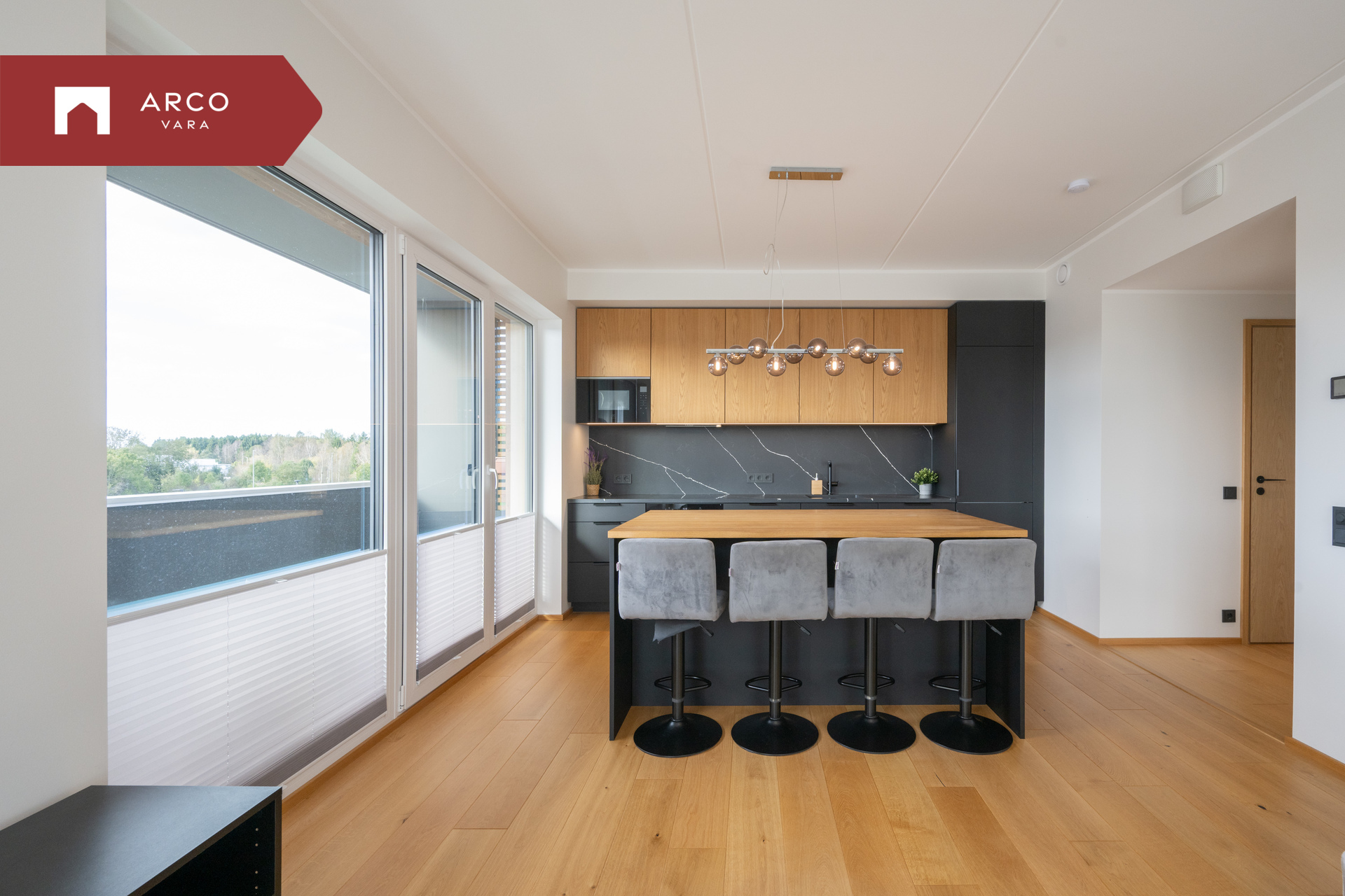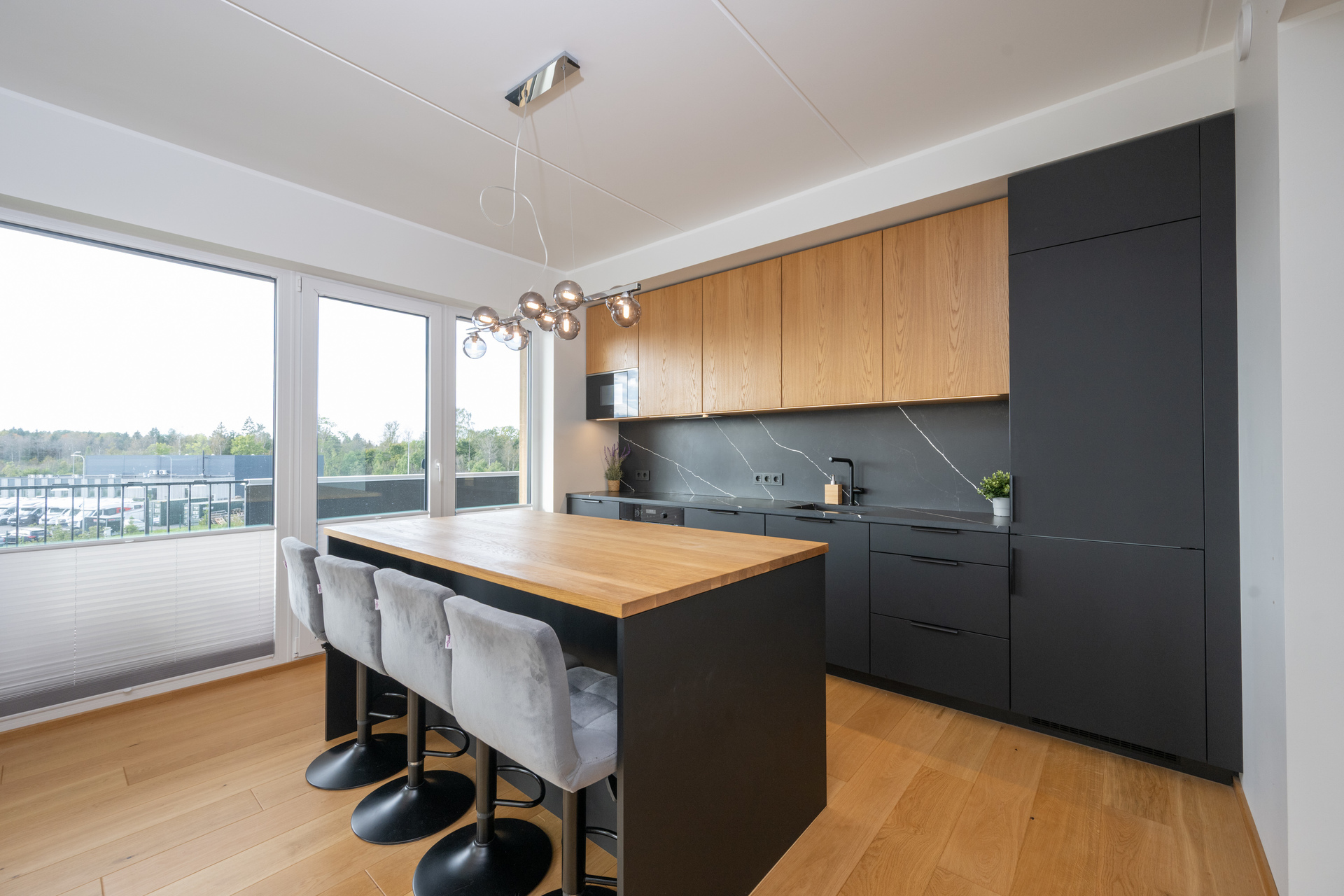 Hinnas sisaldub kogu sisseehitatud mööbel esikus, vannitoas, panipaigas ja köögis koos kvaliteetse integreeritud köögitehnikaga. Köögi töötasapind on vastupidav kvartskivi ja köögisaare tasapind naturaalne tamm. Saarel asuvad mugavalt integreeritud pistikupesad, mis lisavad igapäevaelule mugavust.