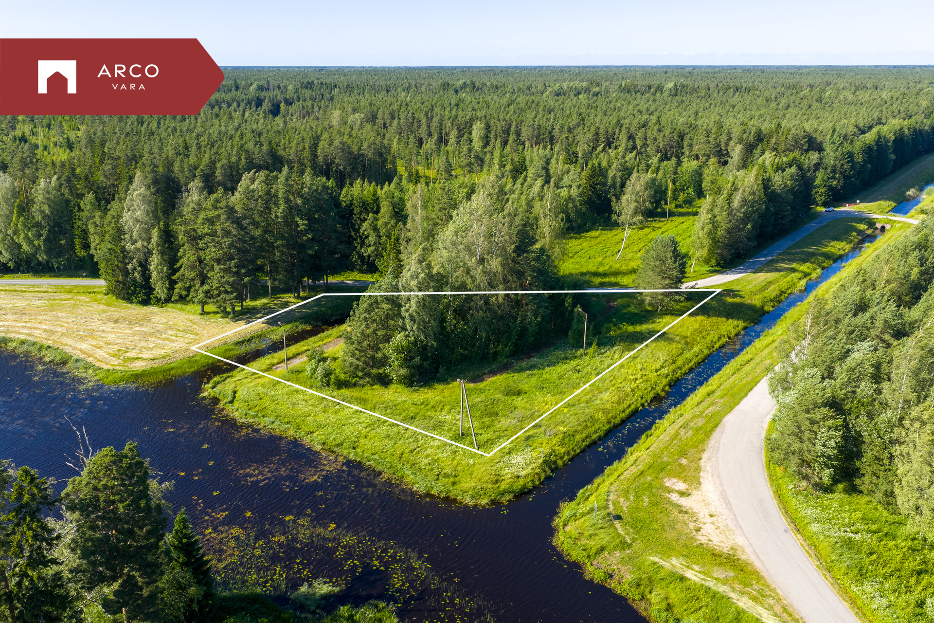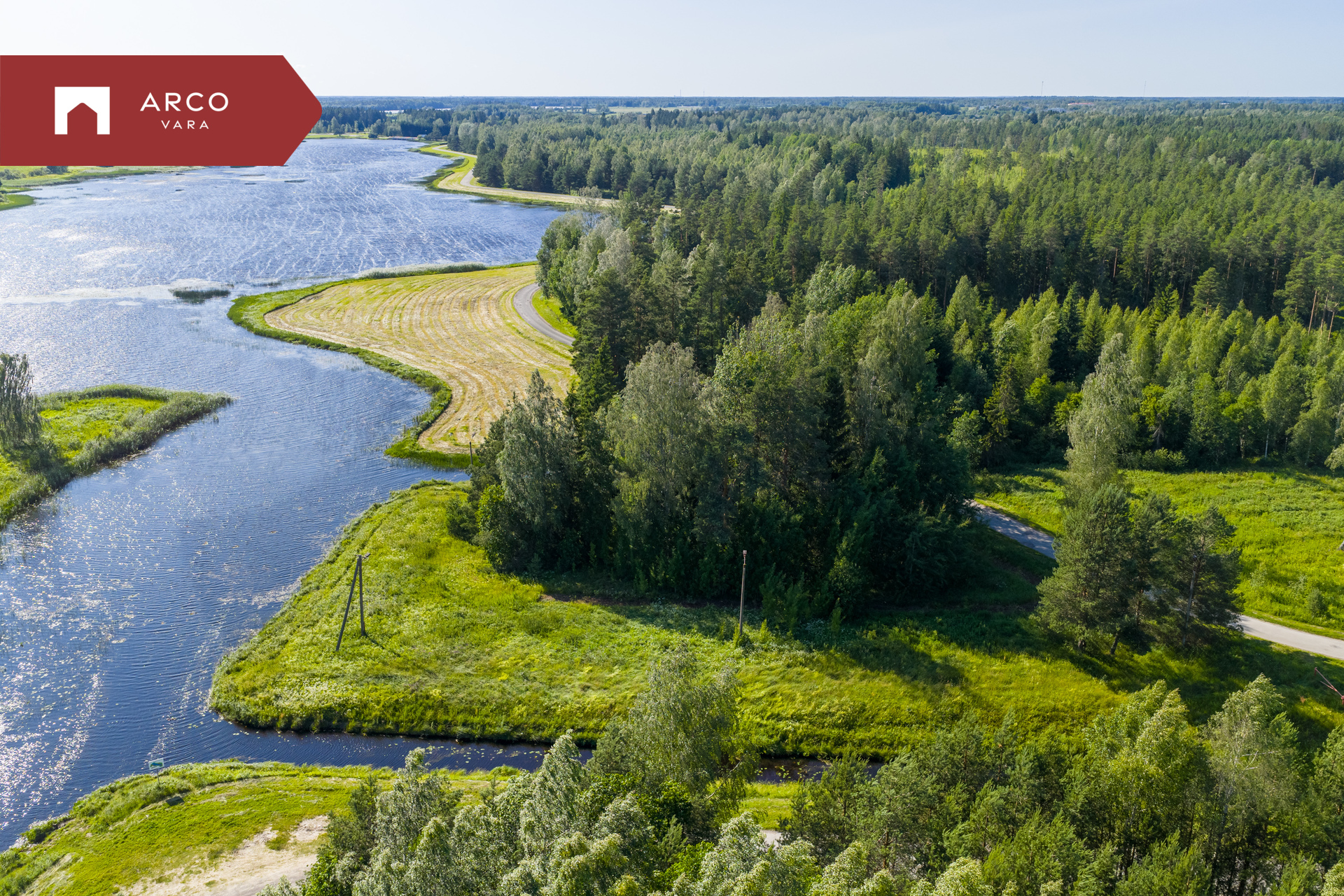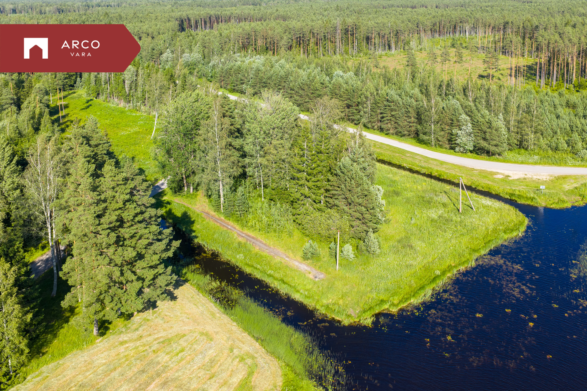 Maalilisel maastikul asuv kinnistu piirneb kolmest küljest veega.