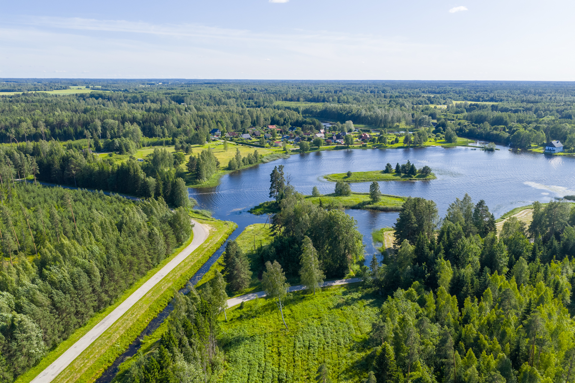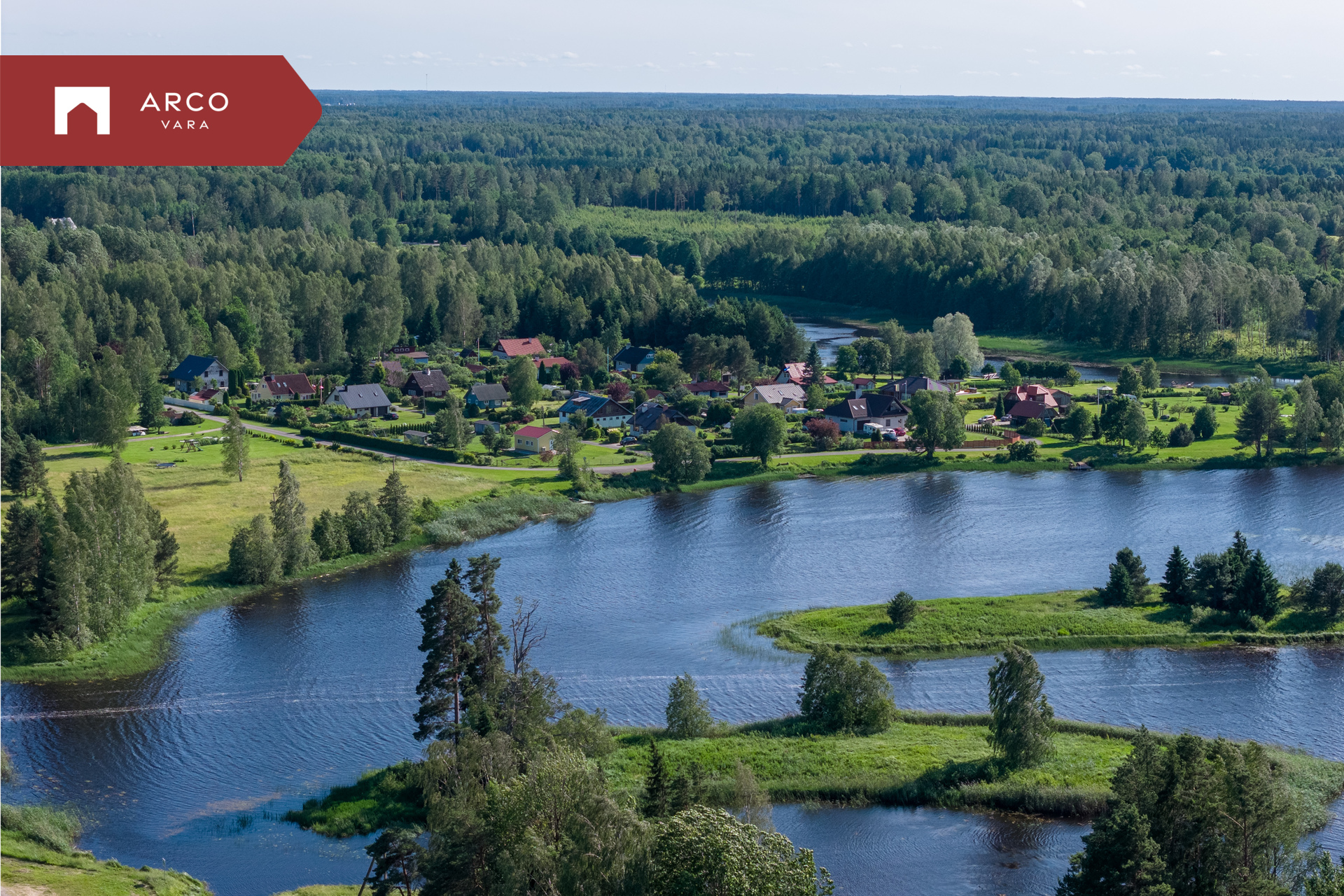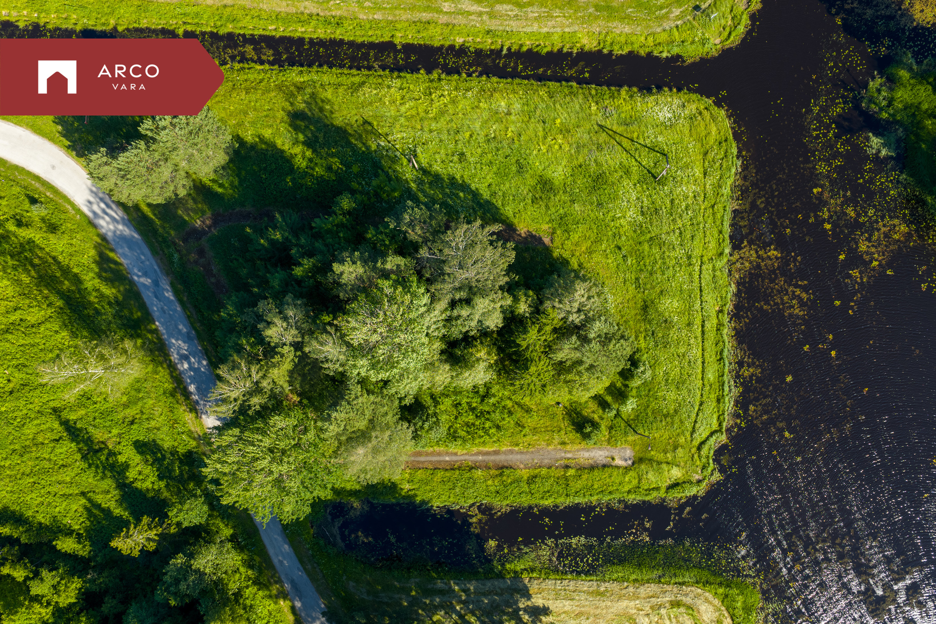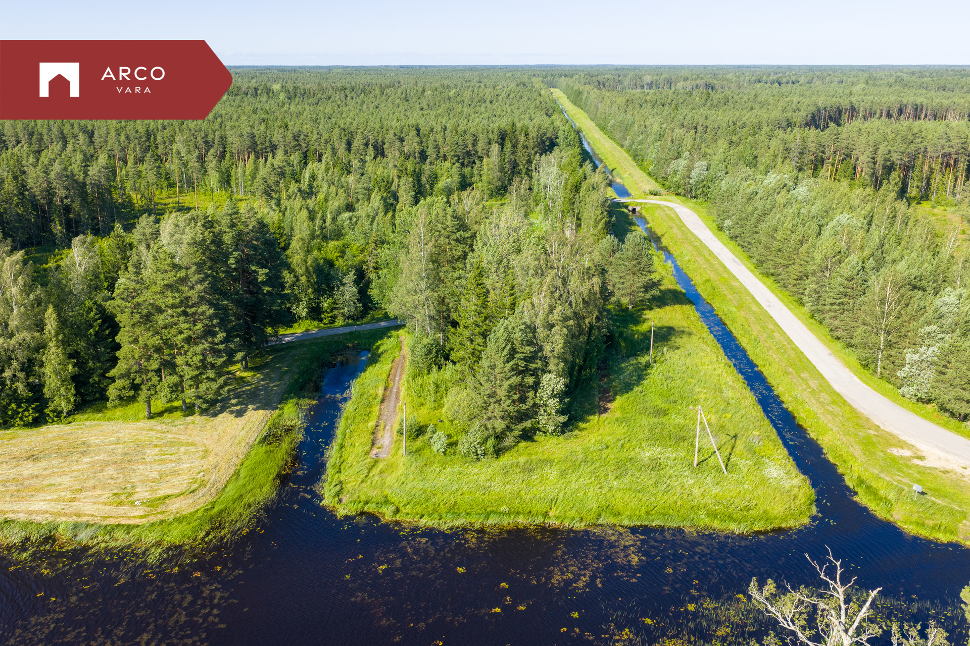Maalilisel maastikul asuv kinnistu piirneb kolmest küljest veega.