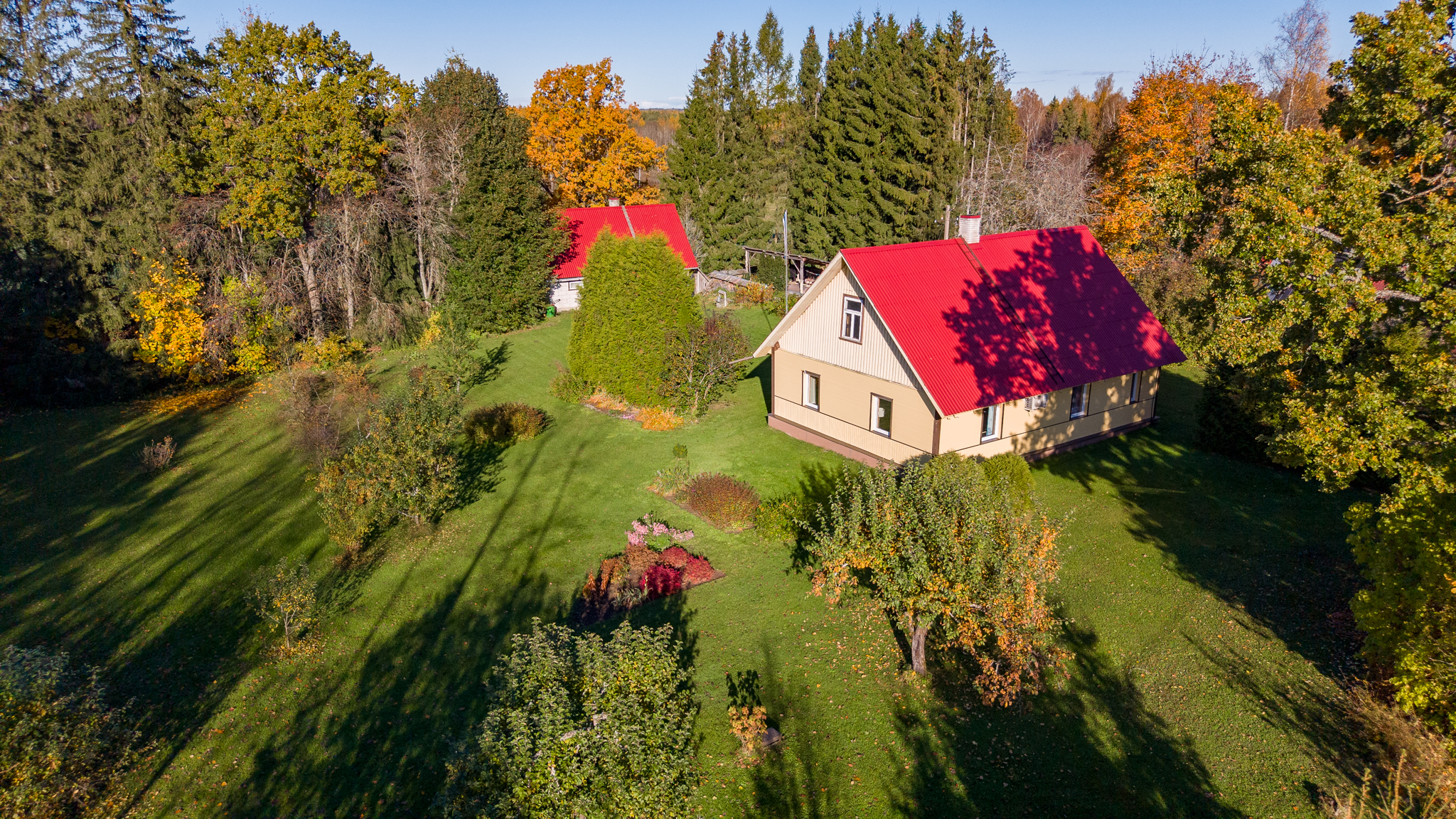 Lisaks elumajale on kinnistul veel maakelder, saun, kuur, garaaž kahele autole, varikatusega grillimisnurk ning kasvuhoone.