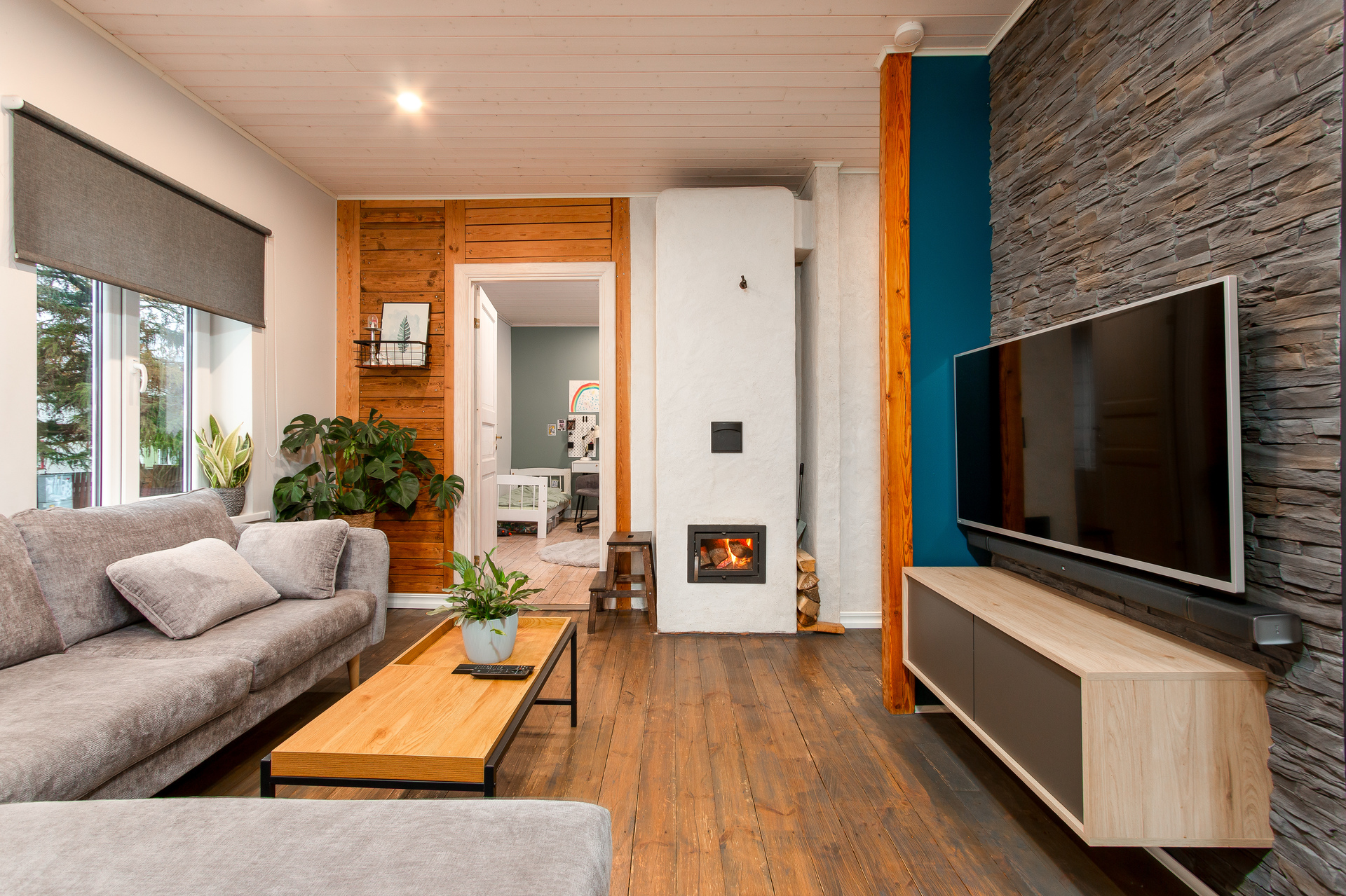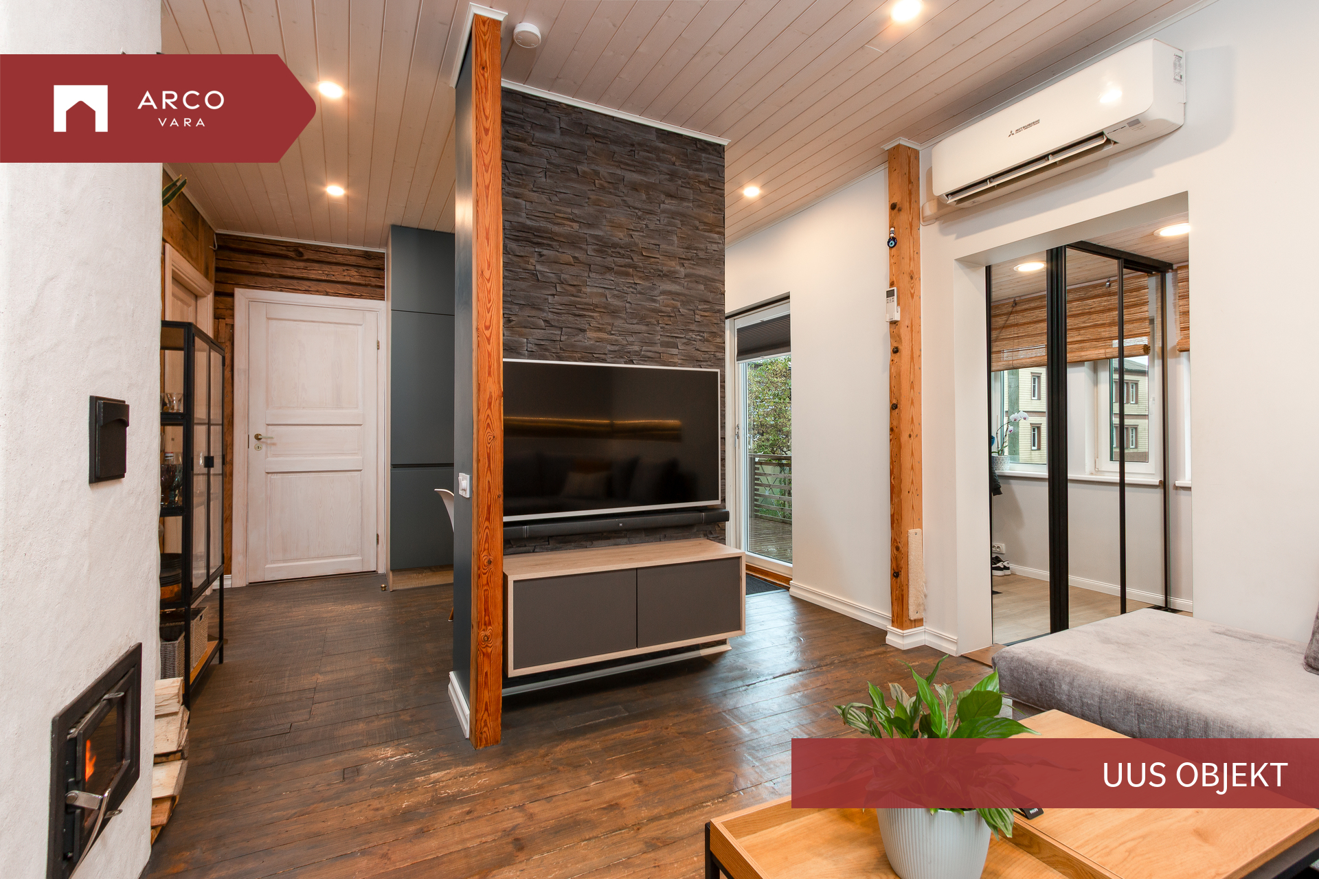 Esimesel korrusel paiknevad eluruumid on läbinud renoveerimise, vaid pesuruumi osas võiks kaasajastamise ette võtta või isegi sealjuures ehk ruumiplaneeringut muuta ning vesiklosett-duširuumi avaramaks kujundada, ruumi selleks jagub. Tuppa pääseb nii tänavalt, kui ka sisehoovipoolsest uksest, lisaks avaneb köögist terrassiuks päikselisele terrassile. Köök-elutuba ning kaks magamistuba loovad mõnusa terviku, kuid samas loovad igale pereliikmele piisavalt privaatsust, siin-seal leidub armsaid detaile, mis sellesse koduse armuma kutsuvad. Kodusooja annab ehe ahi ja vajadusel toetab õhk-õhk-soojuspump, pesuruumis mugavusküttena elektriline põrandaküte.