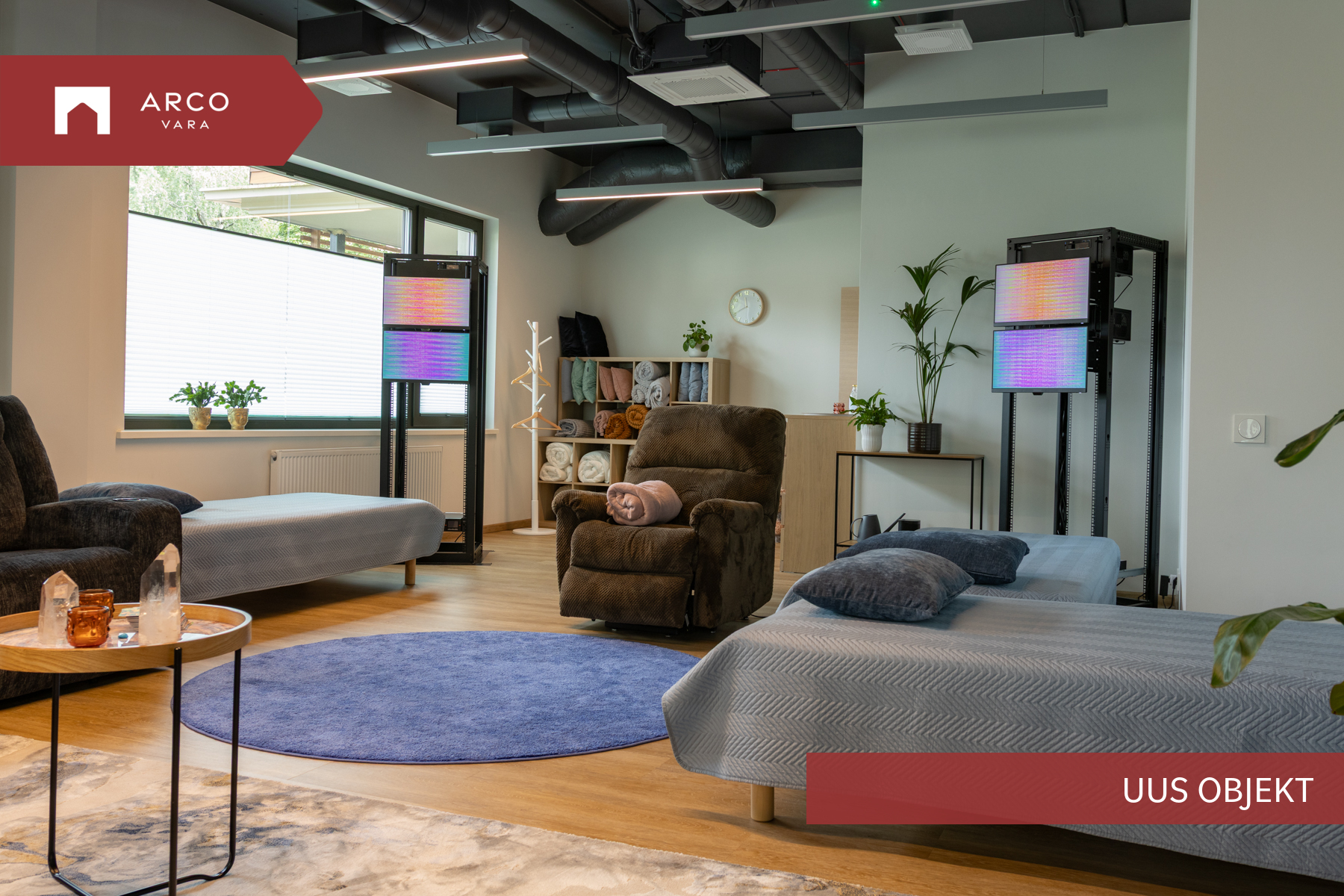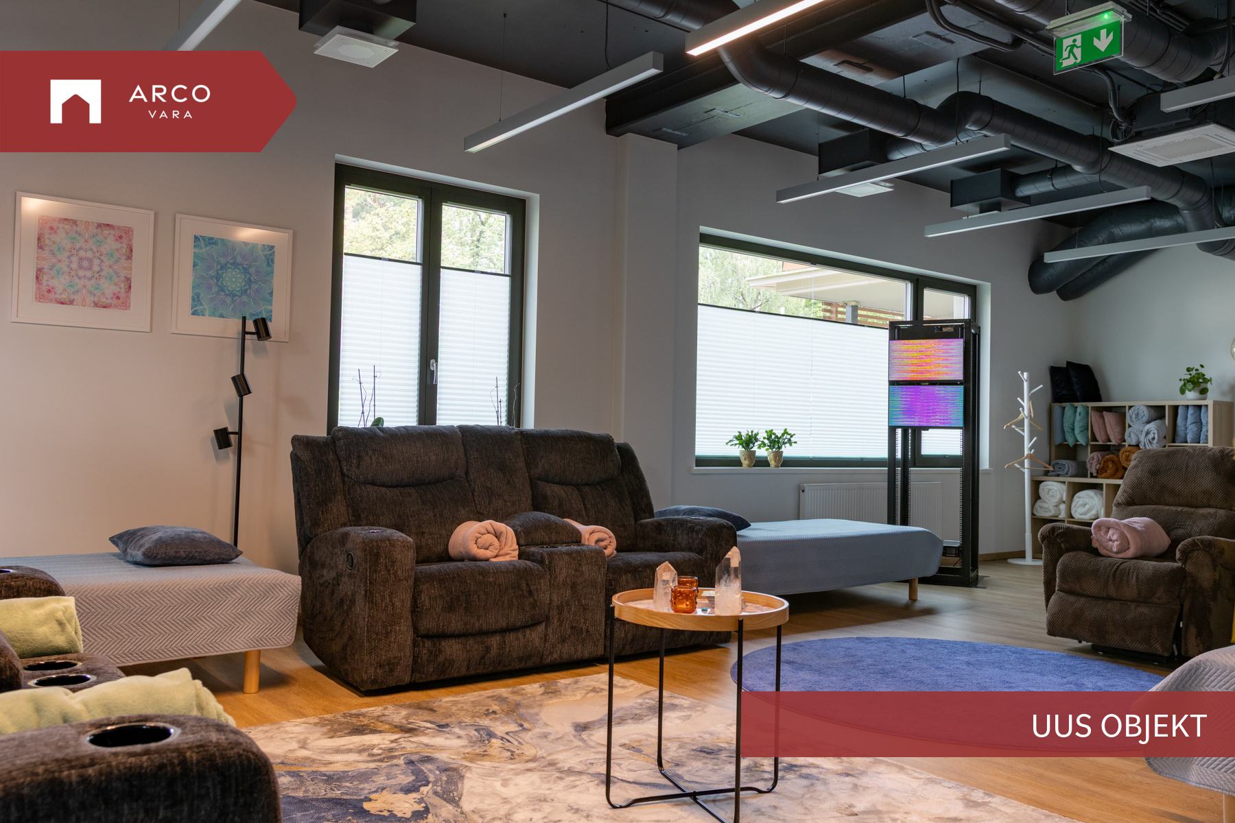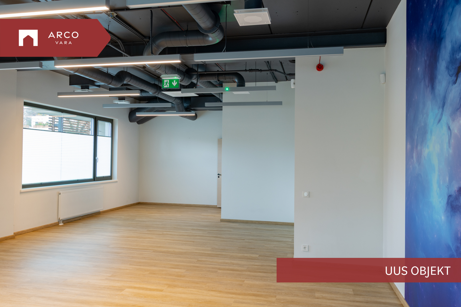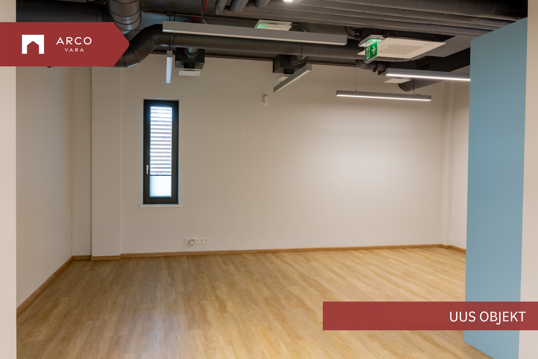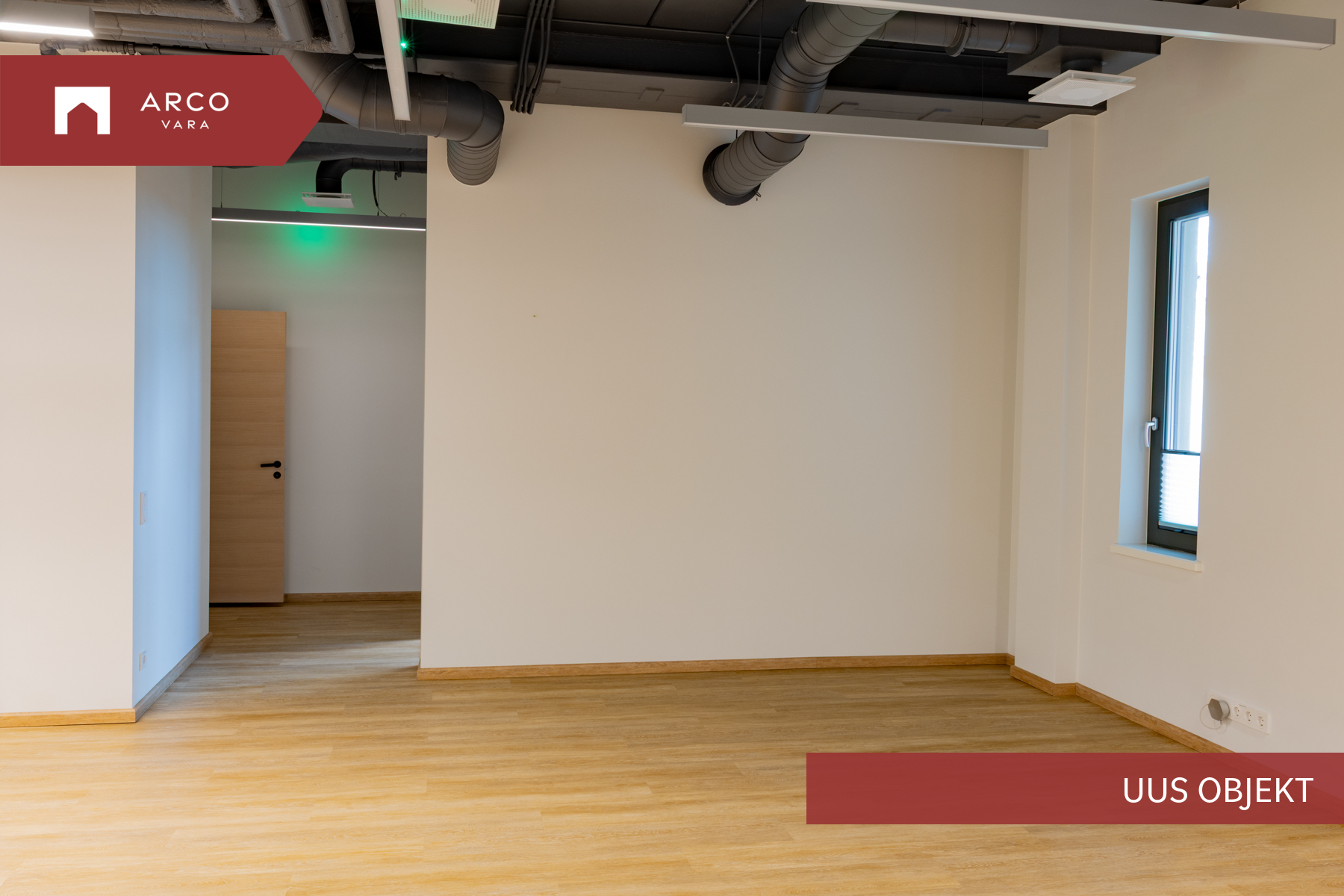 Ruumisisene sundventilatsioon Verso R 1000, 3 laeseadmega Mitsubishi VRF jahutussüsteem, avatavad puitalumiiniumaknad, dimmerdavad LED valgustid opaalklaasiga.