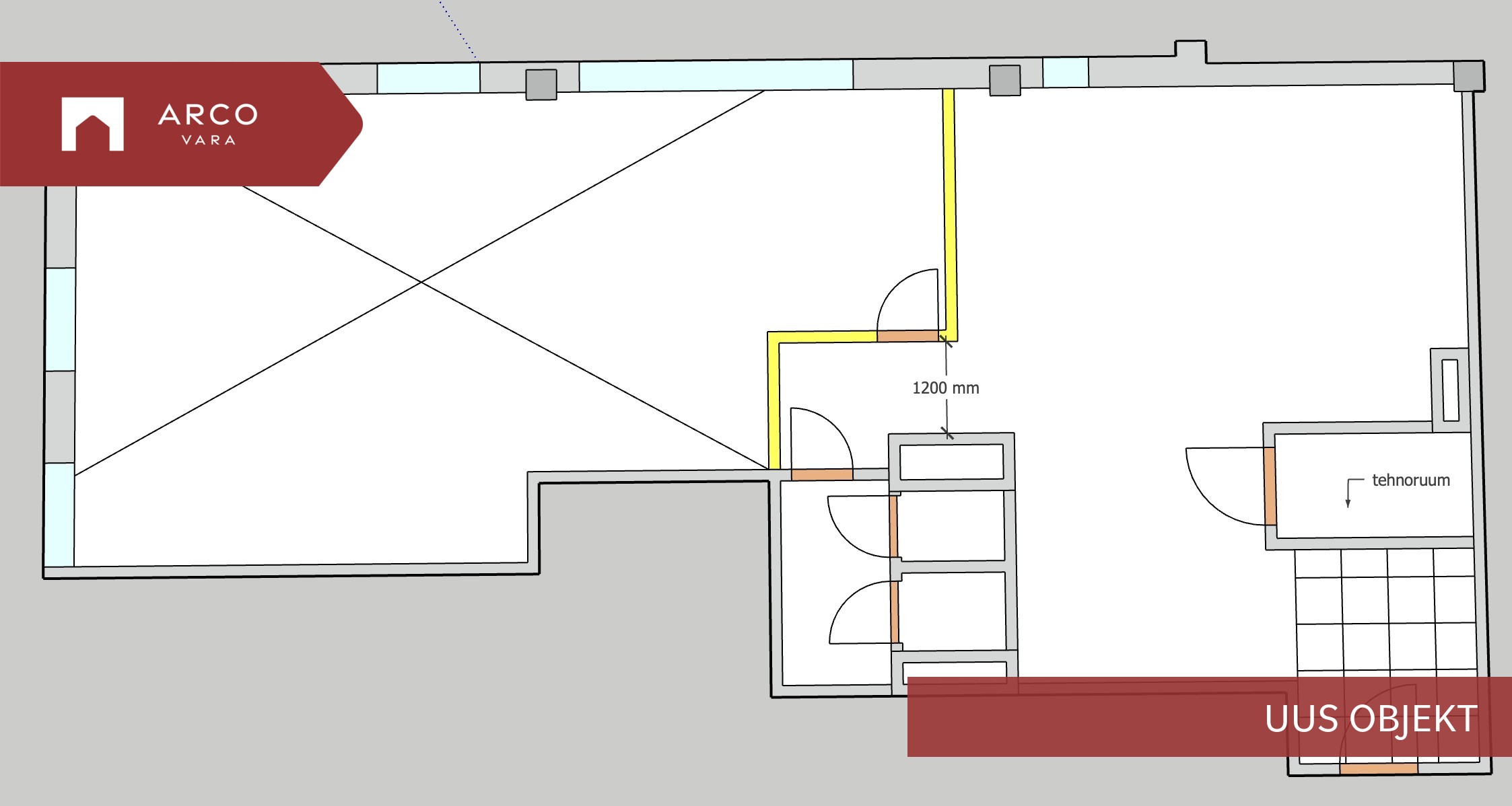 Praegune ruumilahendus on nutikalt jaotatud kaheks kergvaheseinaga, kuid ventilatsiooni- ja jahutussüsteem on kavandatud nii, et soovi korral saab ruumi lihtsalt ümber jagada ja lisada täiendavaid vaheseinu. See annab vabaduse luua just sinu vajadustele vastav töö-, elu- või stuudiokeskkond.