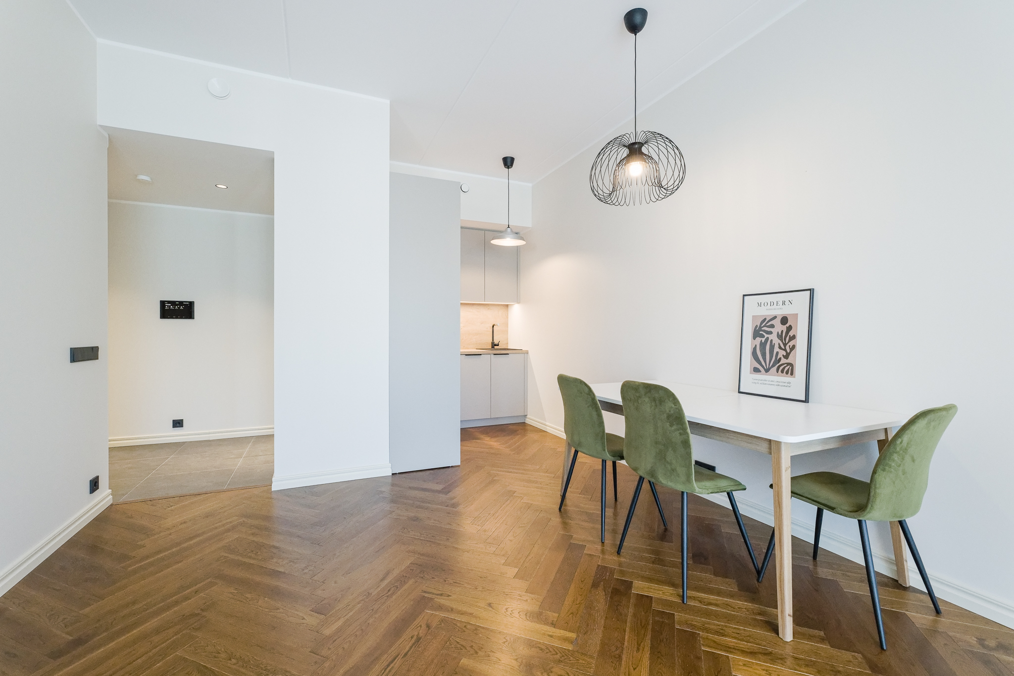 Korteri koosseisu kuulub avatud köögiga elutuba, magamistuba, esik ning duširuum.