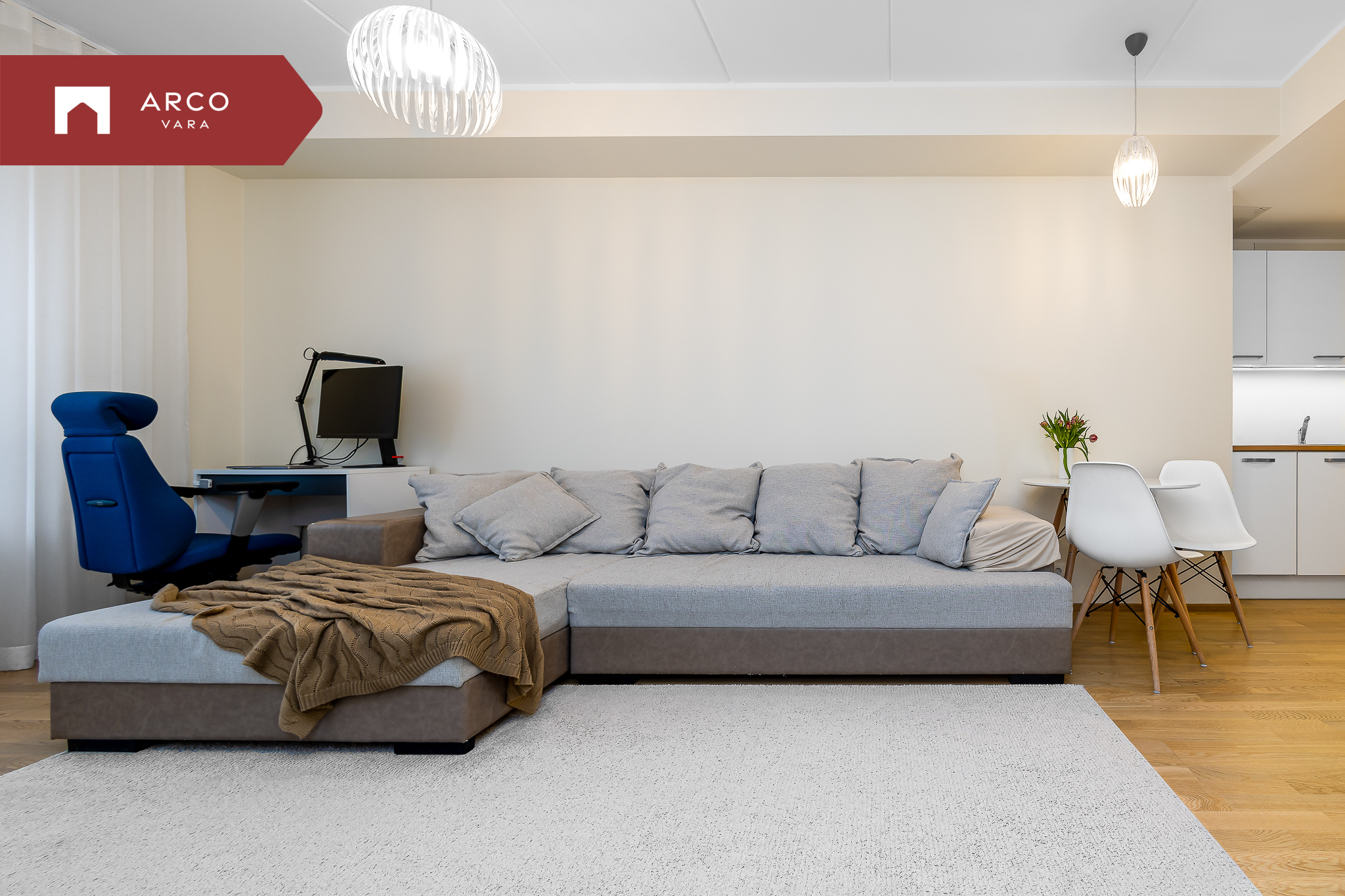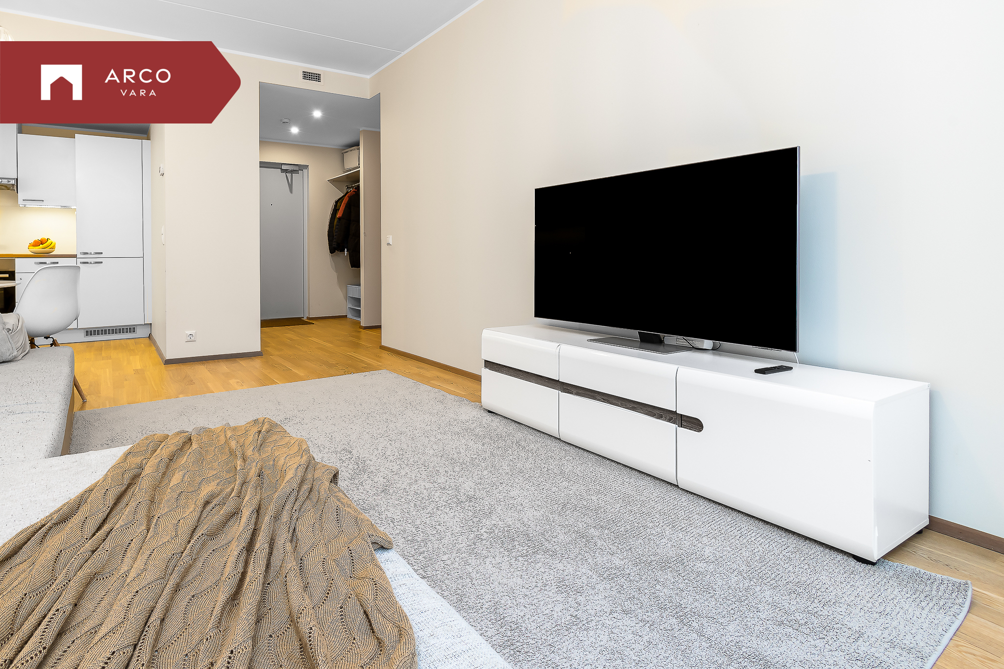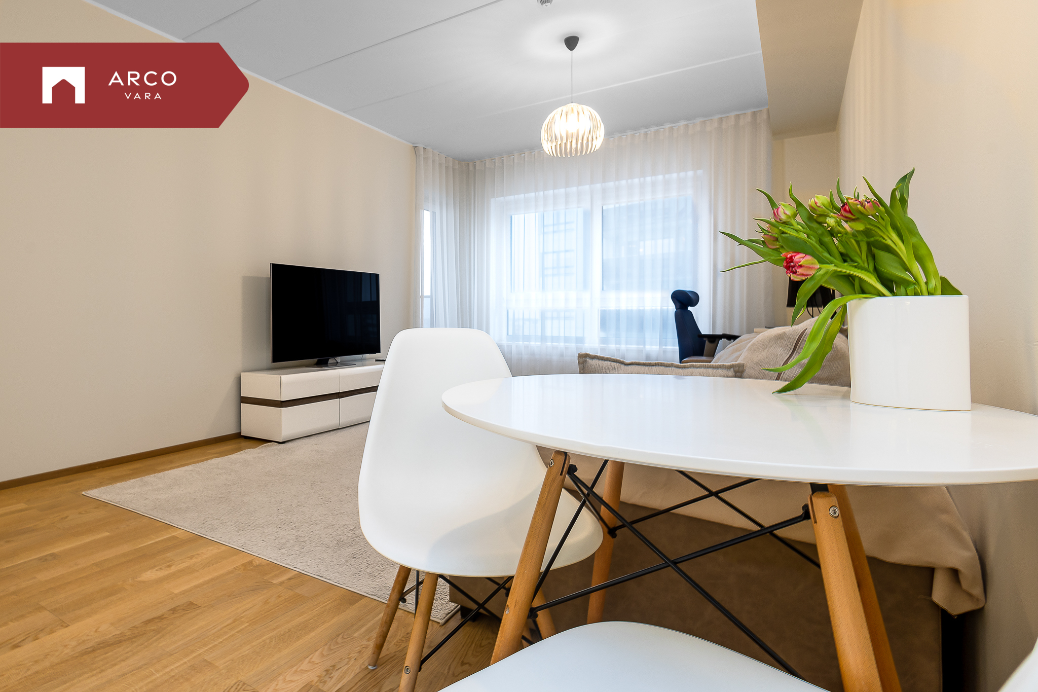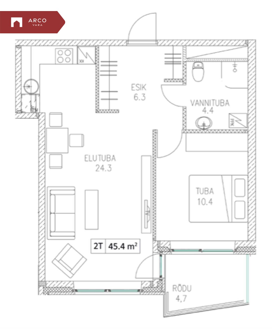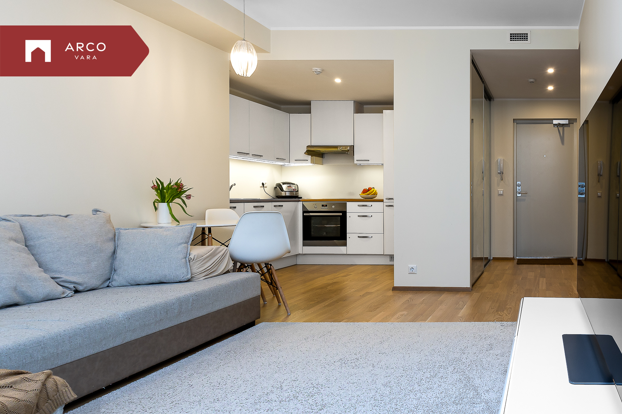 Sisenedes sellesse avarasse ja kaasaegsesse korterisse, tervitab teid esik koos mahuka sisseehitatud garderoobkapiga. Korteris on kõik vajalik mugavaks eluks: üks magamistuba, avar elutuba ühendatud köögiga, suur lodža (4,7 m²) ning vannituba koos tualetiga.